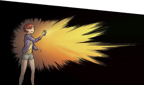 Elle se remémorait le jour où son père était venu l’encourager alors qu’elle faisait des recherches poussées, sans en comprendre le sens. Ses camarades n’en faisaient pas et allaient au plus simple. Elle avait toujours besoin d’aller chercher le fin mot, pousser son investigation, rendre un devoir complet. Elle avait le sentiment de perdre du temps et se fatiguer pour quelque chose d’inutile aux yeux de tous. Son père la rassurait, lui disant que ceux qui allaient vers le plus simple n’étaient pas nécessairement ceux qui réussirent le mieux. Par ses démarches, elle prouvait qu’elle était quelqu’un de courageux, qui ne se laissait pas abattre par l’adversité. Se relevant d’un bond, il n’était pas question pour elle d’abandonner. Elle devait juste trouver une solution pour se repérer dans cette pièce obscure. Posant sa main sur la paroi la plus proche, elle la traversait avant de tomber dans le vide.