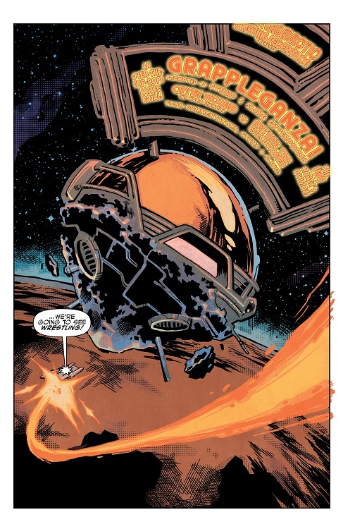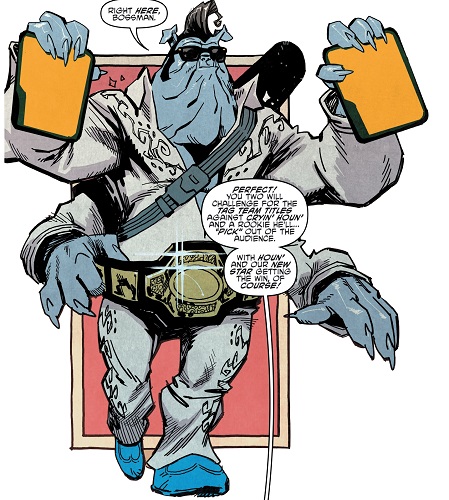 Le prochain témoin que les tortues allaient devoir trouver était très particulier. Tant par son anatomie, que par sa profession. Les neutrinos les emmenaient sur un astéroïde consacré au catch !
