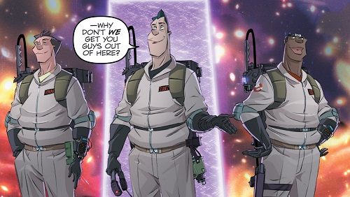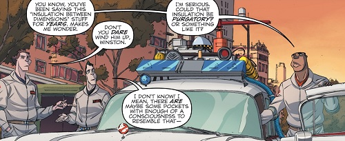 - Ray parle du « the Scandinavian Warlock Case », qui s’est conclu dans Ghostbusters International #11. Il parle aussi de la fusion de leur univers et d’un autre, qui se déroule dans Ghostbusters 101 #6.