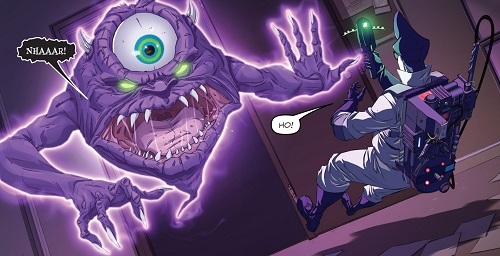 Le premier fantôme que combattent les Ghostbusters est le Bug-Eye Ghost (Panloeil le fantômeVF), qui apparut dans la série animée The real Ghosbusters et eut droit naturellement à sa figurine. Dans l’interview donnée dans la Deluxe edition, et que l’on retrouve dans la version française, Burnham explique qu’à l’origine, il aurait souhaité que ce soit un ectoplasme avec des marionnettes ventriloques à la place des mains. Le côté nostalgique l’a emporté sur le sinistre.