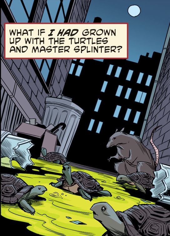 demandait à quoi aurait ressemblé sa vie si elle avait connu les tortues dès le début. Si elle avait été une tortue dès sa naissance, si elle avait été le leader, pour être la plus âgée de la fratrie. De qui aurait-elle été la plus proche ? De Michelangelo et de son grand cœur ? Ou de Donatello et de son intérêt pour les sciences et la technologie ? Ou de Casey Jones, avec qui elle aurait combattu le crime dans les rues ? Serait-elle tombée amoureuse de lui malgré tout ?