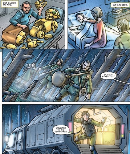 Un soir, le professeur contemplait les étoiles dans le ciel avec son fils Ely. Ce dernier lui demandait s’il comptait prendre part à la guerre de Krang. Le professeur ne savait quoi répondre et l’envoyait se coucher. Sa femme Marra venait lui rassurer, leur enfant n’avait que six ans. Ses amis, ses professeurs, les voisins, tous travaillaient pour Krang. L’enfant avait entendu des bruits de couloirs, certains vrais, d’autres totalement faux. Honeycutt était déçu que son fils puisse penser ça de lui, malgré ses six ans et sa faible expérience du monde. Marra commençait à monter une petite alliance de rebelles malgré les risques. Le sergent Granitor les surveillait sous les ordres de Krang, qui ne semblait pas avoir réellement confiance en eux. Même s’il était frileux à l’idée de faire courir un danger à sa famille, Honeycutt se rendit vite compte que c’était peut-être la meilleure chose à faire, tant pour les protéger, que pour rester dans le droit chemin et éventuellement trouver une solution pour arrêter le général. Il supprima les données informatiques de ses recherches et cacha SAL dans un sac qu’il emporterait avec sa femme et son fils. Ils quittèrent la ville pour retrouver la résistance neutrino. Ils retournèrent sur leur planète et se cachèrent alors dans un vieux bâtiment de recherche désaffecté, une sorte de bunker auquel une partie habitable avait été aménagée.