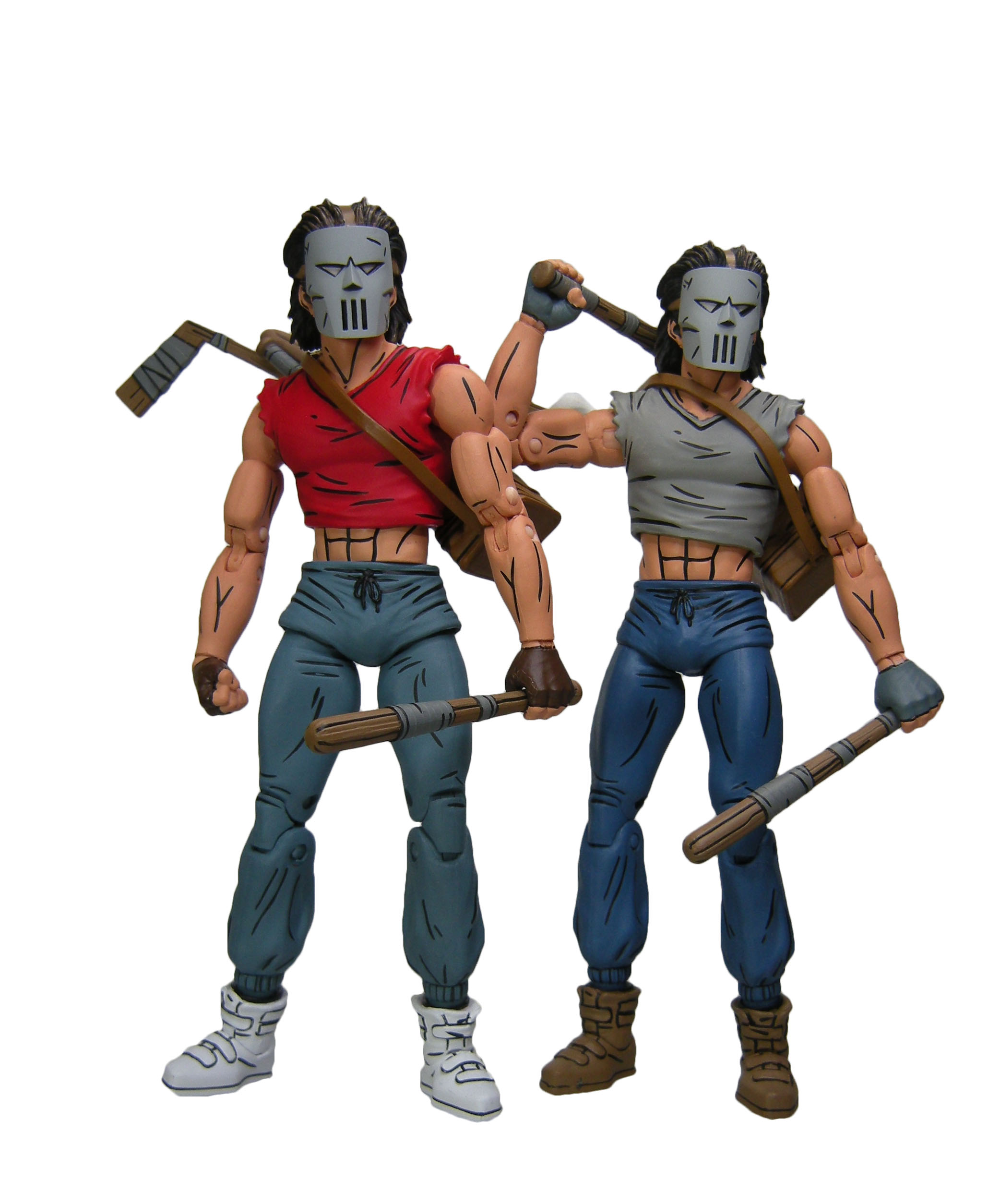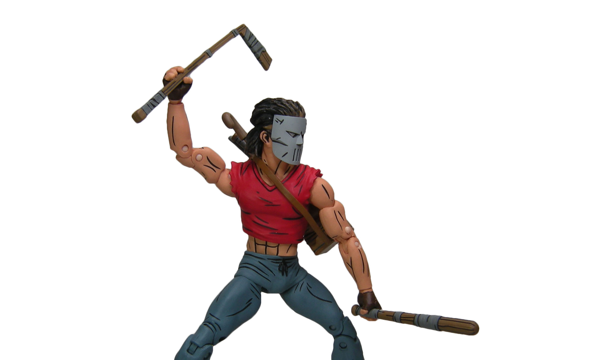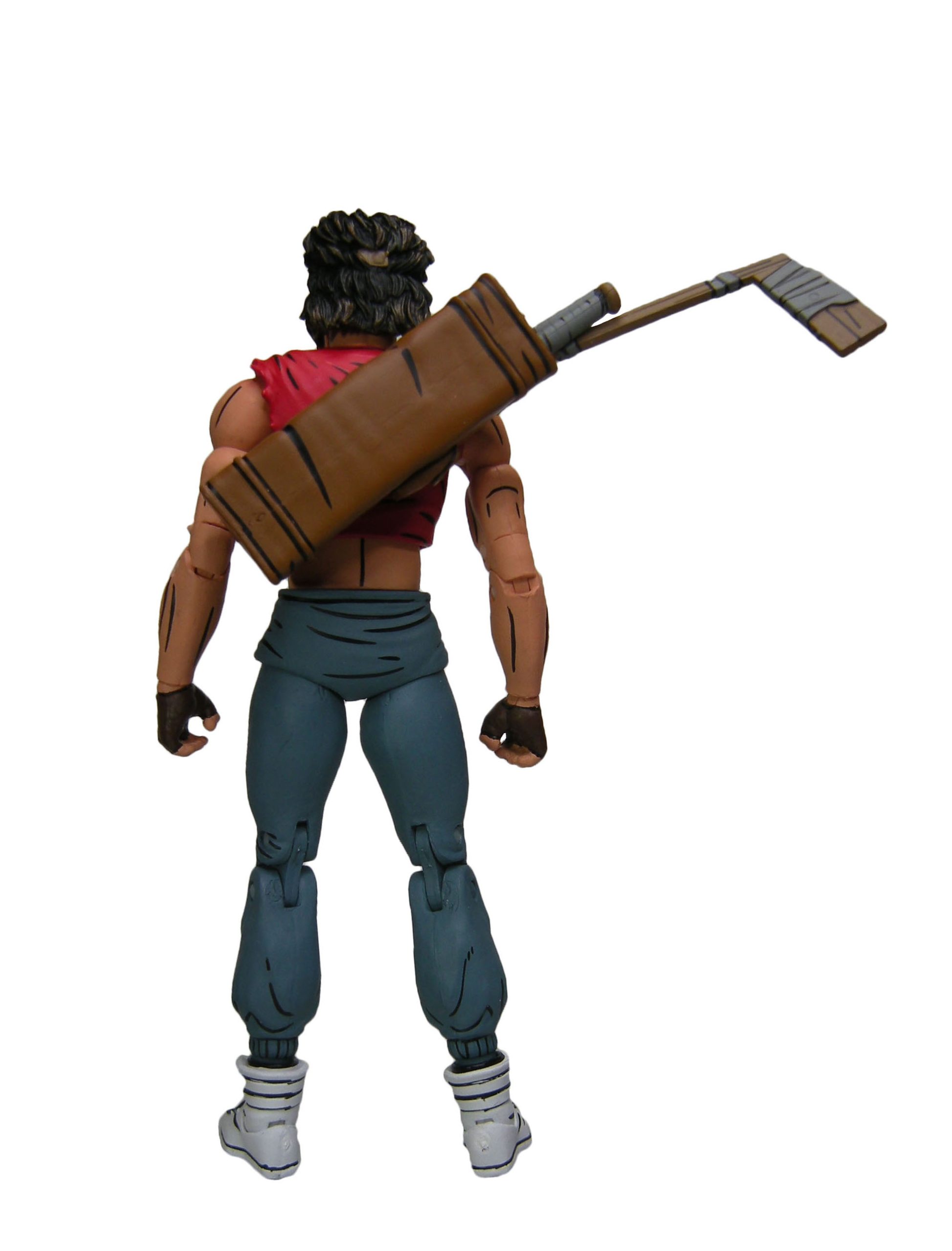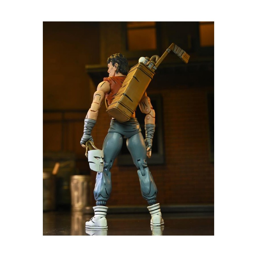 Qu’est-ce que serait Casey Jones sans tout son attirail ? Notre justicier masqué est accompagné de deux têtes interchangeables, un masque, deux paires de mains et une droite supplémentaire, une crosse de hockey, deux battes de baseball, un club de golf et un sac de sport.