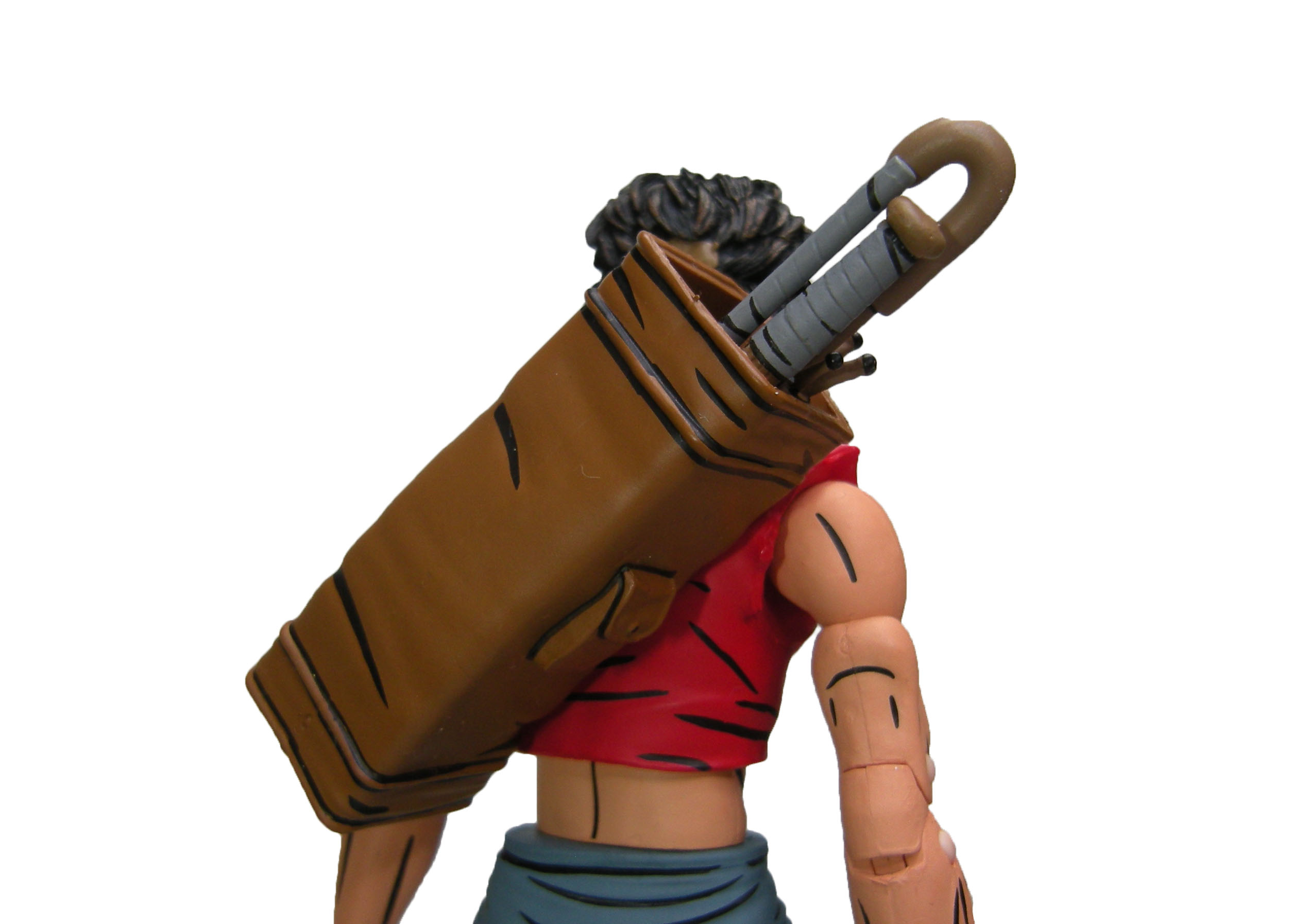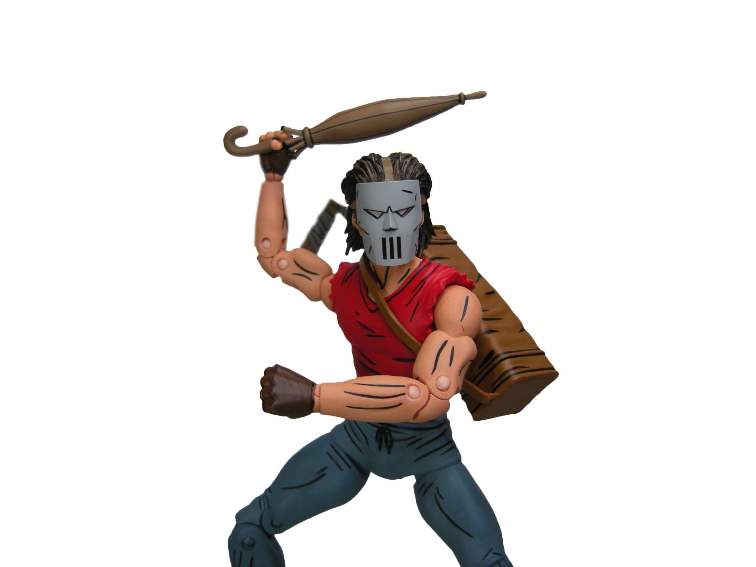 Et parce que l’ancienne version de Casey n’avait vraiment pas beaucoup d’accessoires, NECA a rajouté pour cette nouvelle figurine un parapluie de combat ! Cette arme de fortune provient de la micro-série de Raphael.