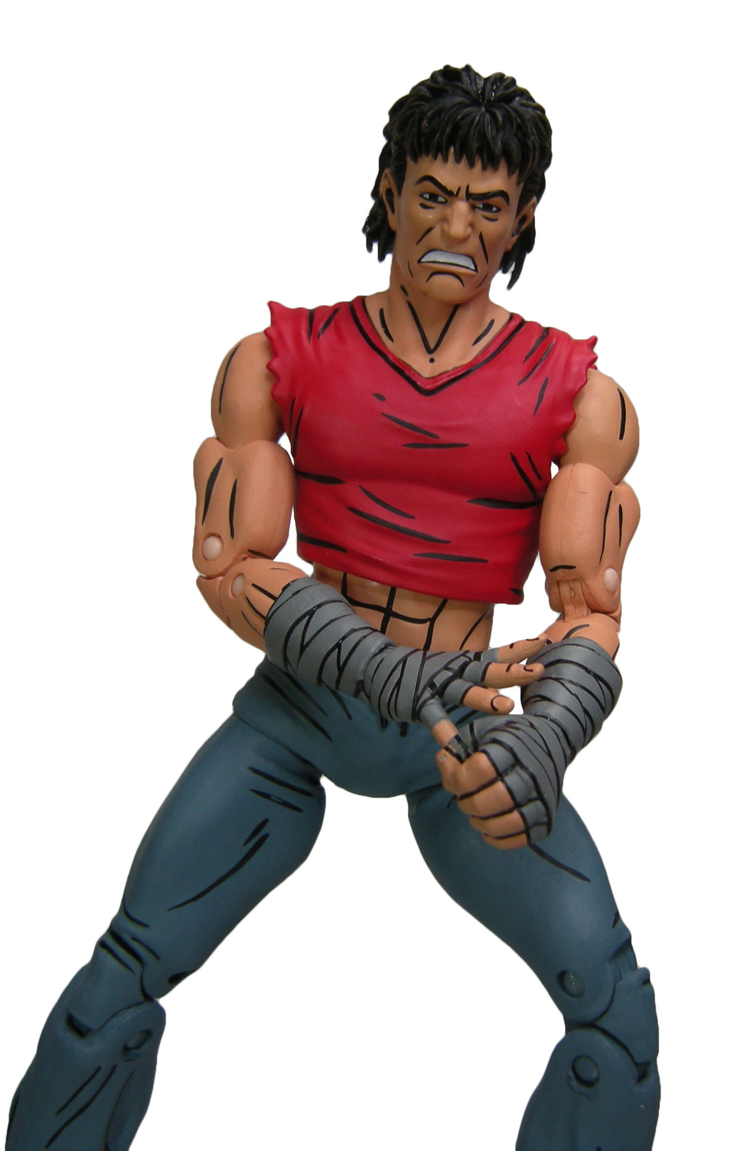 NECA nous propose pour cette figurine deux paires de bras. Une avec bandelettes autour des poignets et une sans, la version d’origine. Celle avec les bandelettes est assez inattendue. Je n’ai pas le souvenir de l’avoir vu avec dans les pages du comic, hormis un bref instant dans le TMNT (Vol. 1) #49. Mais ces bandes ne se concentrent que sur les mains et non au niveau des bras. En revanche dans la première apparition de Casey, dans le TMNT Micro-series : Raphael, le justicier a les mains nues. Cet ajout aurait pu être plus intéressant. Il est toujours possible de lui ajouter les mains d’autres personnages, à conditions que la couleur de peau corresponde.