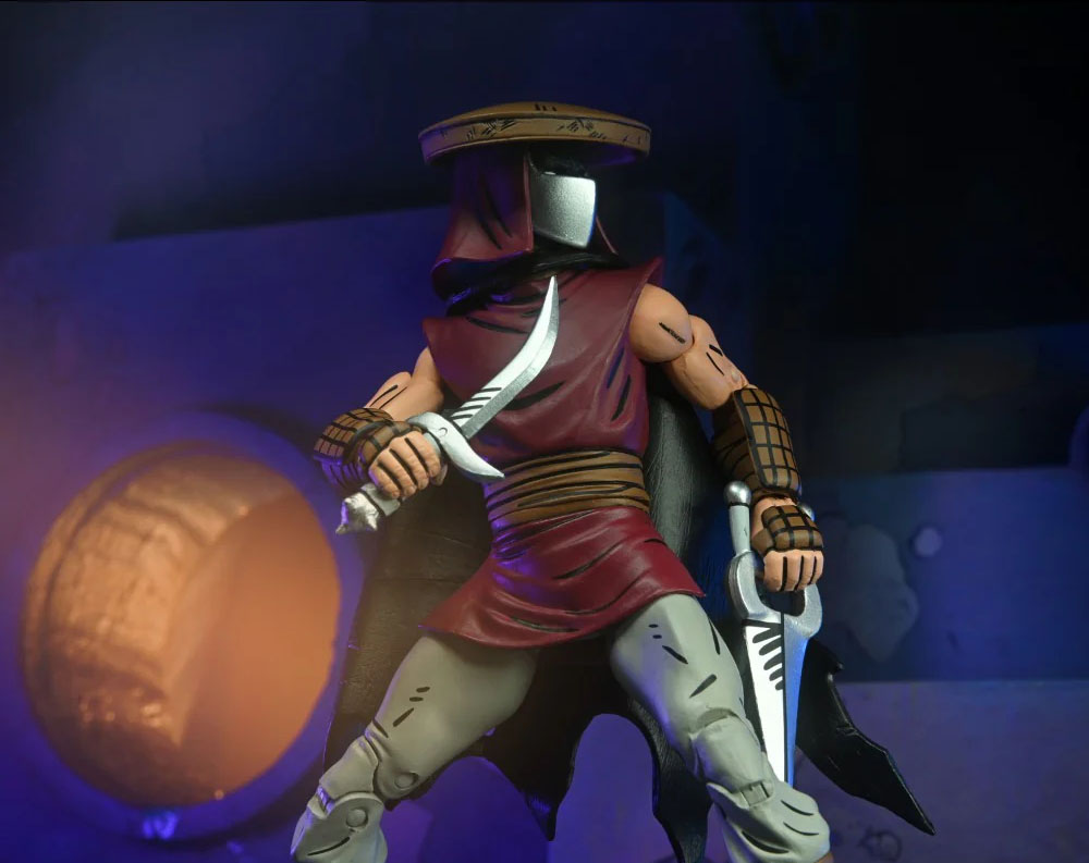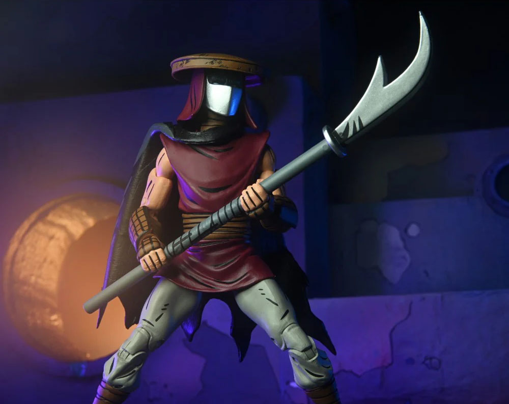 Ce qui différencie réellement le ninja d’élite des autres personnages est sa tête et sa cape. Le masque qui recouvre son visage, bien que similaire à celui de Shredder, est bien moins arrondi, avec une arrête verticale prononcée en son centre.