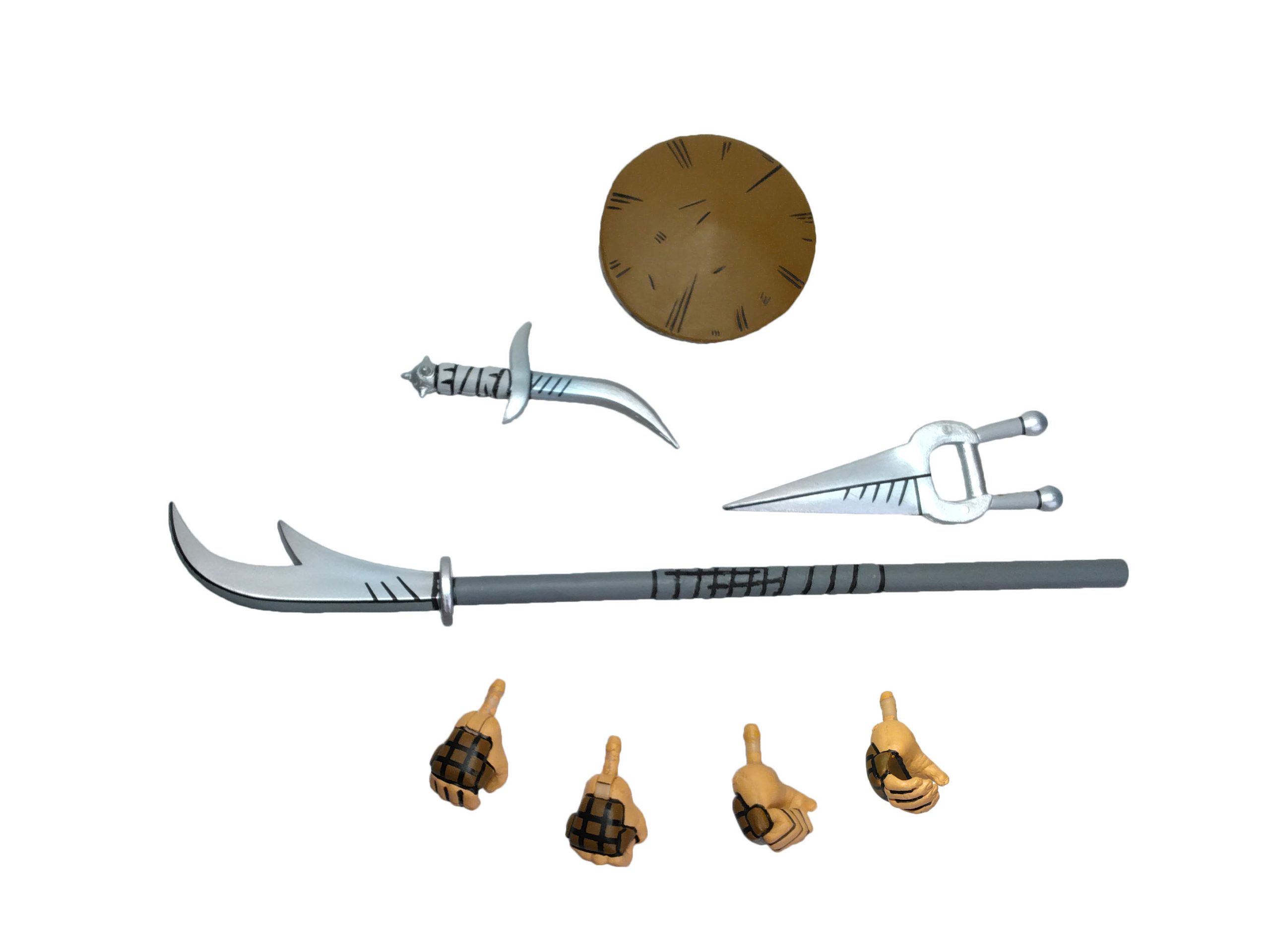 Malheureusement, c’est tout. Que des accessoires qui existaient déjà. Quand on possède l’ancien pack, c’est dérangeant. Autre problème, les armes proposées ne sont pas franchement représentatives de celles des gardiens d’élite. Dans le TMNT Micro-series Leonardo, lors de la première apparition de ces soldats, ceux-ci brandissent des sabres. La lance n’arrive que plus tard. Pourquoi ne pas avoir inclus ces armes ?