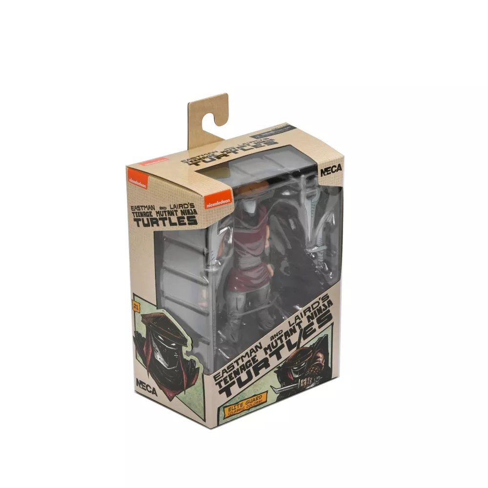 La figurine du gardien d’élite est une vieille histoire pour NECA. Sa sculpture, par les fameux Four Horsemen, remonte à la fin de l’année 2008 ou du début de 2009. À cette époque, le fabriquant venait de percer avec les tortues de Mirage. Pour des raisons officiellement inconnues, NECA avait été contraint d’arrêter la production en 2009, avec la sortie d’April O’Neil. Mais à cette époque, d’autres personnages étaient annoncés, à savoir Shredder, un soldat Foot et un ninja Foot d’élite.