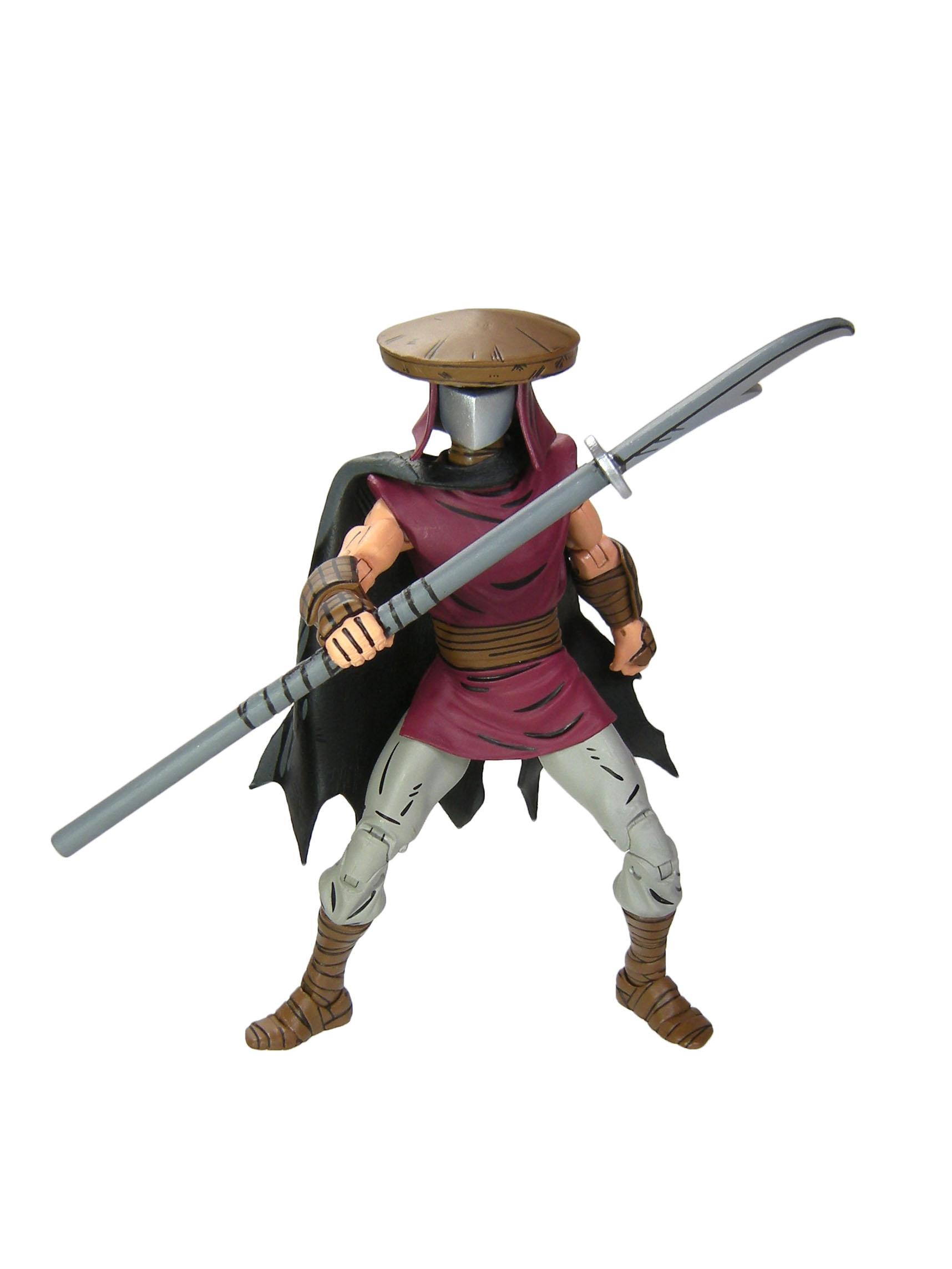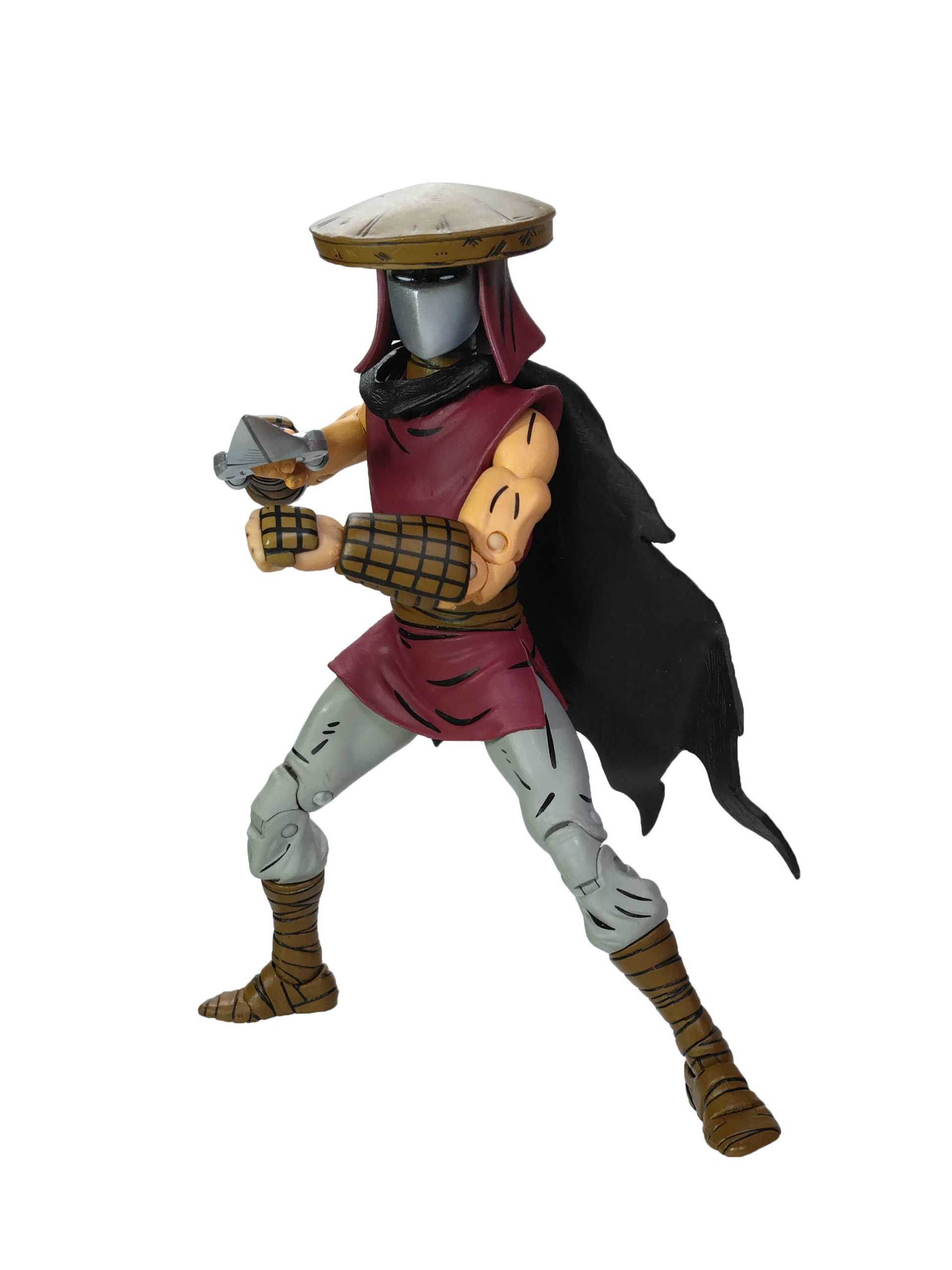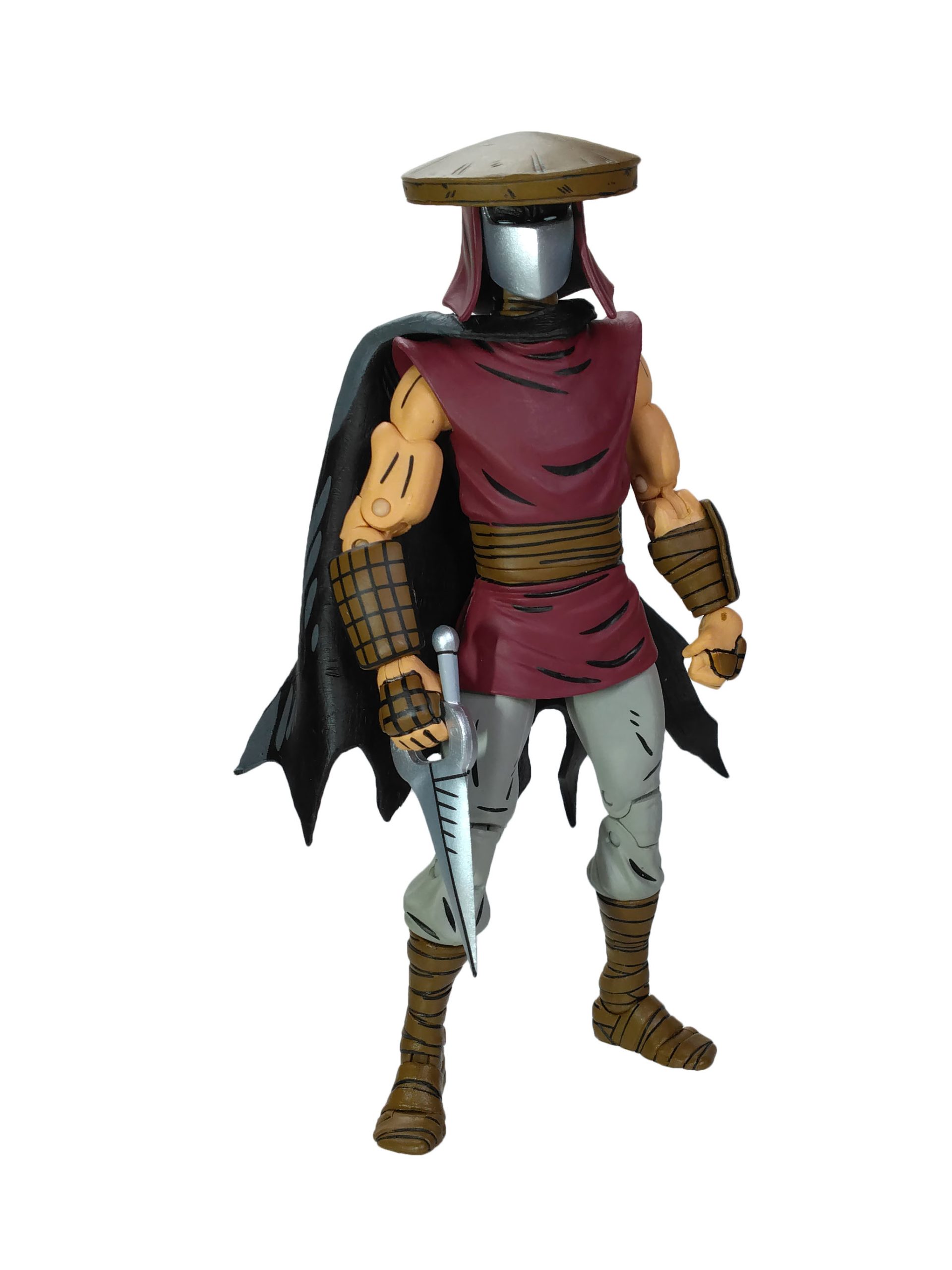 Parmi les autres accessoires, nous retrouvons le célèbre chapeau de paille, que vous pouvez retirer de la tête du soldat. Sur la version de 2016, celui-ci était collé. Dorénavant, vous pouvez le retirer de la tête plus facilement. Les armes sont au nombre de trois. La célèbre lance, un katar et un couteau. La peinture du métal est bien meilleure que celle proposée par le passé. Nous retrouvons l’effet de brillance des armes métalliques apportée sur les figurines de cette nouvelle gamme, avec des jeux de bleuté.