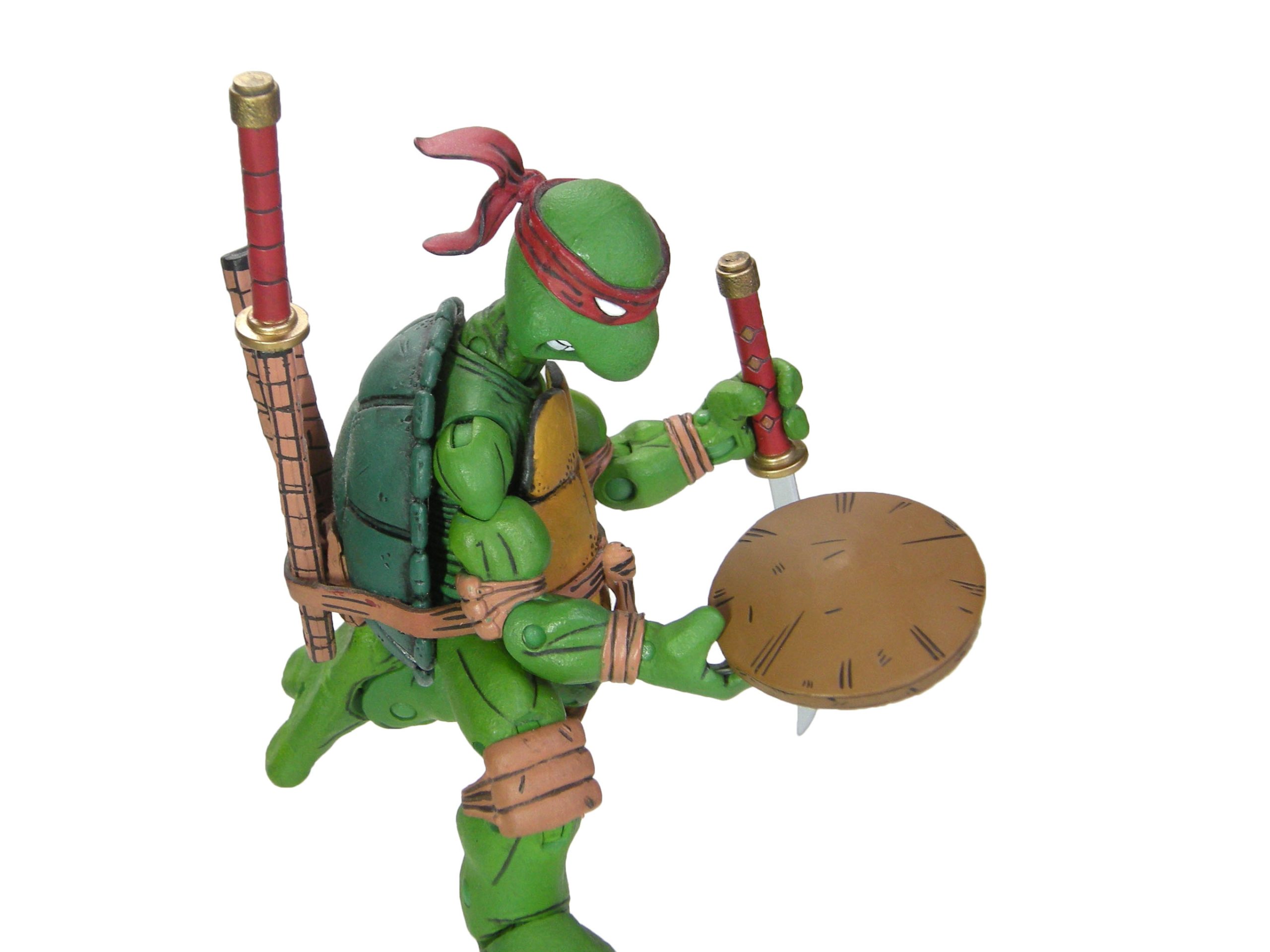 La figurine est plus grande que les tortues classiques de 3,5 cm, ce qui permet de lui donner un certain air menaçant face aux mutants lors des scènes de combat, et un grain en crédibilité supplémentaire.