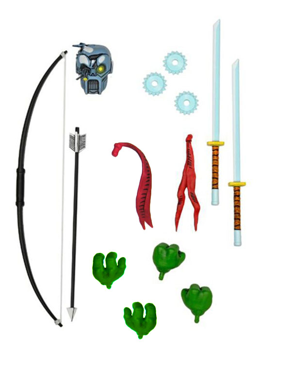 Le pack propose un grand nombre de mains interchangeables, en plus des sabres de Leonardo, un bras alternatif et de trois shurikens.