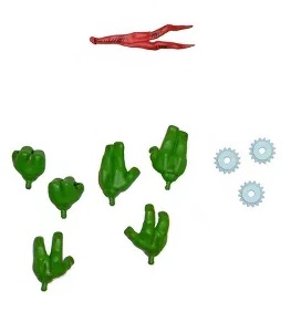 Nous avons une paire de mains aux poings fermés, une ouverte pour tenir des armes, une ouverte, extrêmement similaire à la précédente, mais aux doigts plus écartés. Celle-ci est à attribuer à Michelangelo, permettant de tenir les nunchakus entre ses doigts. Nous retrouvons également une paire aux doigts décontractés, et une à la paume plate.