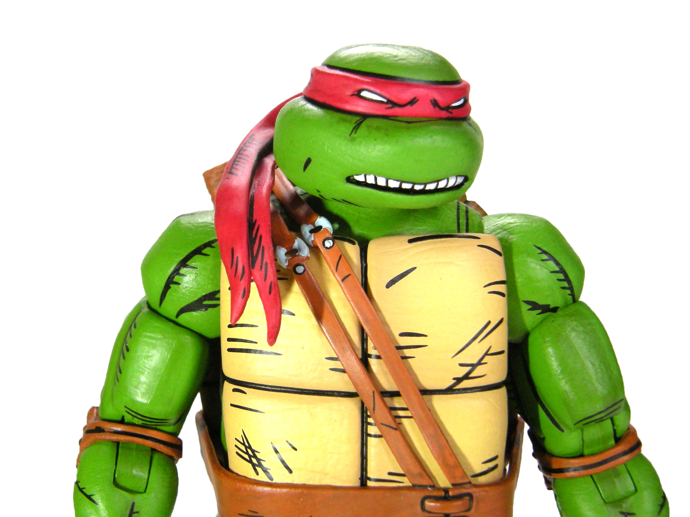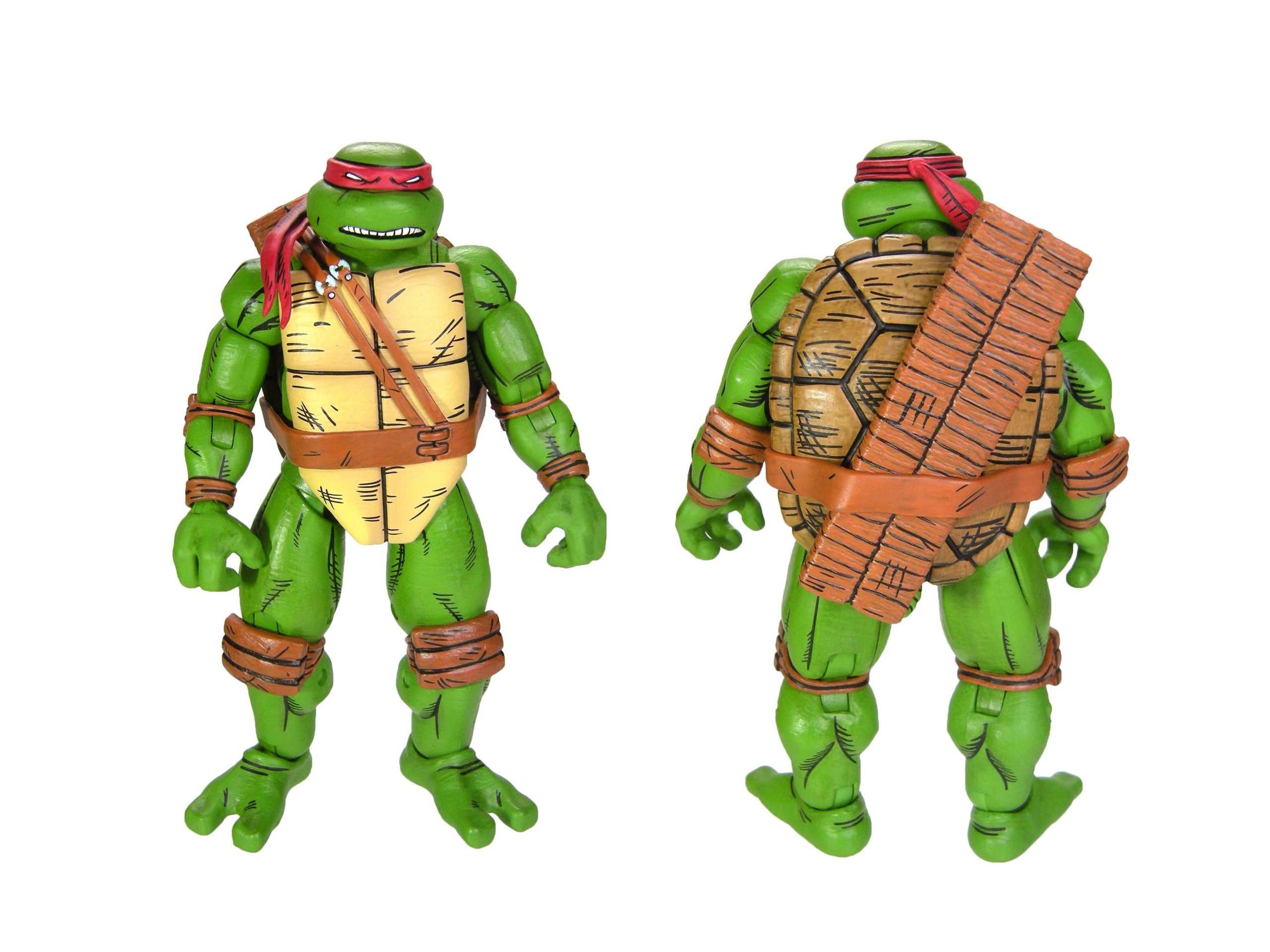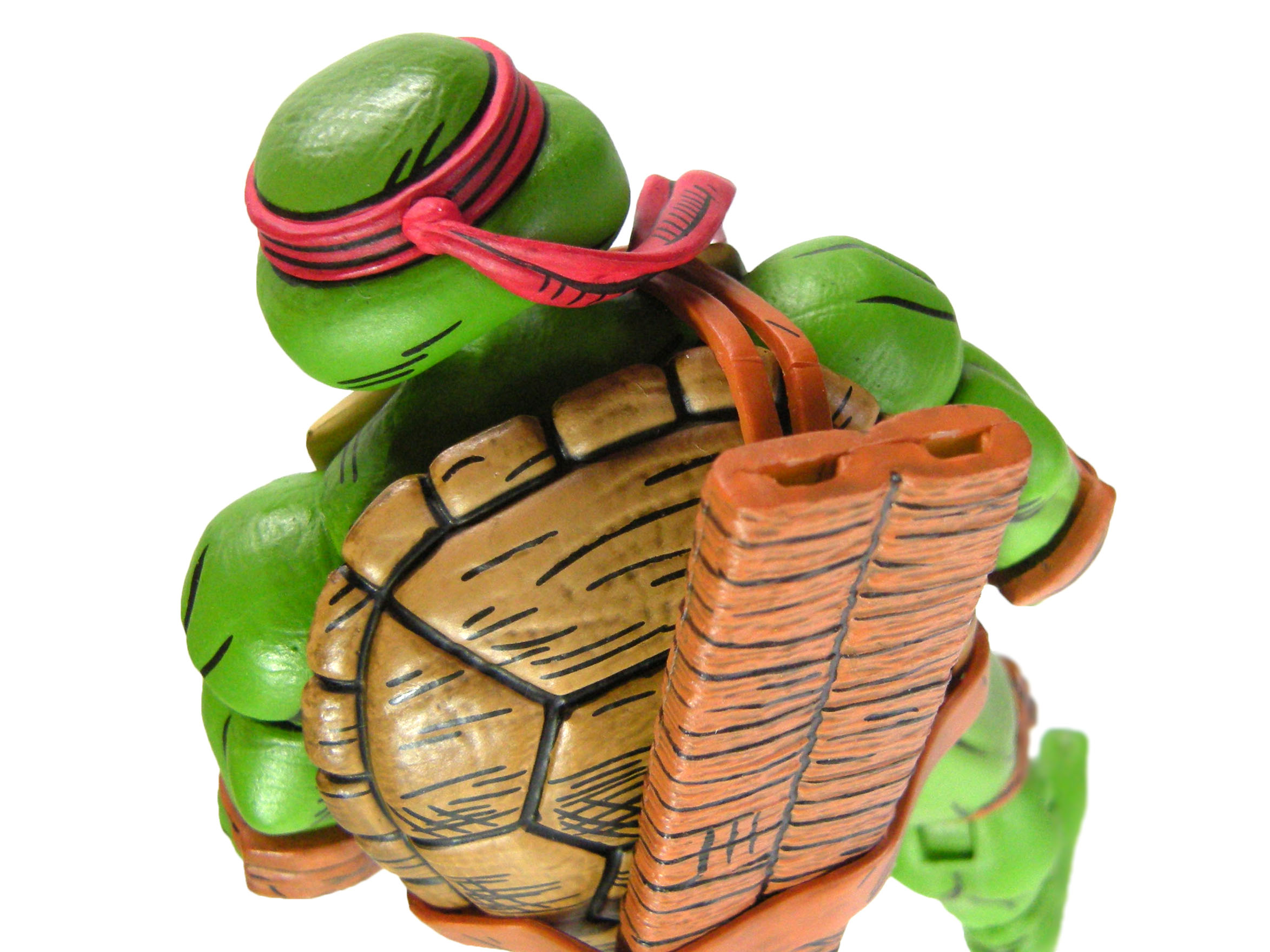 La peinture est l’un des points forts de cette figurine. Le code couleur est très simpliste. Les détails se trouvent surtout au niveau des traits noirs donnant un style comic book à la figurine. Cette peinture permet de distinguer les tortues les unes des autres. Les bras et les jambes sont peints de la même manière, à l’instar de la carapace. C’est surtout au niveau du plastron et de la ceinture que nous retrouvons des différences !