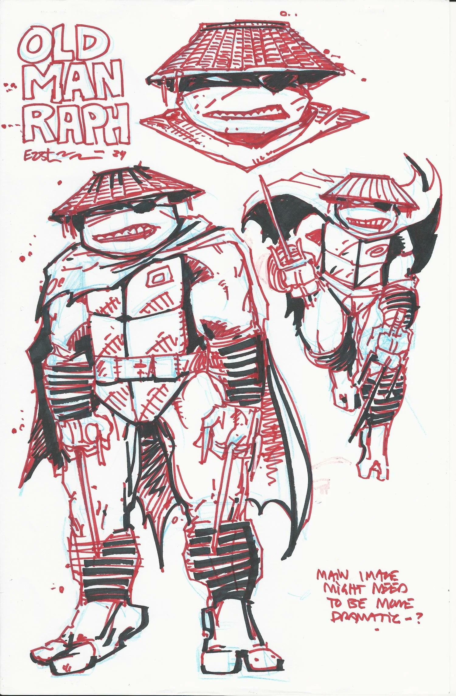 La figurine du Old Man Raphael a été dévoilée lors de la Comic Con de San Diego, le 25 juillet 2024. Sculptée par Paul Harding, elle reprend en grande partie la figurine du Wanderer, sortie l’année précédente. Mais avant cette officialisation, des fans avaient trouvés sur le site officiel de Kevin Eastman les croquis d’illustrations du blister, autour du 15 juillet. Ce personnage s’inspire d’une brève apparition de Raphael au travers des pages de The Puma Blues #20, édité chez Mirage et canonique à la ongoing des tortues.