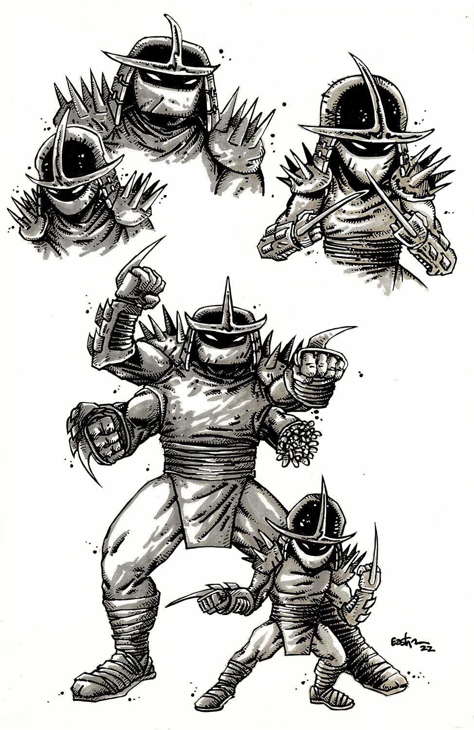Ces figurines ont été sculptées par l’artiste May Thamtarana, qui signe ici ses premiers travaux sur les Tortues Ninja. Hélas, il n’a pas partagé de travaux préparatoires sur les personnages.