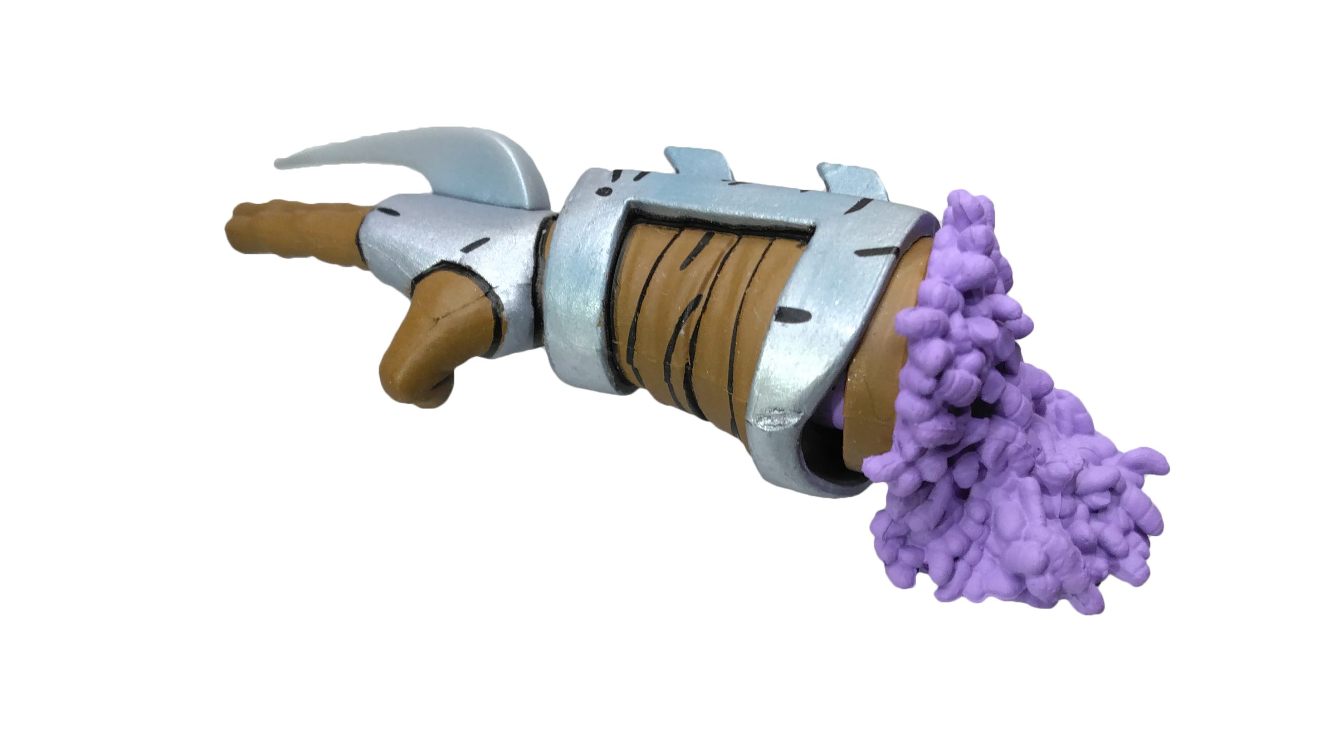 La sculpture du personnage demeure très simple, mais particulièrement réussie. Comme les deux autres clones, nous retrouvons ce visage difforme, avec ce casque bien trop gros pour sa petite tête. Comme le Shiva Shredder, la petite créature dispose d’un pagne en plastique souple. Les autres parties de son corps sont faites en plastique rigide. Nous retrouvons également un pic sur chaque main, rajouté de la même manière que pour la figurine principale de ce pack.