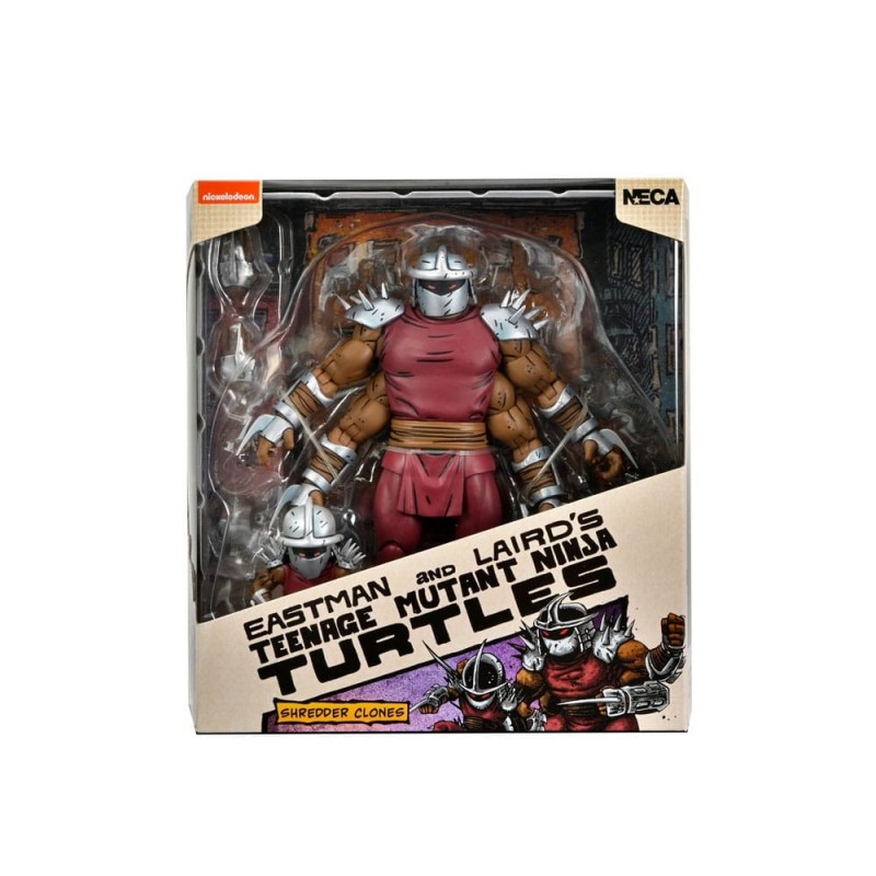 Les deux clones de Shredder ont été présentés pour la première fois lors de la Comic Con de San Diego, en juillet 2022. Le troisième clone, Claw Shredder, était sorti l’été dernier en tant qu’exclusivité de Lootcrate. Notons d’ailleurs que pour une fois, NECA nous propose ici une coloration digne des comics de Mirage et non des rééditions recolorées d’IDW Publishing. Ouf !
