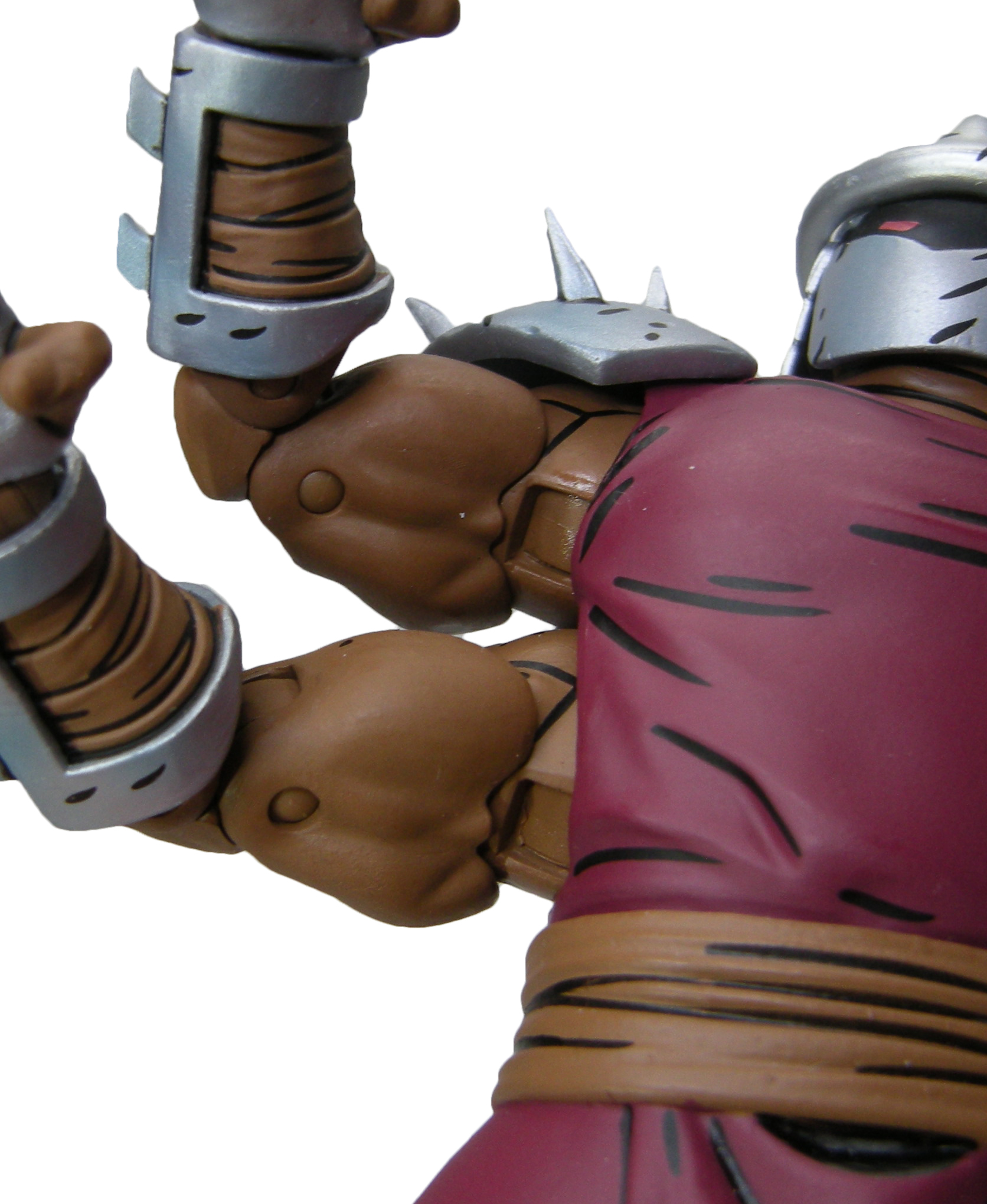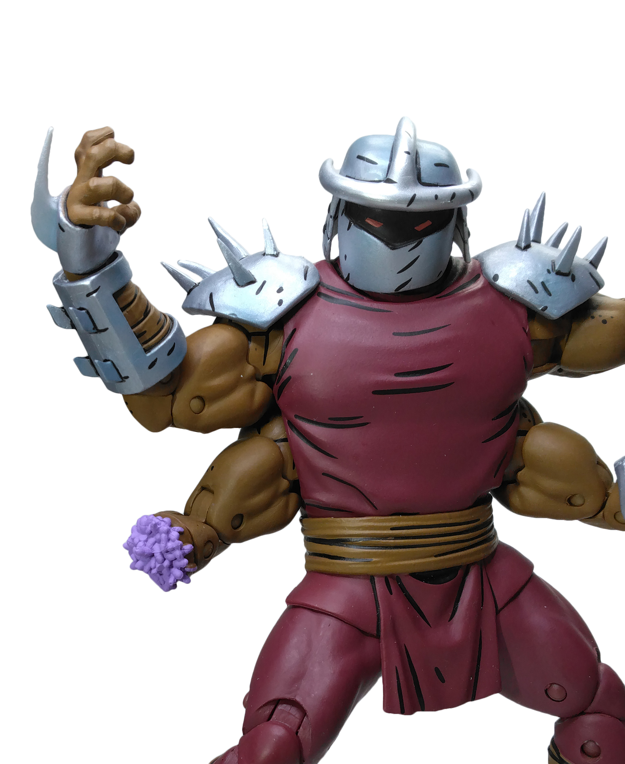 La figurine aux quatre bras, aussi surnommée Shiva Shredder, est un vrai colosse. Déjà imposante, les quatre bras renforcent cet aspect. La figurine est plus grande que le Shredder sculpté pour NECA en 2009.