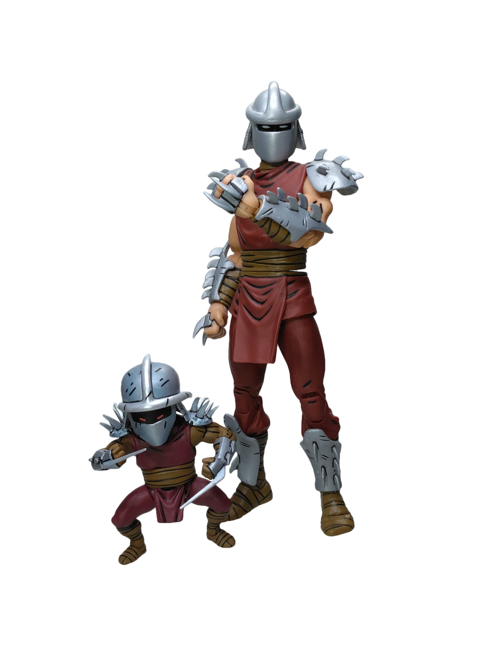 Shiva et Mini Shredder étaient deux des quatre clones mutants de Shredder mis au point par le Foot Clan afin de ramener à la vie leur défunt chef. Avec d’anciennes connaissances magiques et la science du XXe siècle, les scientifiques du clan sont parvenus à élaborer des vers de terre capables de dévorer un corps. La colonie était ainsi capable de former une seule entité aux souvenirs et à la mémoire assimilée. Ainsi, les restes calcinés de Shredder ont été dévorés par ces vers, donnant naissance à trois versions ratées de ce dernier, croisées avec d’autres éléments, le Shiva Shredder, le Mini Shredder et le Claw Shredder. Ensemble, ils formaient sa garde d’élite. Enfin, un quatrième et dernier clone a vu le jour, reprenant à la perfection les traits de leur modèle d’origine.