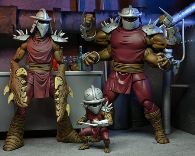 Shiva et Mini Shredder ont été montrés également par Trevor Zammit, chargé de la production TMNT chez NECA, lors d’une présentation du planning du fabricant pour Fwoosh fin janvier 2023. Ces figurines sont sorties dans un premier temps comme exclusivité pour le Haulathon, partenariat entre NECA et l’enseigne américaine Target, le 24 février 2023. Ils ont été mis en ligne sur le site de costumes.com, toujours dans le cadre du Haulathon, le 3 mars. Contrairement à l’édition de l’année précédente, ces figurines ont été proposées par la suite chez les revendeurs européens. En France, ces figurines sont annoncées pour fin juillet 2023.