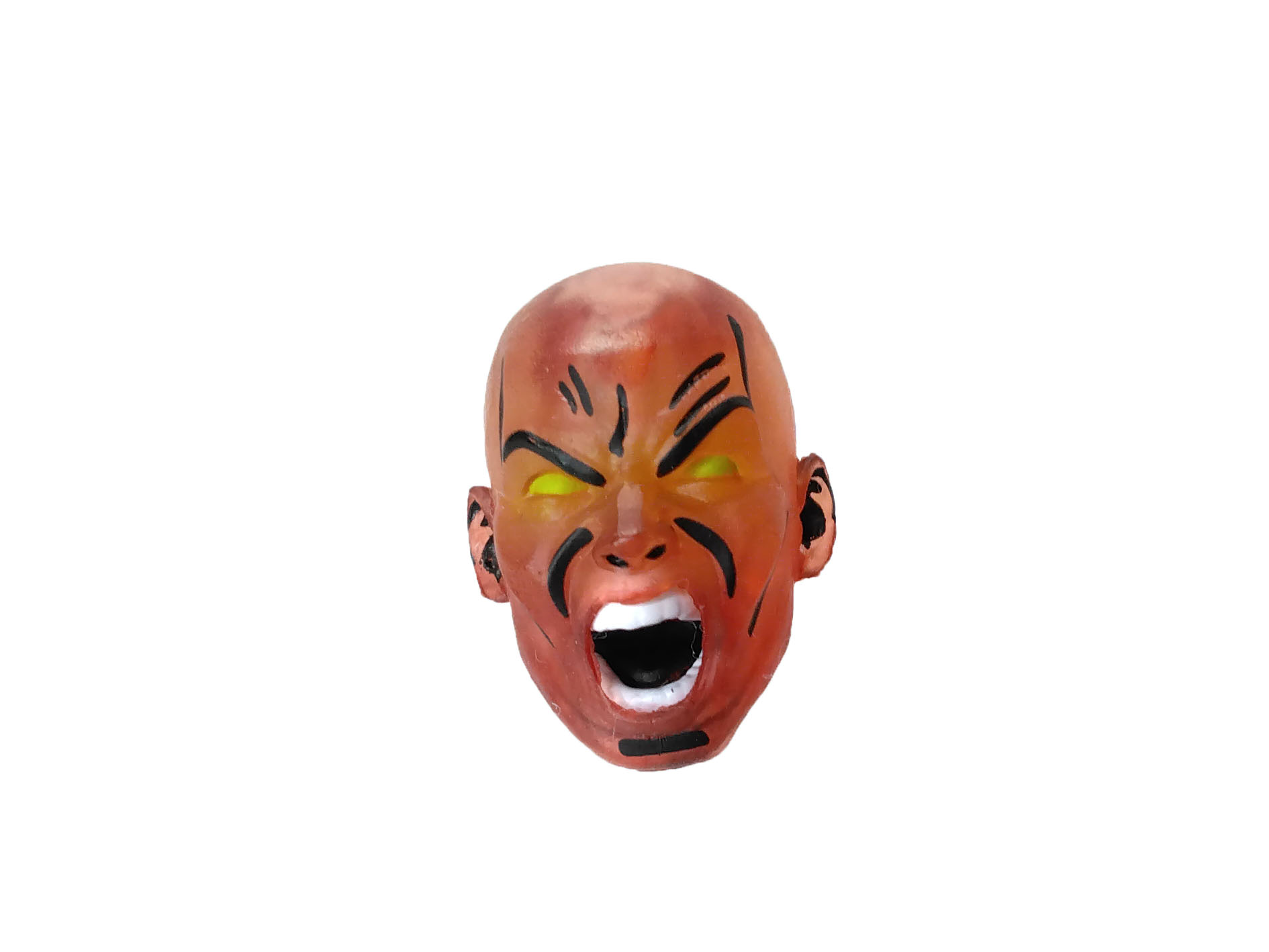 Nous retrouvons également une tête rouge translucide, qui n’est autre que l’apparition du seigneur Simultaneous. Un ajout plutôt inattendu, mais qui me laisse sur ma faim une fois en main. La tête est vraiment petite, vous pouvez l’utiliser sur le corps d’un personnage ! L’expression colérique est largement renforcée par une peinture sombre qui accentue ses traits.