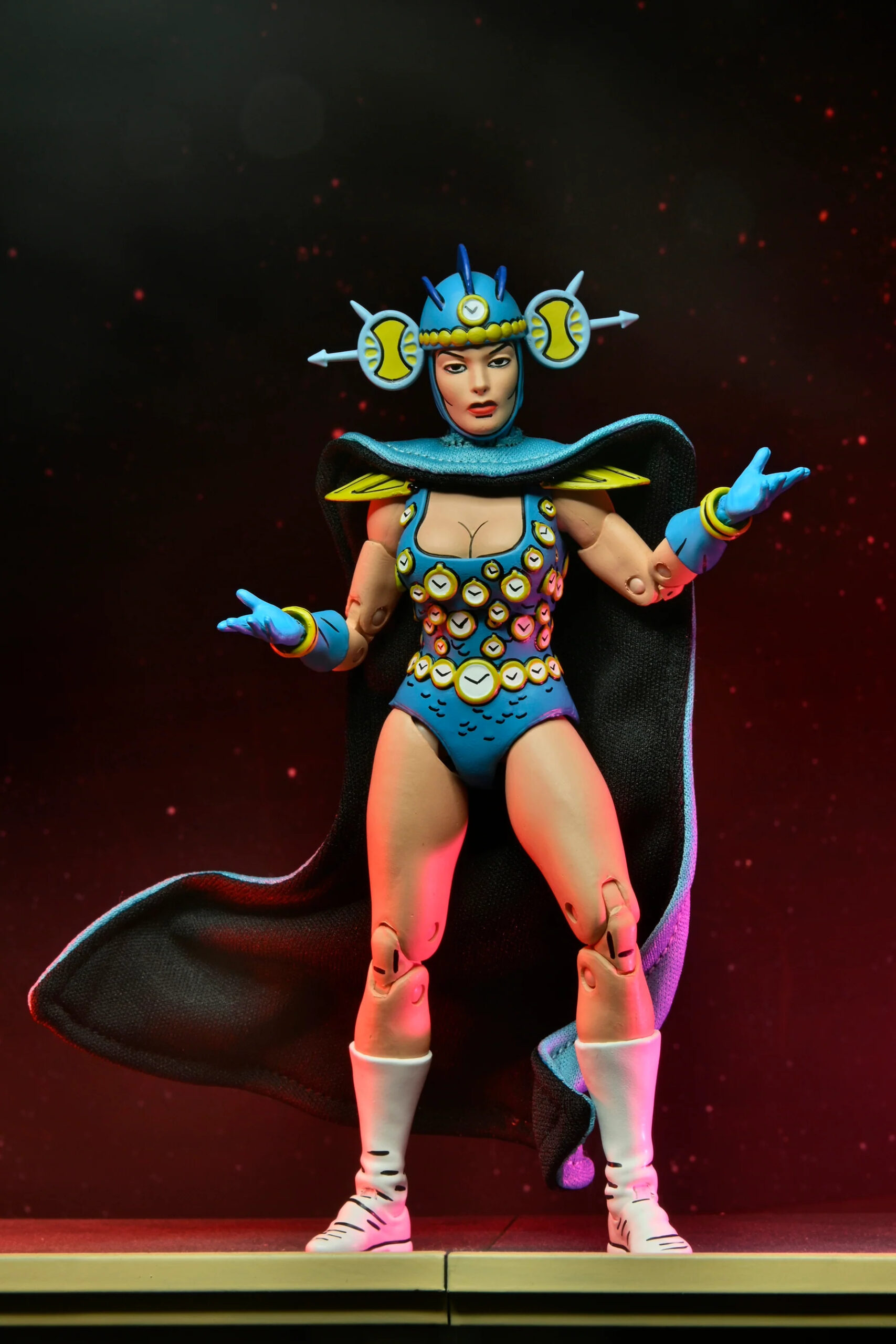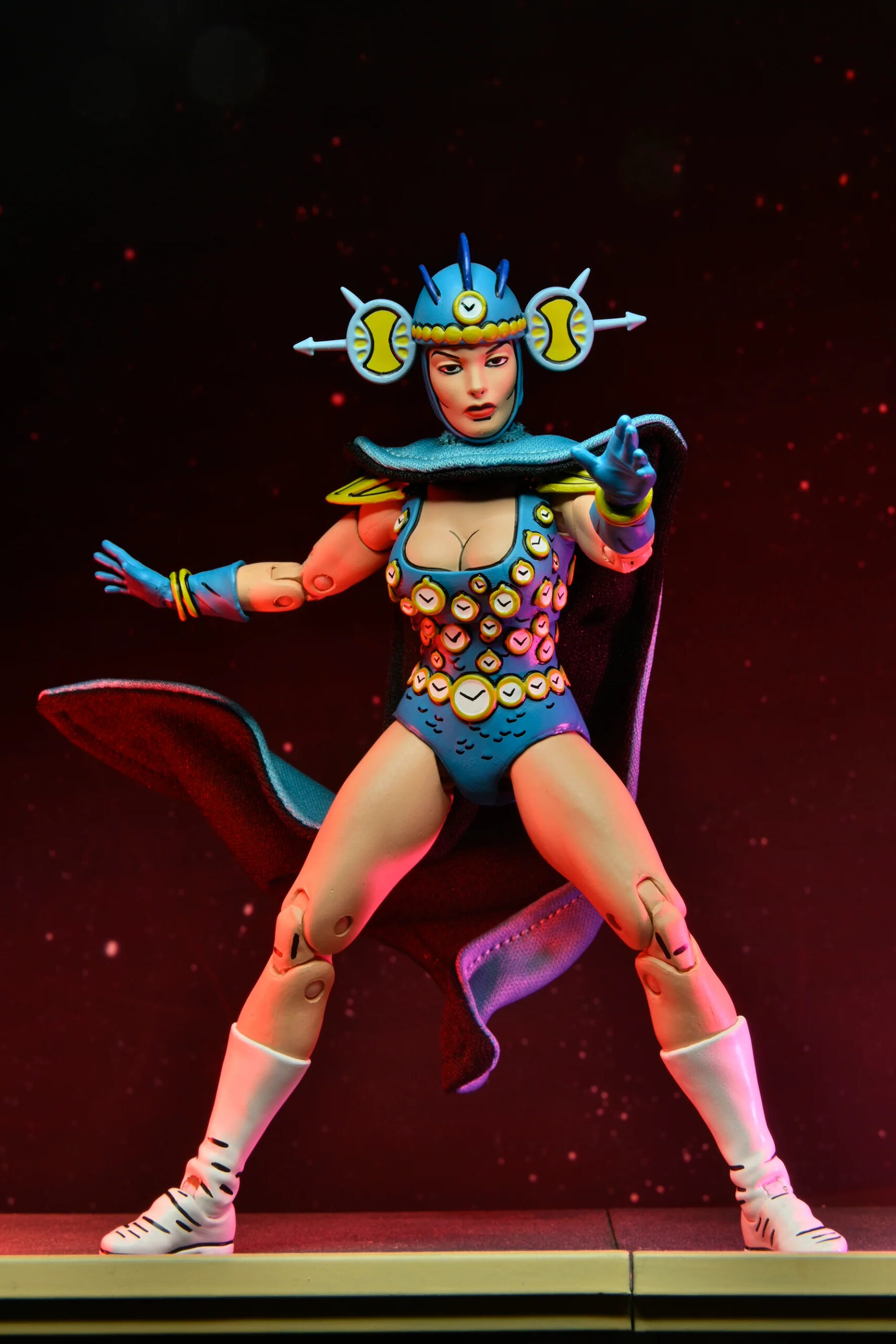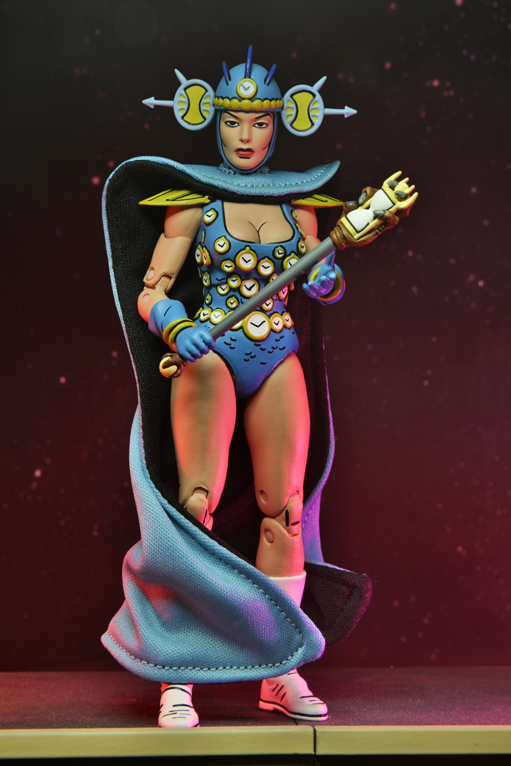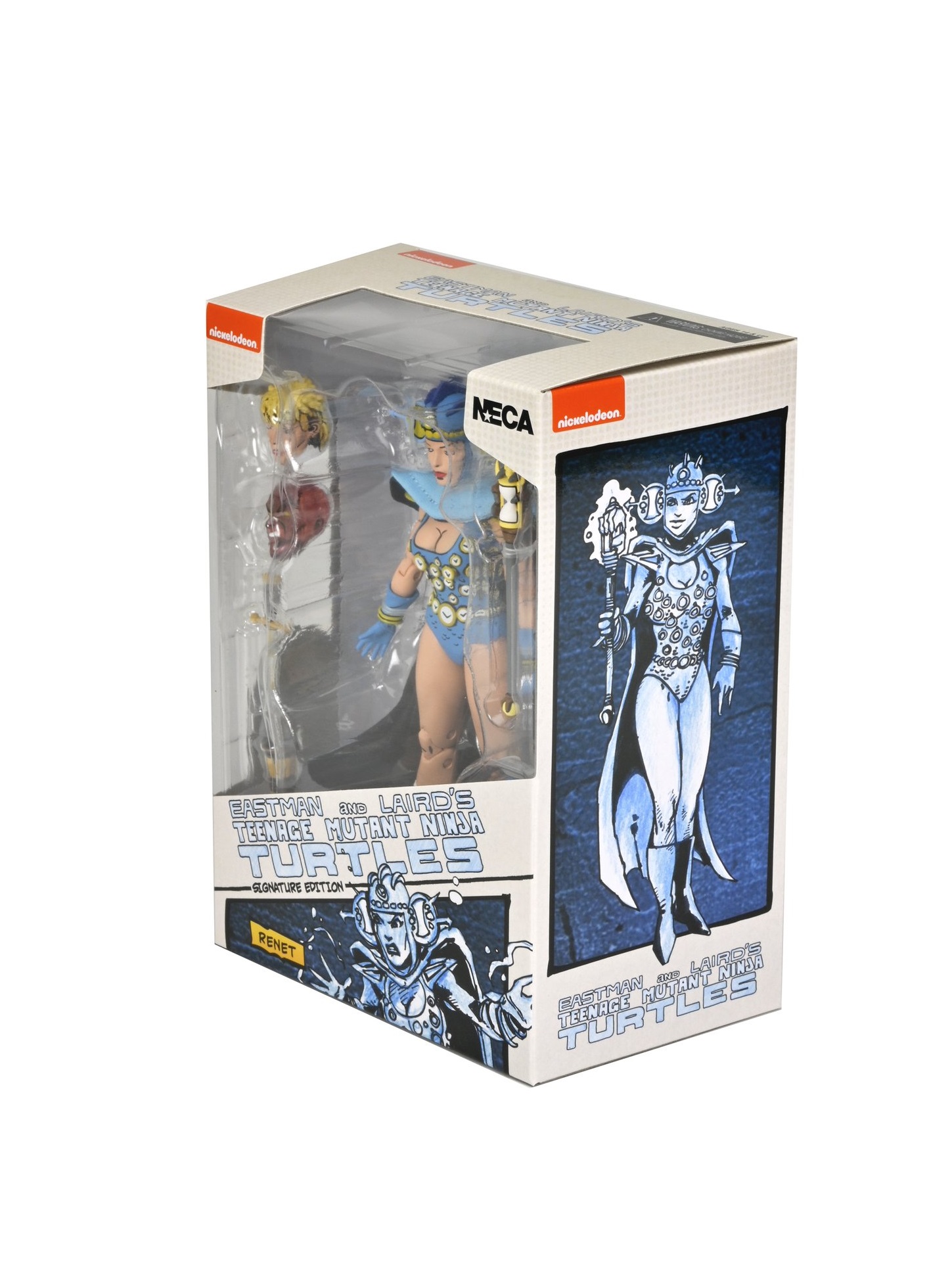 NECA avait teasé la sortie de la version bleue de Renet à travers la Comic Con de juillet 2022. À cette occasion le fabricant avait disposé le casque bleu de l’apprentie maîtresse du temps sur le blister de sa version rouge.