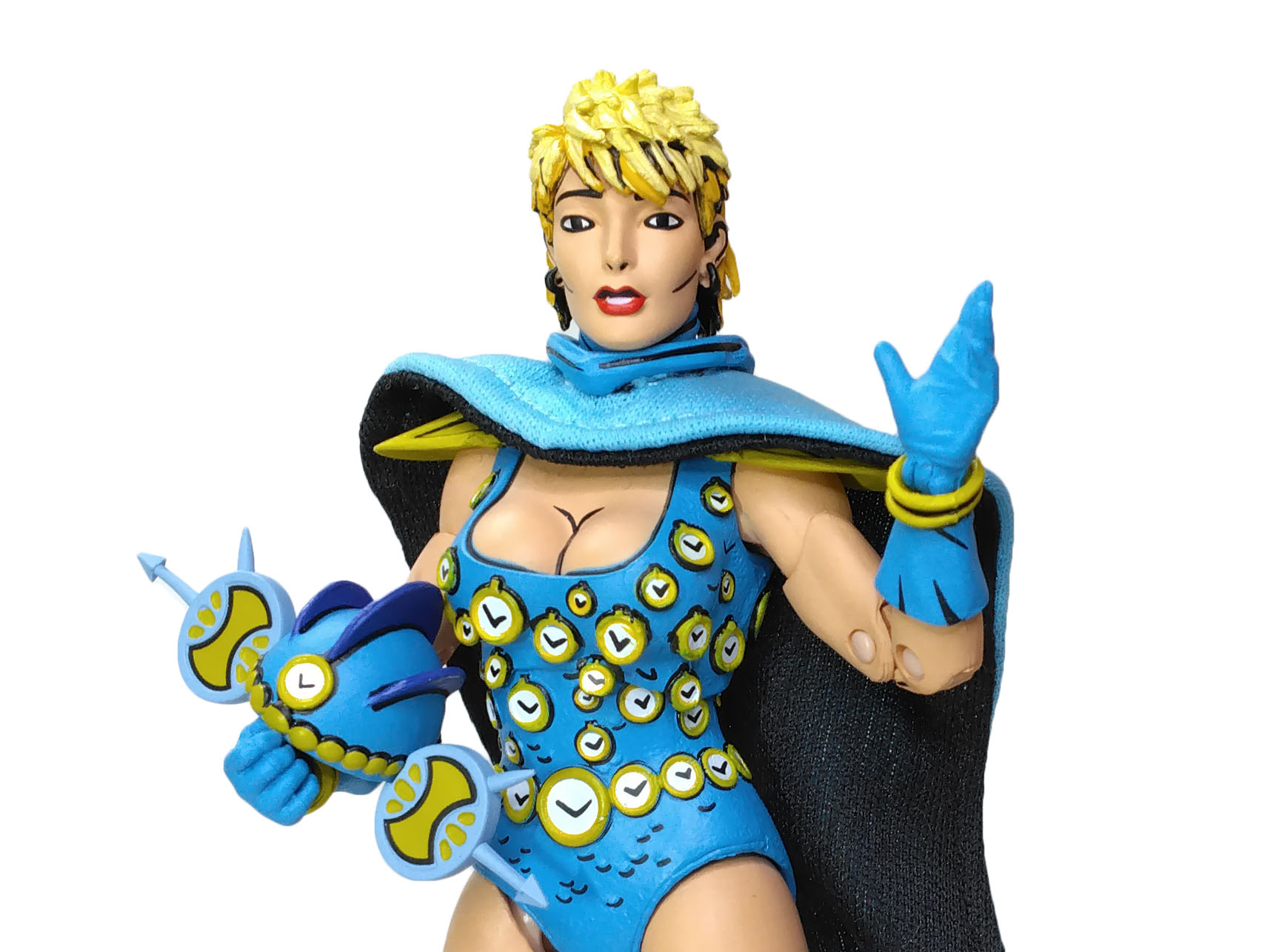 La sculpture de Jon Matthews est très fine et propose de nombreux détails pour cette figurine. Principalement au niveau de sa tenue, truffée de petites horloges.