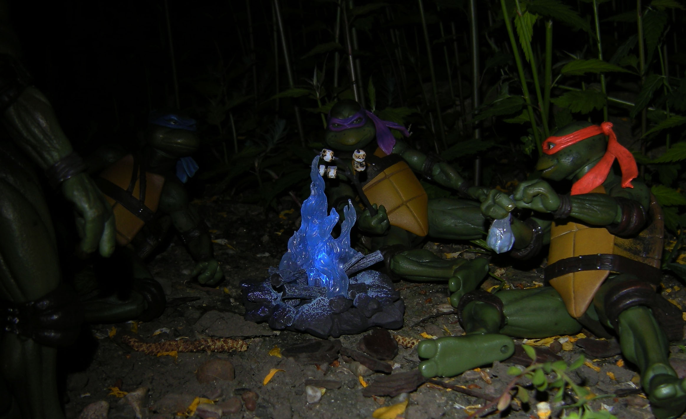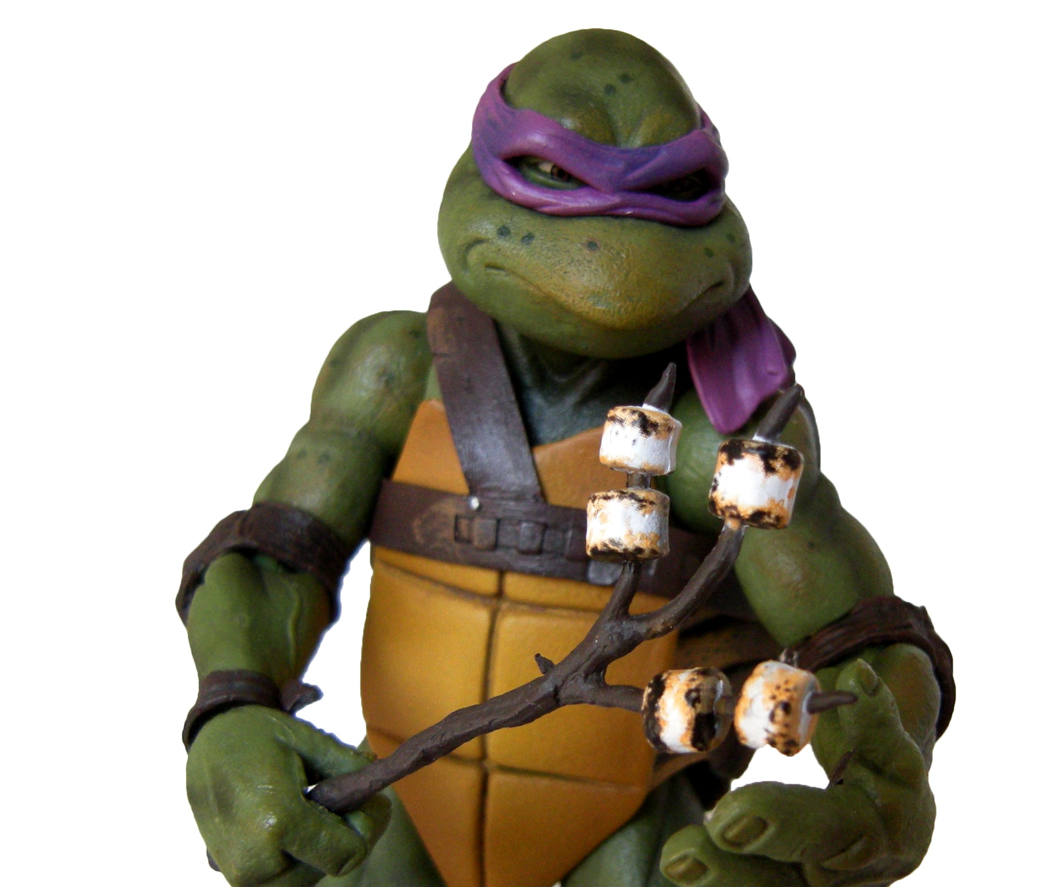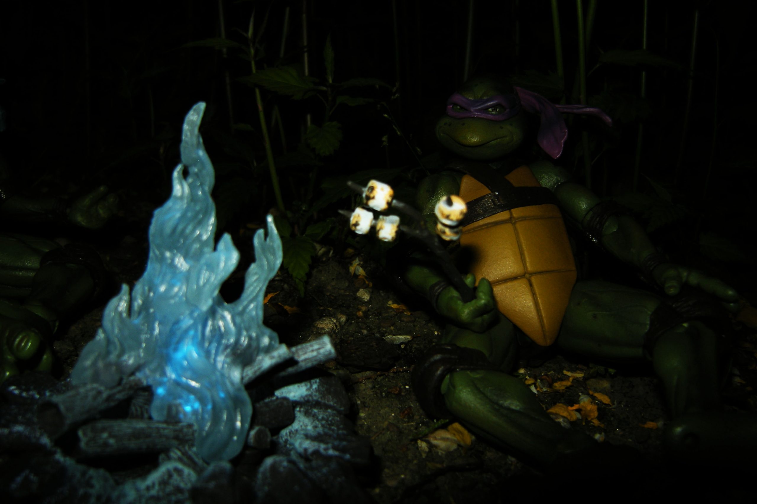 Donatello pour faire griller des marshmallows et le sac des bonbons que les tortues avaient emporté avec elles.