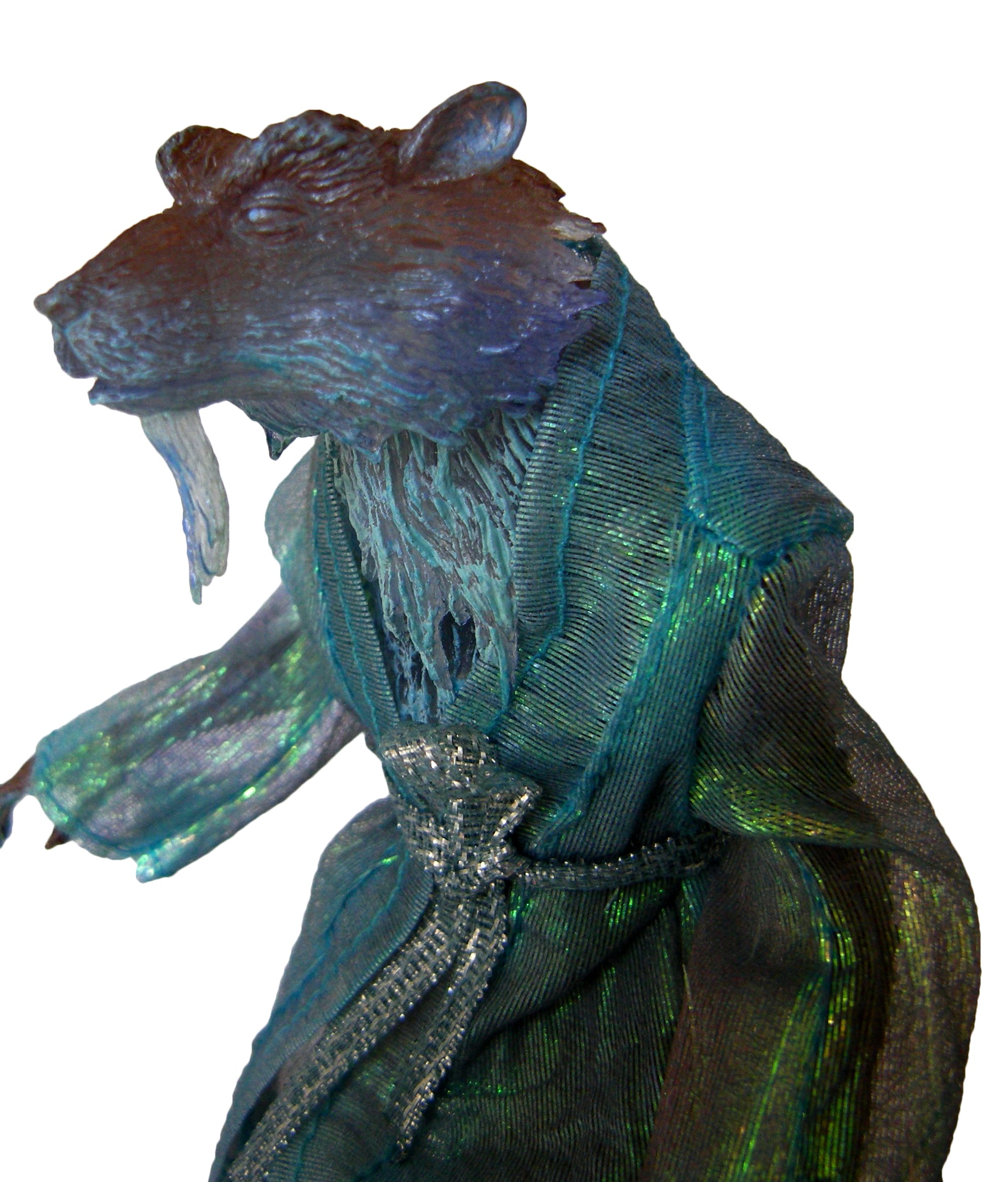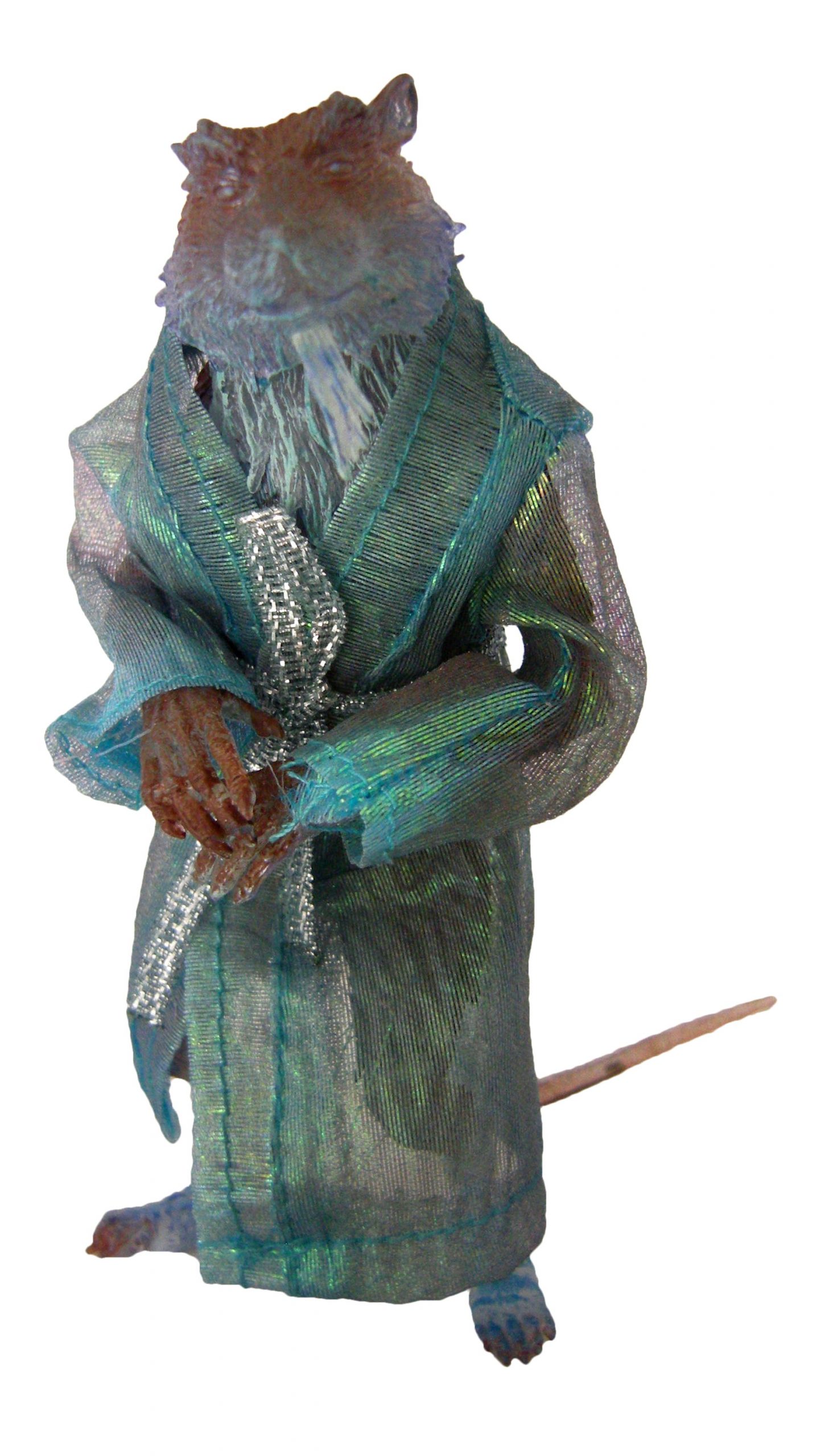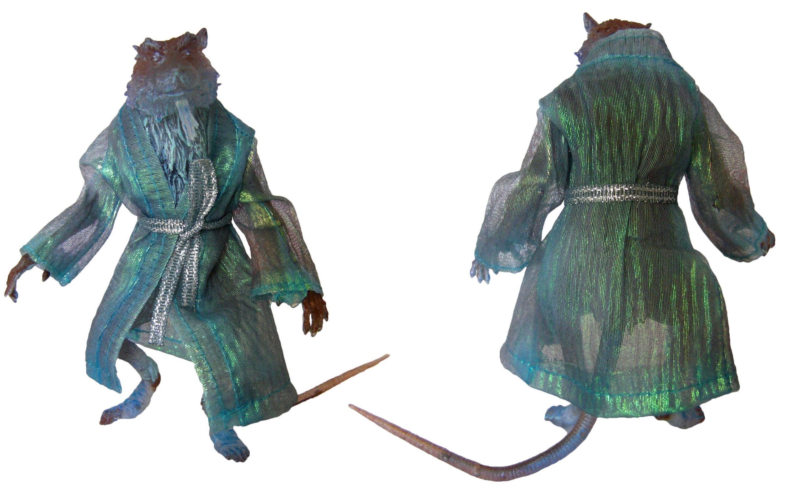 Le haut de la tête, la partie supérieure des bras et des pattes sont recouverts d’un brun rappelant le pelage du rat. Mais à aucun moment la peinture est suffisamment prononcée pour empêcher le côté translucide de la figurine.