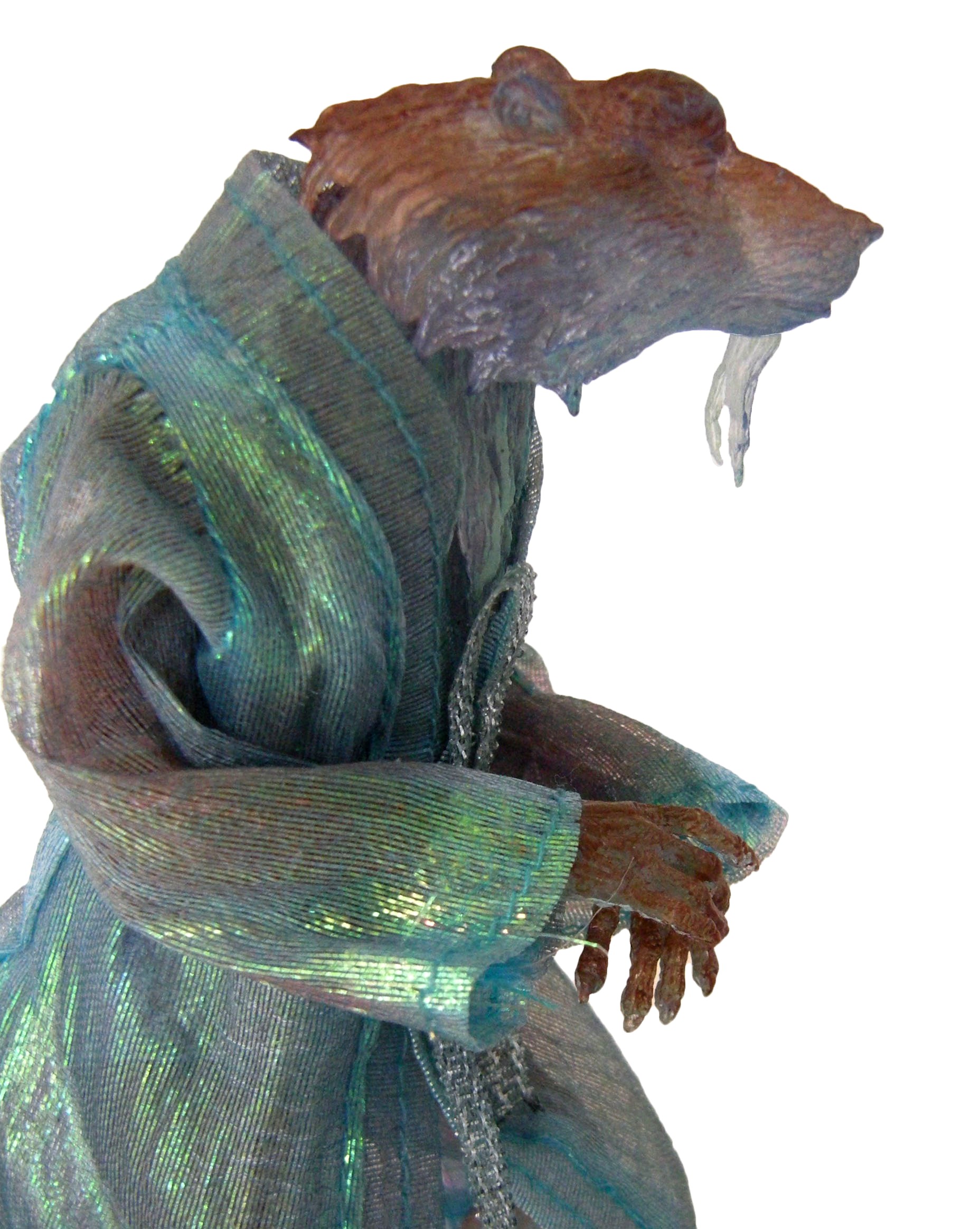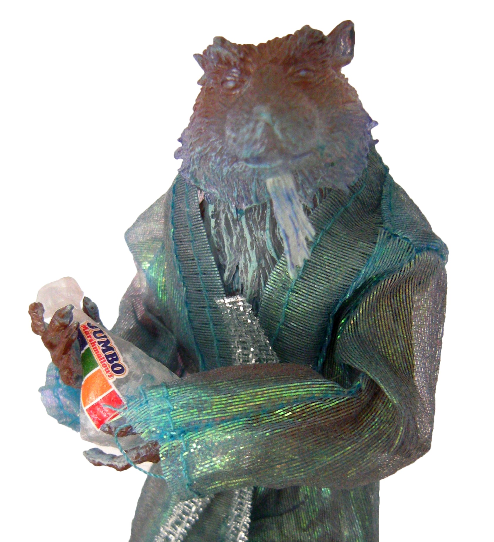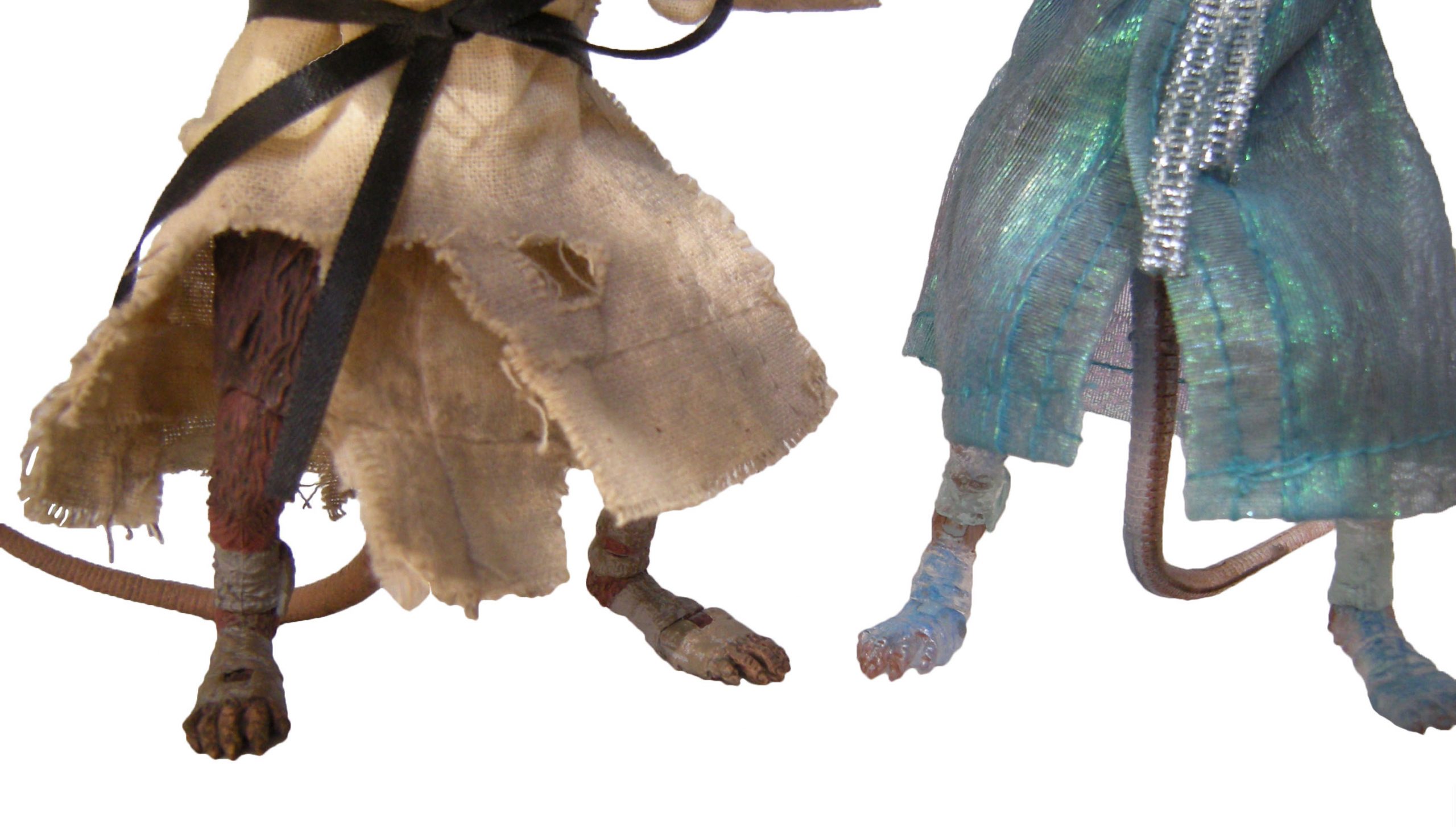 Le haut de la tête, la partie supérieure des bras et des pattes sont recouverts d’un brun rappelant le pelage du rat. Mais à aucun moment la peinture est suffisamment prononcée pour empêcher le côté translucide de la figurine.