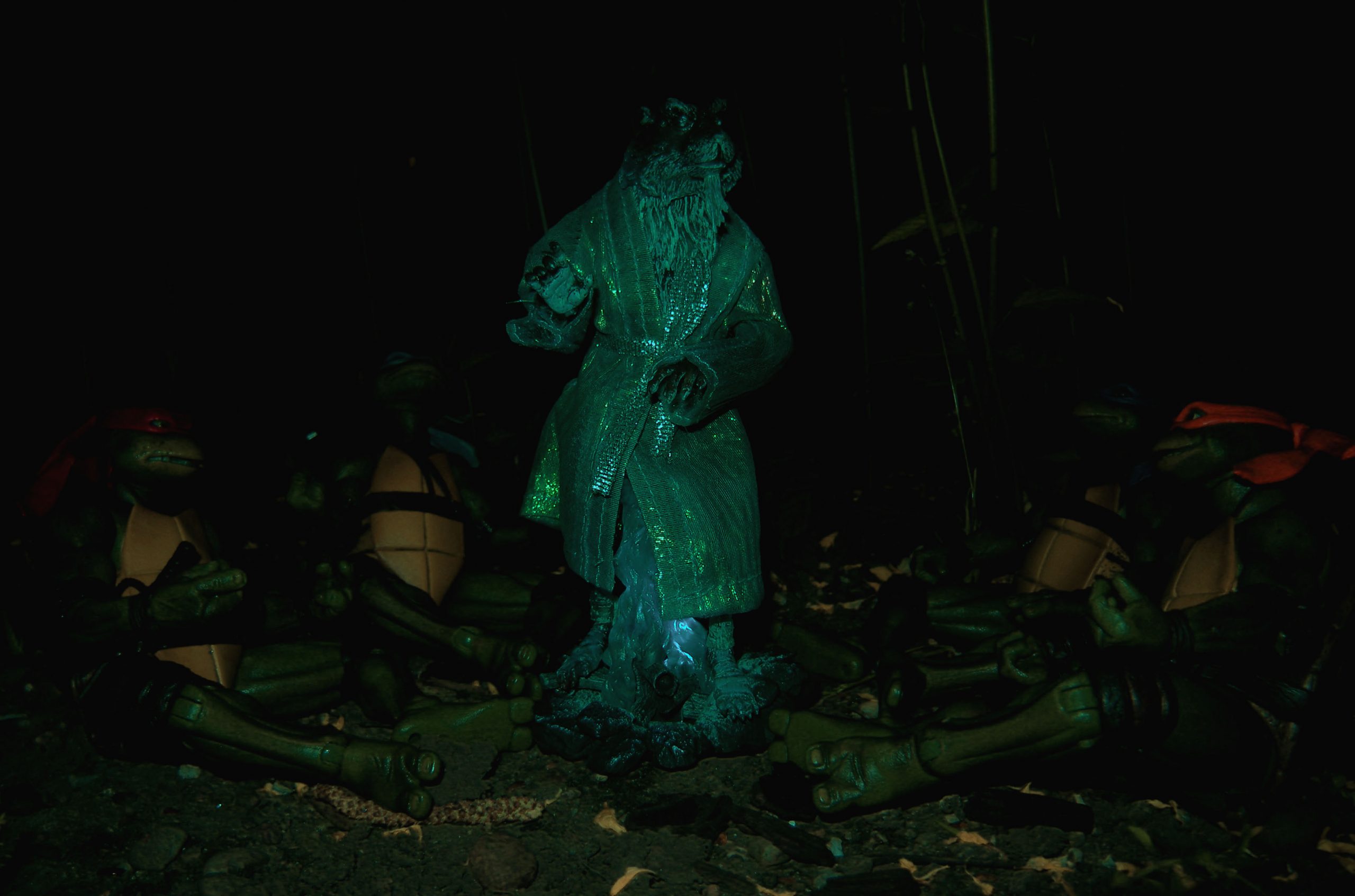 Ce feu de camp est la base permettant de disposer Splinter et ainsi recréer la scène de son apparition à ses fils. Toutefois, il n’y a pas de réceptacle pour poser la figurine. Elle doit être tenue en équilibre à la fois sur les pierres et les banches. Il est possible de disposer sa robe devant le feu afin d’améliorer la propagation de la lumière dans le plastique translucide de la figurine et améliorer ainsi son rendu visuel.