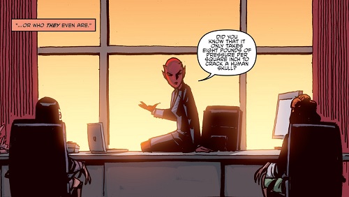 La sécurité avait été renforcée aux laboratoires de Null Industries. Slash et Old Hob observaient les mouvements depuis les toits de bâtiments alentours. Il leur fallait un plan s’ils voulaient entrer. Ils n’étaient finalement qu’en reconnaissance. Slash suggérait à son chef de revenir plus tard avec leurs compagnons. Mais Hob avait trop peur que ces changements ne soient pas uniquement au niveau de la sécurité. Que d’autres mutants soient en danger. Ils devaient agir au plus vite et découvrir ce que cachaient ces individus pour être si bien défendus. Soudain, il voyait un scientifique solitaire sortir du camp renforcé…