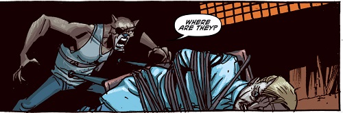 L’homme refusait d’en dire plus, notamment où ils se trouvaient, il craignait le courroux de madame Null. Mais Hob ne lui laissait guère le choix, sortant ses griffes prêt à le tuer s’il ne parlait pas. Slash avait fermé trop souvent les yeux ces derniers temps et retenait le bras de son ami. Effrayé, leur prisonnier révélait que les mutants se trouvaient dans un dépôt ferroviaire de l’entreprise Null au nord du New Jersey. Hob n’avait plus besoin de lui. S’apprêtant à l’abattre d’une balle, Slash s’interposait une nouvelle fois. Après avoir vérifié que ses liens étaient bien serrés, ils quittaient la pièce.