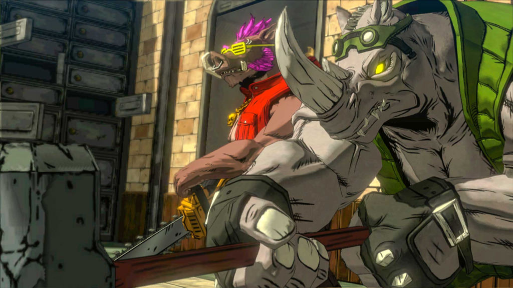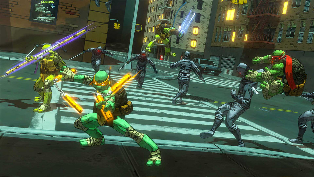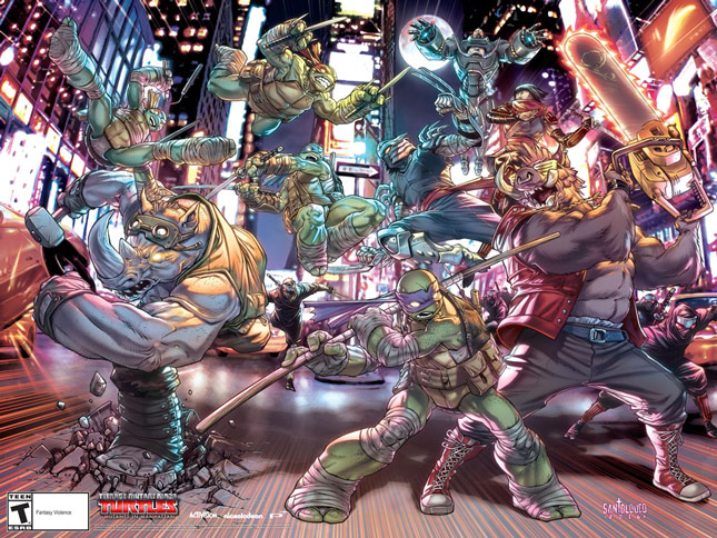 | Teenage Mutants Ninja Turtles : Mutants in Manhattan est un jeu-vidéo développé par Platinium Games et réalisé par Activision. Le scénario est de Tom Waltz, qui a déjà travaillé sur de nombreux numéros du comics TMNT produit par IDW. Les premières informations concernant ce jeu ont fuitées le 30 novembre 2015, promettant un univers plus sombre que celui de Nickelodeon. Peu de temps après, le nom du jeu ainsi qu’une image dessinée par Mateus Santolouco sortit sur internet. Les fans pouvaient à présent être sûrs que le jeu serait bel et bien adapté de l’univers d’IDW. Entre décembre 2015 et janvier 2016, les DLC et les premiers visuels du jeu ont fuités sur la toile. Platinium Games avait prévu d’ouvrir son site officiel avec la bande-annonce du jeu le 26 janvier 2016. Il avait été mis en ligne un jour avant, avec un compte à rebours. Hélas pour eux, la bande-annonce fuita dans la nuit du 25 et 26, les obligeant à la présenter de manière prématurée sur leur site. SinopsisBataille aux côtés de tes frères à travers les égouts, le métro, et les rues de New York pour vaincre l’organisation maléfique de Krang et de Shredder, Foot après Foot. Débloquez des compétences personnalisées de combats et de puissants combos d’équipe pour sauver Manhattan des forces obscures qui grandissent dans l’ombre. Le jeuLe jeu permettra aux fans de combattre de grands méchants de l’univers d’IDW, comme Bebop, Rocksteady, Shredder, les Foot ou encore les soldats de pierre. Il ne s’agit pas d’un jeu de plateformes ou linéaire comme ce fut le cas précédemment. Ici il sera question d’un jeu avec un monde ouvert dont les niveaux se termineront par n combat contre des boss. Un mode en-ligne permet de jouer de 1 à 4 joueurs, et un mode coopération de 2 à 4 joueurs. | Développeur : Platinium Games Editeur : Activision Scénario : Tom Waltz Date de sortie : Plateformes 1 à 4 joueurs (mode en-ligne) |