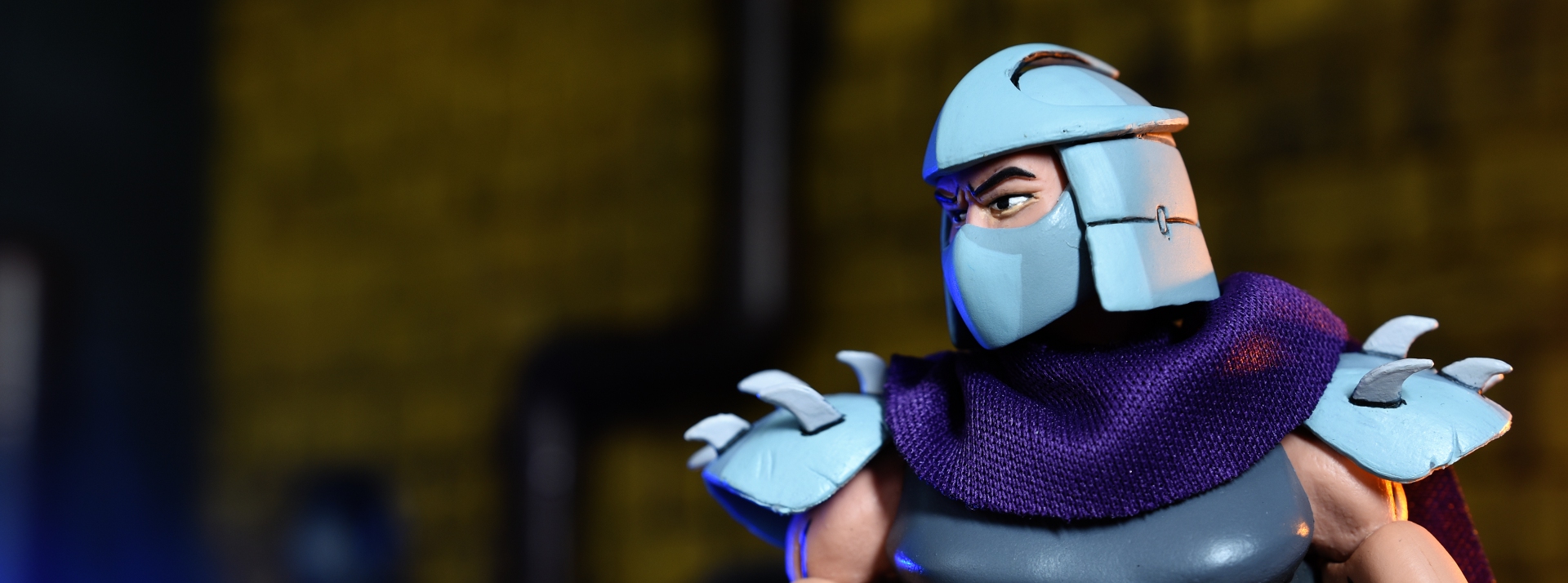 En 2017, NECA joua un grand coup, confirmant sa place de leader de l’époque en tant que fabricant de figurines Tortues Ninja pour collectionneurs, en annonçant une gamme spécialement consacrée au dessin animé de 1987. Il s’agissait d’un pack de huit personnages, exclusif au San Diego Comic Con. C’est là qu’apparut cette figurine de Shredder pour la première fois, avec quelques modifications apportées par l’artiste Trevor Zammit, alors en charge de la sculpture des figurines Tortues Ninja pour NECA. Pourquoi n’avons-nous parlé que d’exclusivités jusqu’ici ? Car le contrat liant NECA à Nickelodeon, jusqu’en août 2018, les obligeait à ne pouvoir vendre des figurines au format 7″ qu’à l’occasion de salons comme les Comic Con, et en très petites quantités. Une fois cet accord revu, le fabricant put vendre ses figurines, que ce soit du film de 1990, ou du dessin-animé de 1987, dans des boutiques avec accords exclusifs.