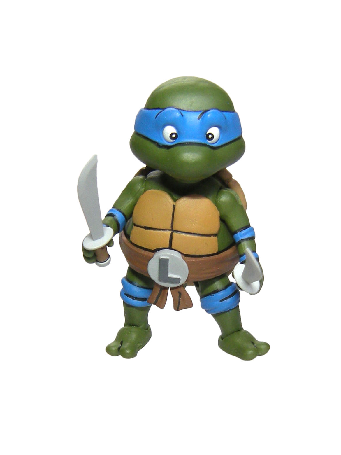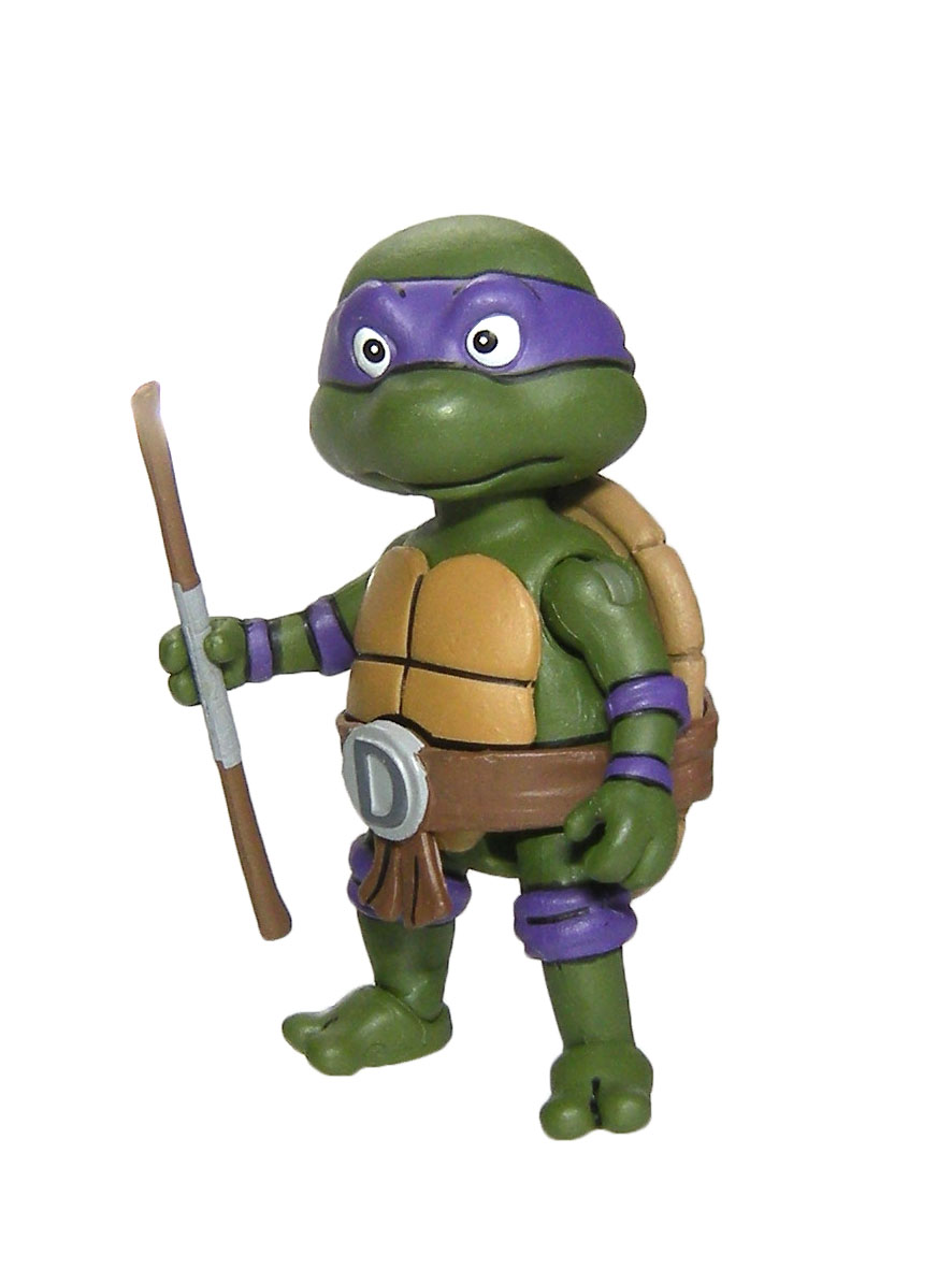 La peinture des quatre tortues est très simple. Cette fois, aucun effet bicolore, généralement proposé pour les figurines du dessin animé de NECA. L’échelle ne l’aurait sans doute pas permis sans gâcher le rendu général des petites tortues.