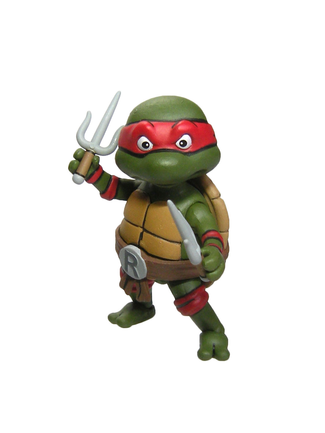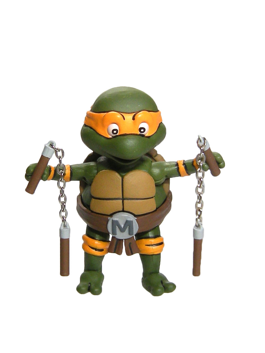Malgré l’échelle, nos figurines sont très finement sculptées. Les détails des carapaces ou des petits membres sont superbes. Du côté des visages, ceux-ci sont plutôt expressifs, avec un Michaelangelo curieux et souriant, un Raphael grimaçant, un Leonardo qui esquisse un sourire et un Donatello sceptique. Les détails des sourcils sont fantastiques. Couplés à la bouche, ils fournissent toute l’expression de chaque personnage. Enfin, les ceintures sont différenciées au niveau de la boucle, où l’initiale du nom de son porteur est en relief. Les flots des ceintures sont également différents.