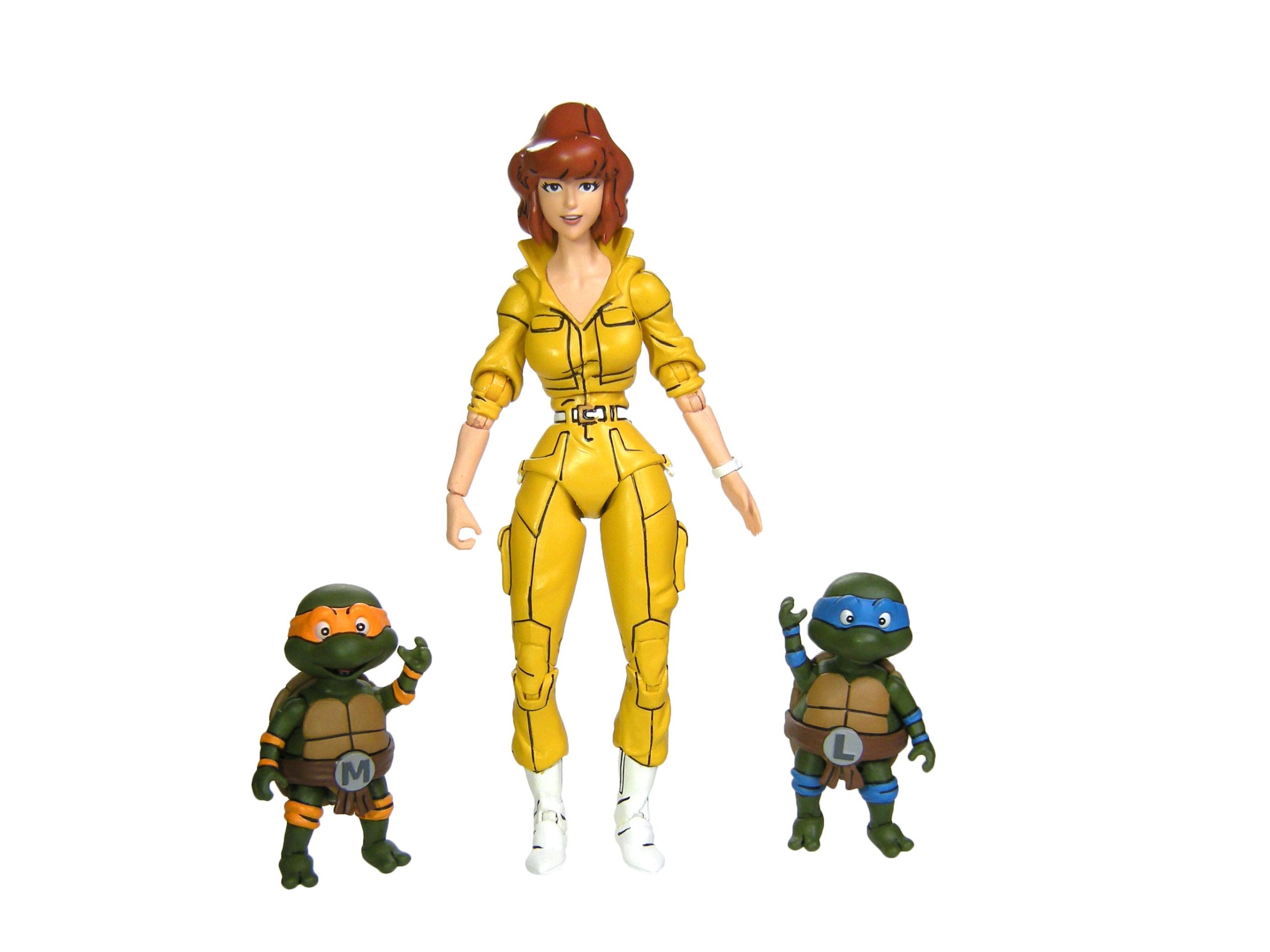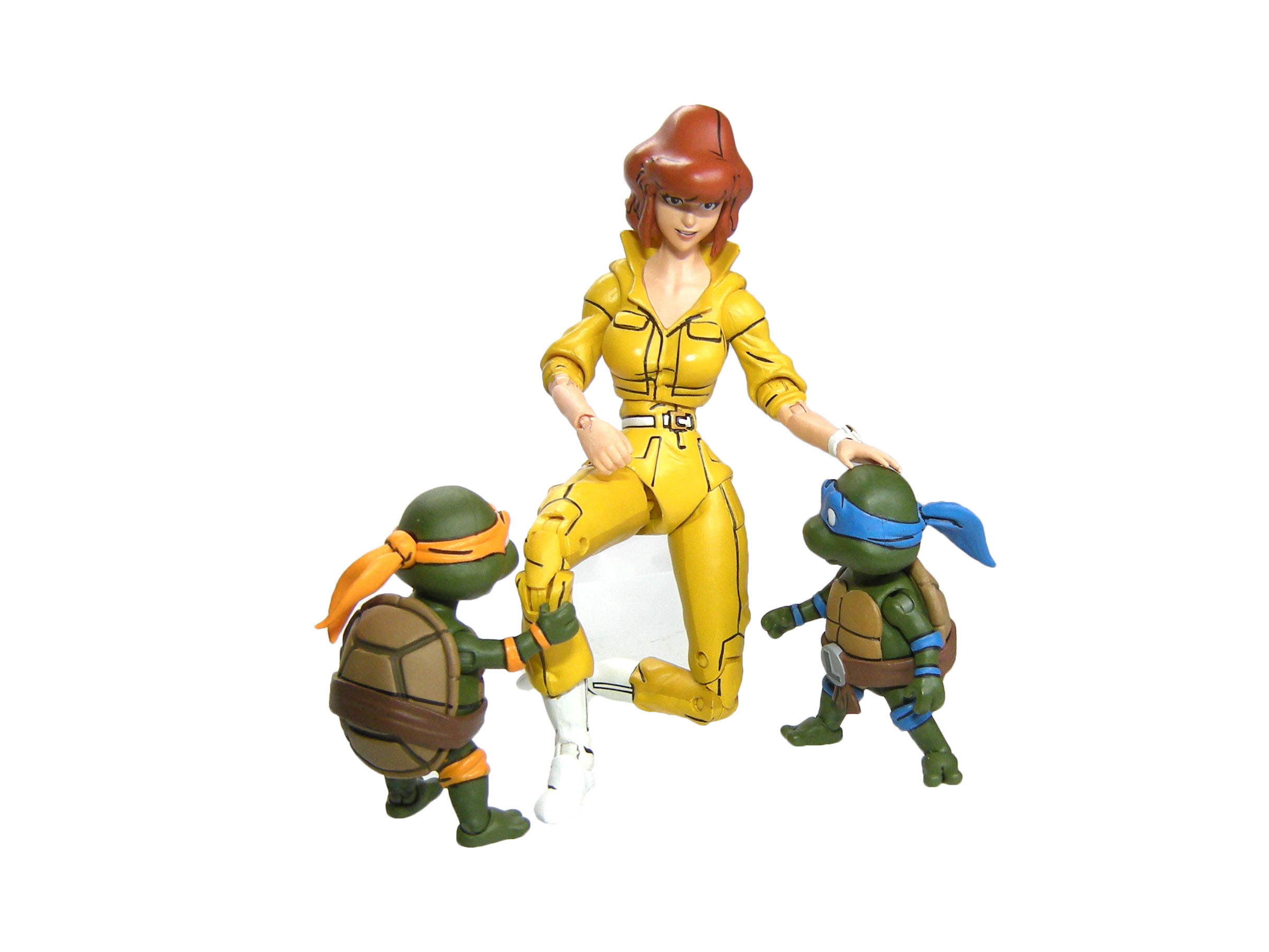 Niveau échelle, ces tortues sont peut-être un poil trop petites. Par exemple à côté d’April, elles ne peuvent pas lui donner la main, car la journaliste est trop grande. Pour rappel, April est déjà plus petite en figurine qu’elle ne l’était dans le dessin animé. Il manque un bon centimètre à nos tortues !