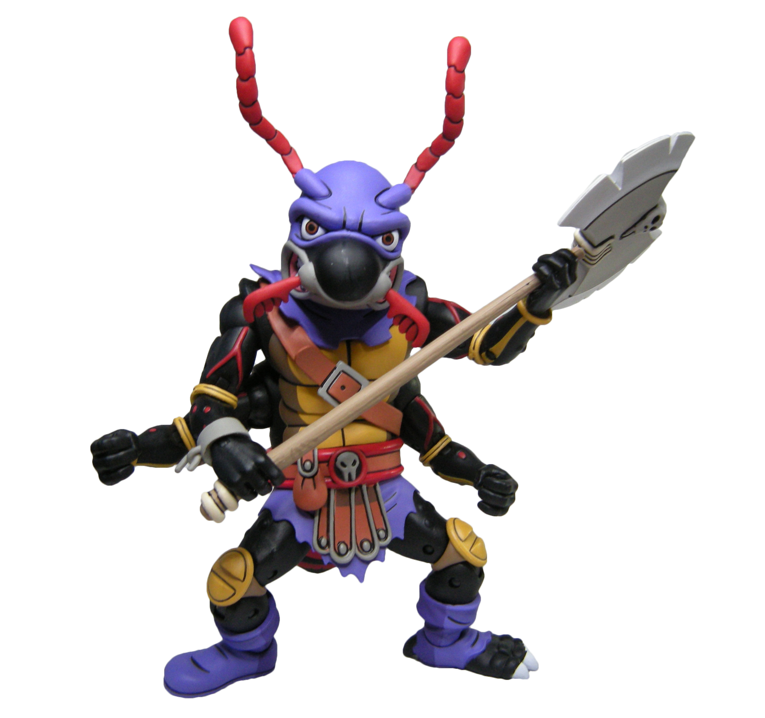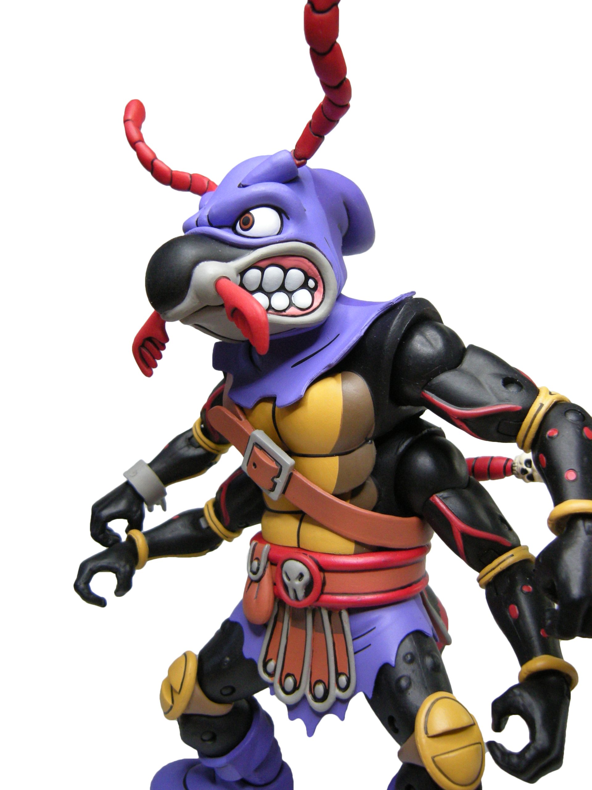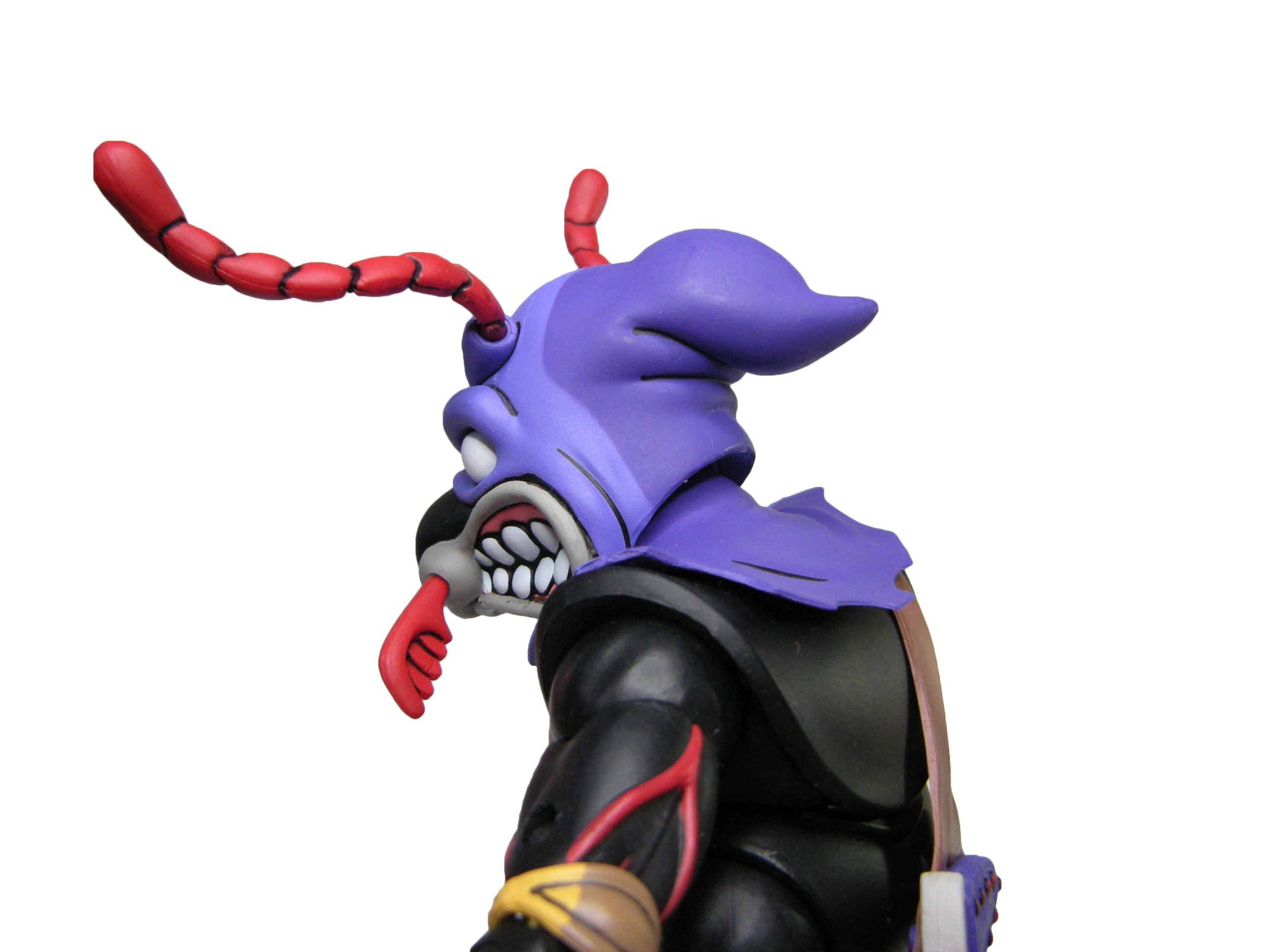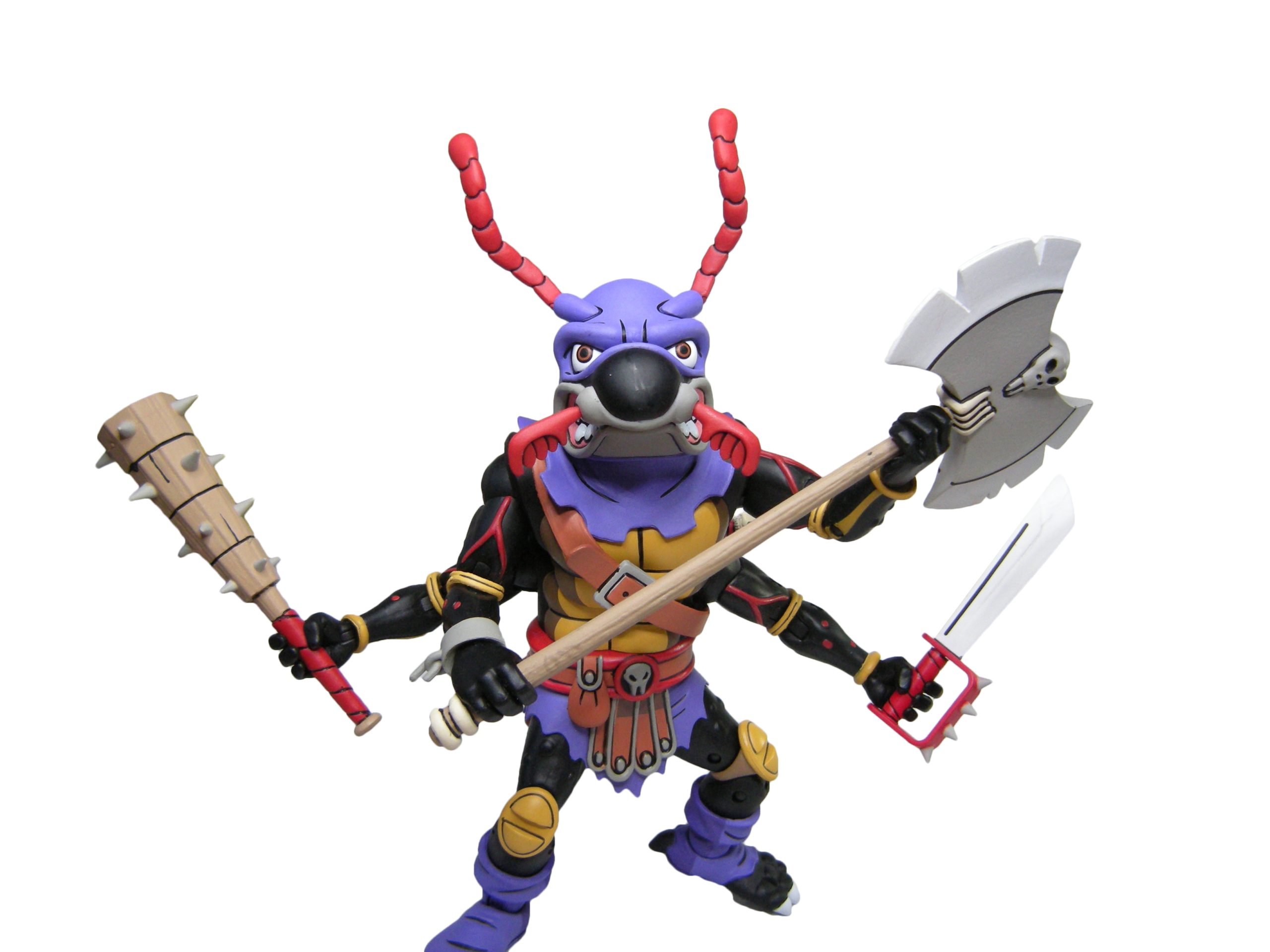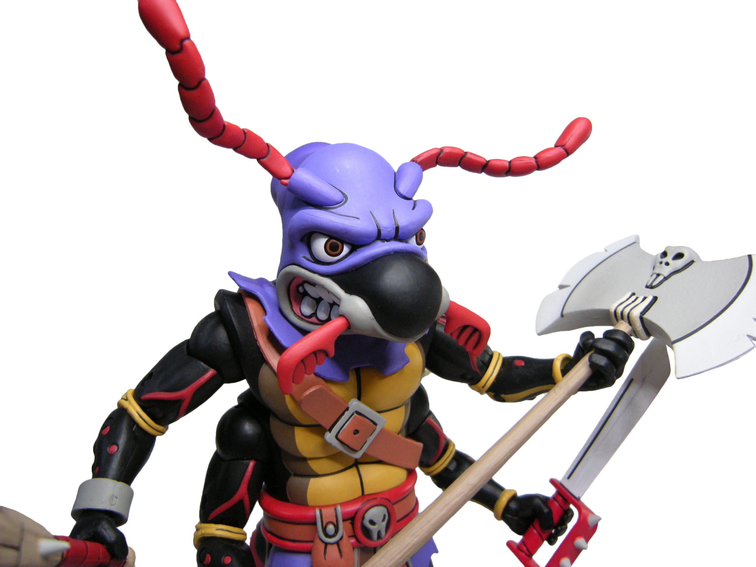 Dans la série, Antrax n’utilise que sa hache pour se battre contre les tortues. NECA a donc puisé, comme pour Scumbug, dans ce qu’avait fait Playmates Toys pour proposer plusieurs autres armes à la fourmi bourreau.