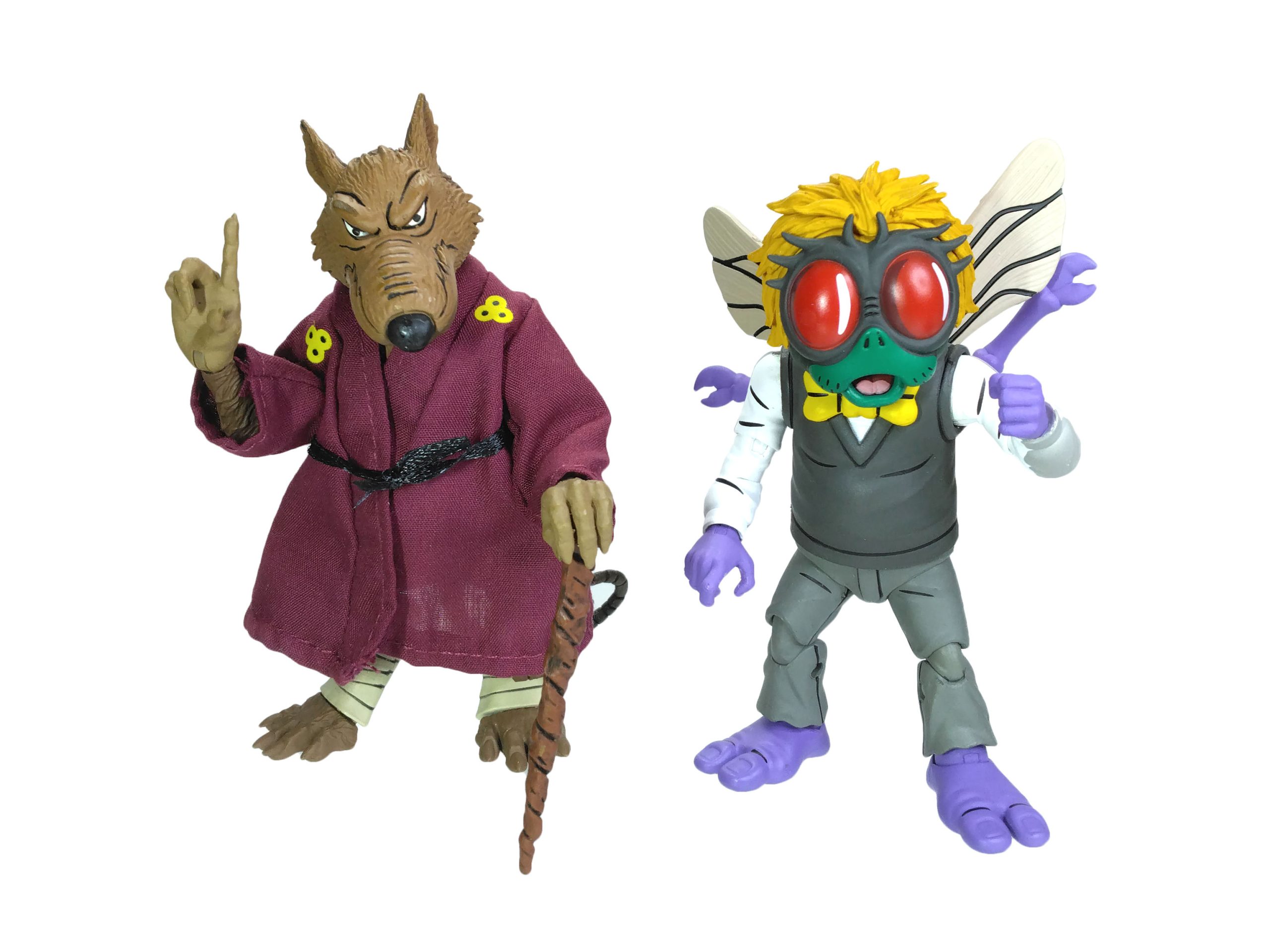 La figurine de Splinter accompagne celle de Baxter Stockman, version mouche. Les deux mutants sont présentés dans une boîte standard avec vitre en plastique et ornée des illustrations de Stephen Mazurek.
