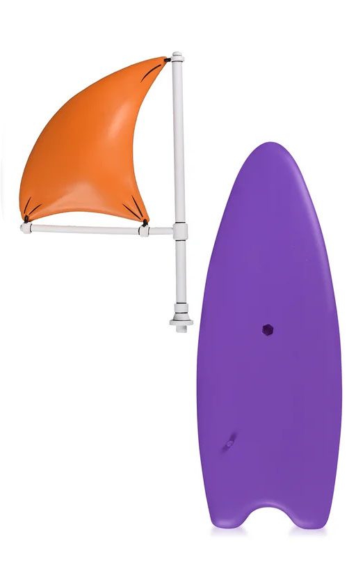 Ces figurines sont bien issues de différents épisodes, tout comme la planche à voile, qui vient de l’épisode Petits, petits, petits… (S4 E21).