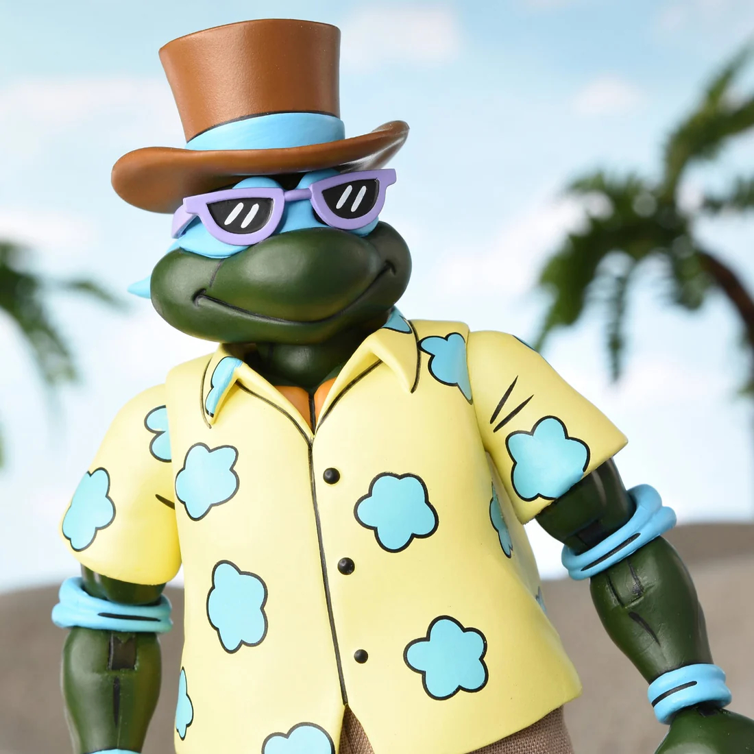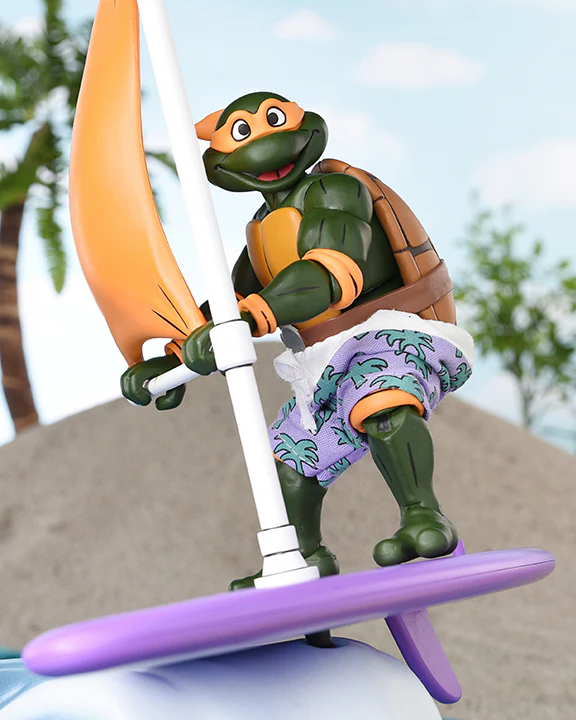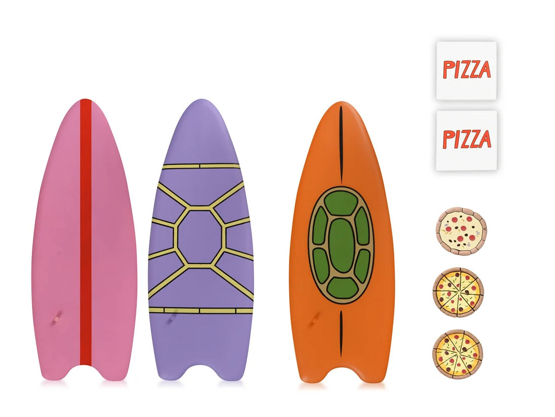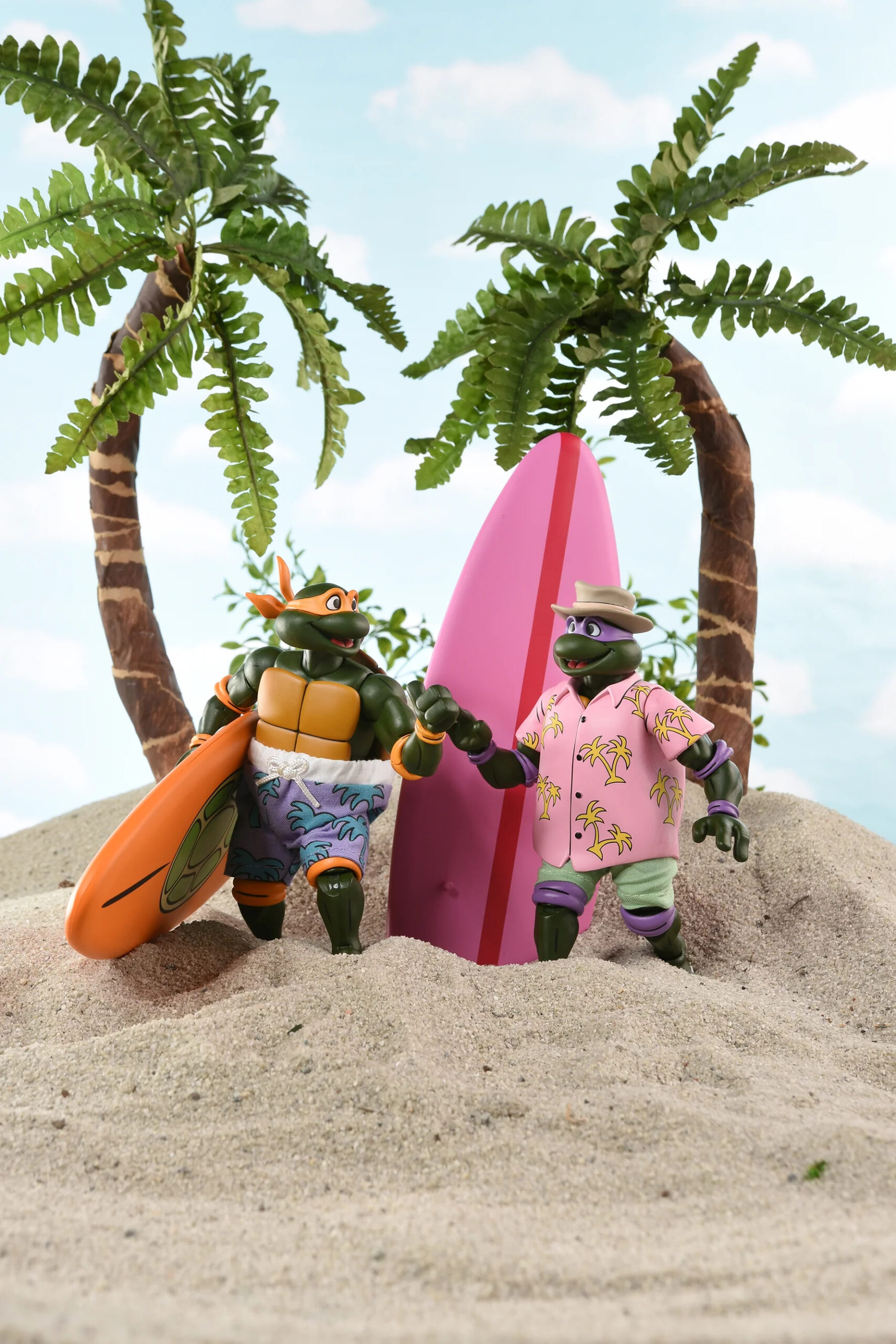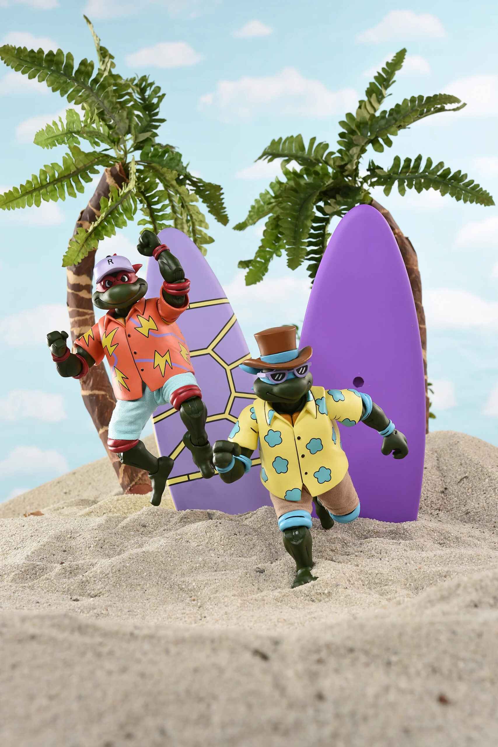 Le 4-pack Bodacious beach bros. a été lancé comme exclusivité de la San Diego Comic Con 2025. NECA a annoncé ce pack le 3 juin pour une ouverture des précommandes entre les 18 et 20 juin 2025. Contrairement aux années précédentes, il n’y a pas eu de sold out immédiat dès le lancement, témoignant peut-être d’un essoufflement de la gamme ou d’un ras-le-bol des fans quant à des variantes de peu d’intérêt. Lors du salon, Trevor Zammit a rappelé dans la vidéo de Pixel Dan que ces tortues étaient bien issues d’épisodes variés du dessin animé. Enfin, le 27 juillet, NECA a relancé les ventes de certaines figurines pour l’évènement, dont ce pack, dont il restait encore des exemplaires invendus.