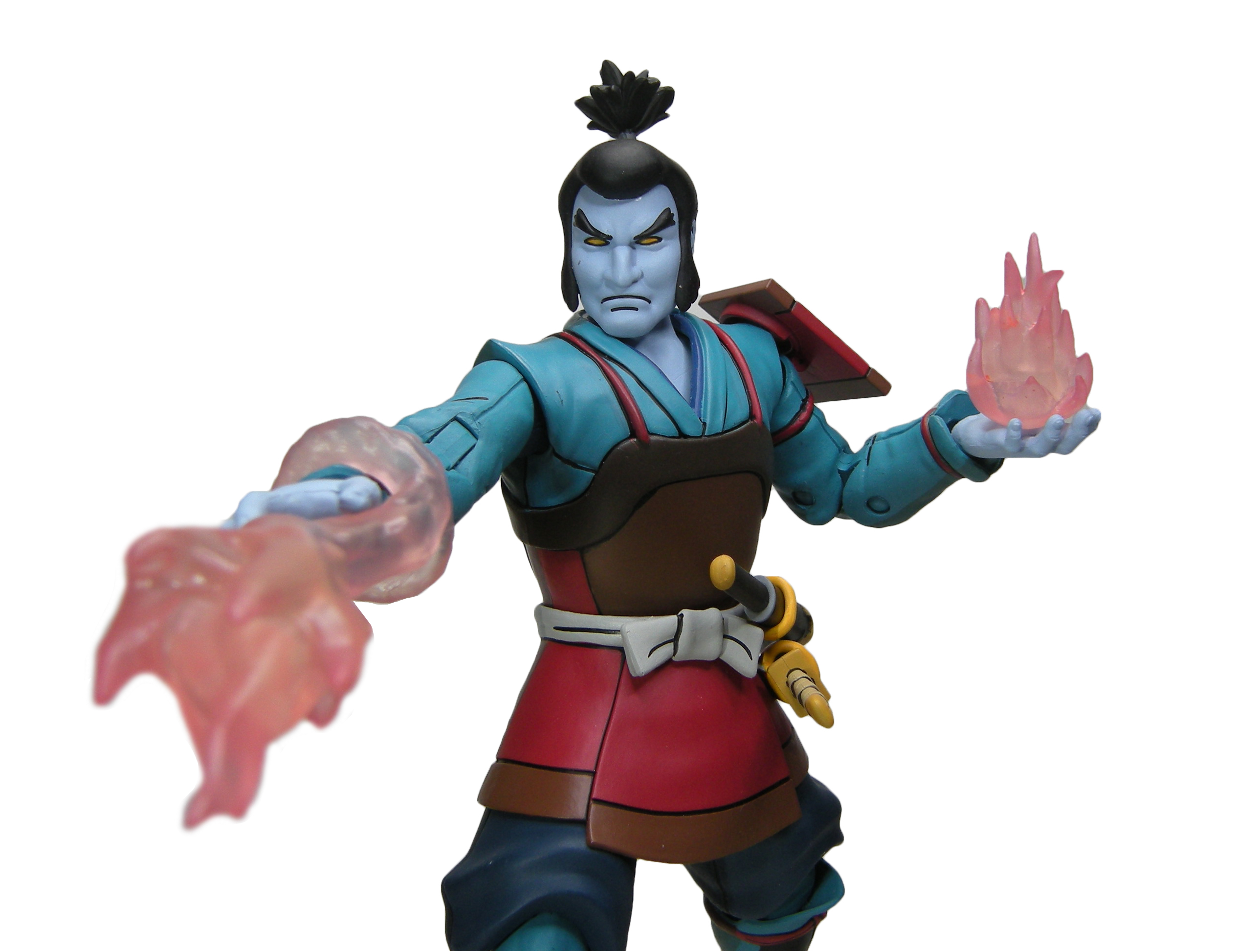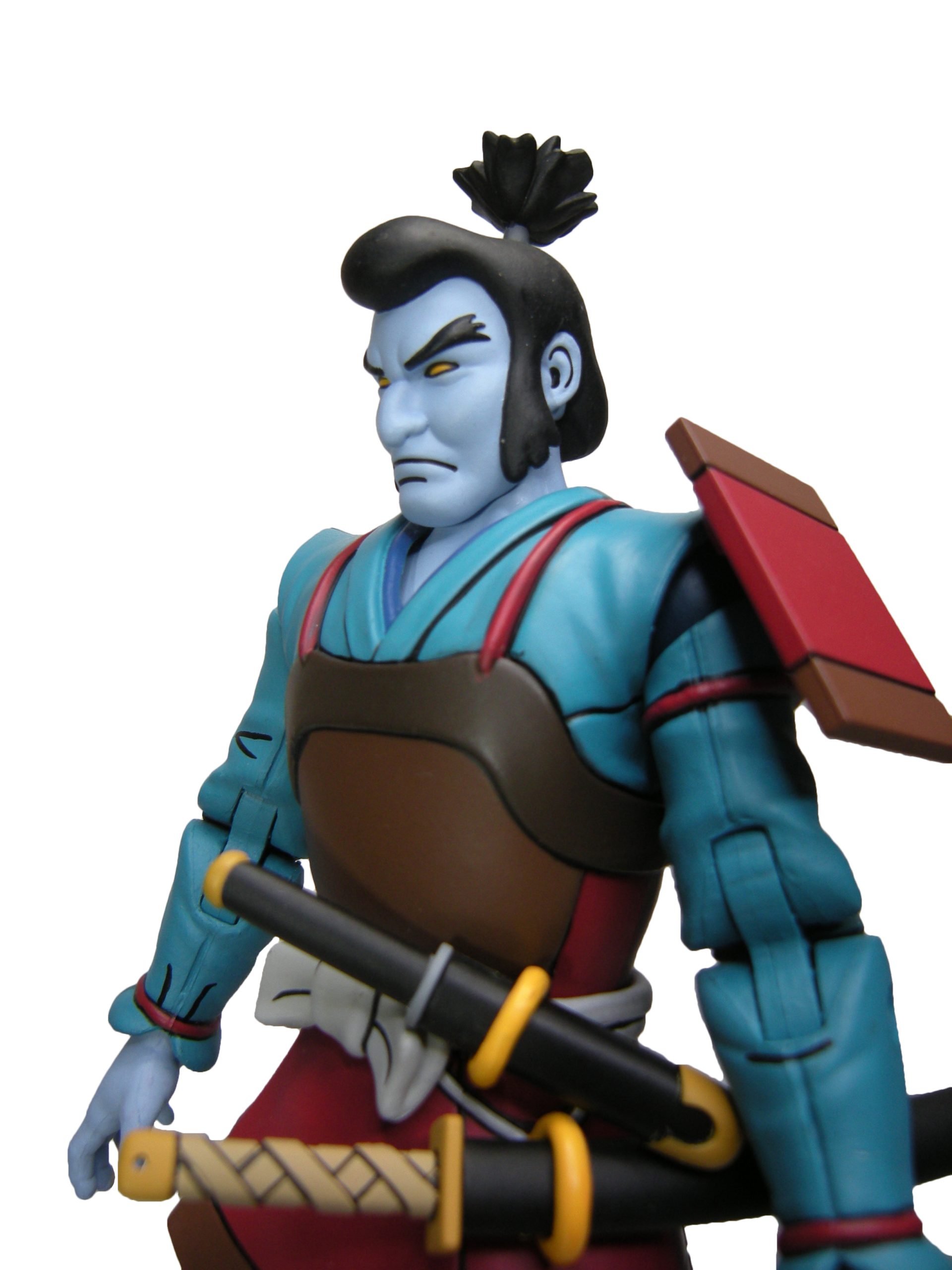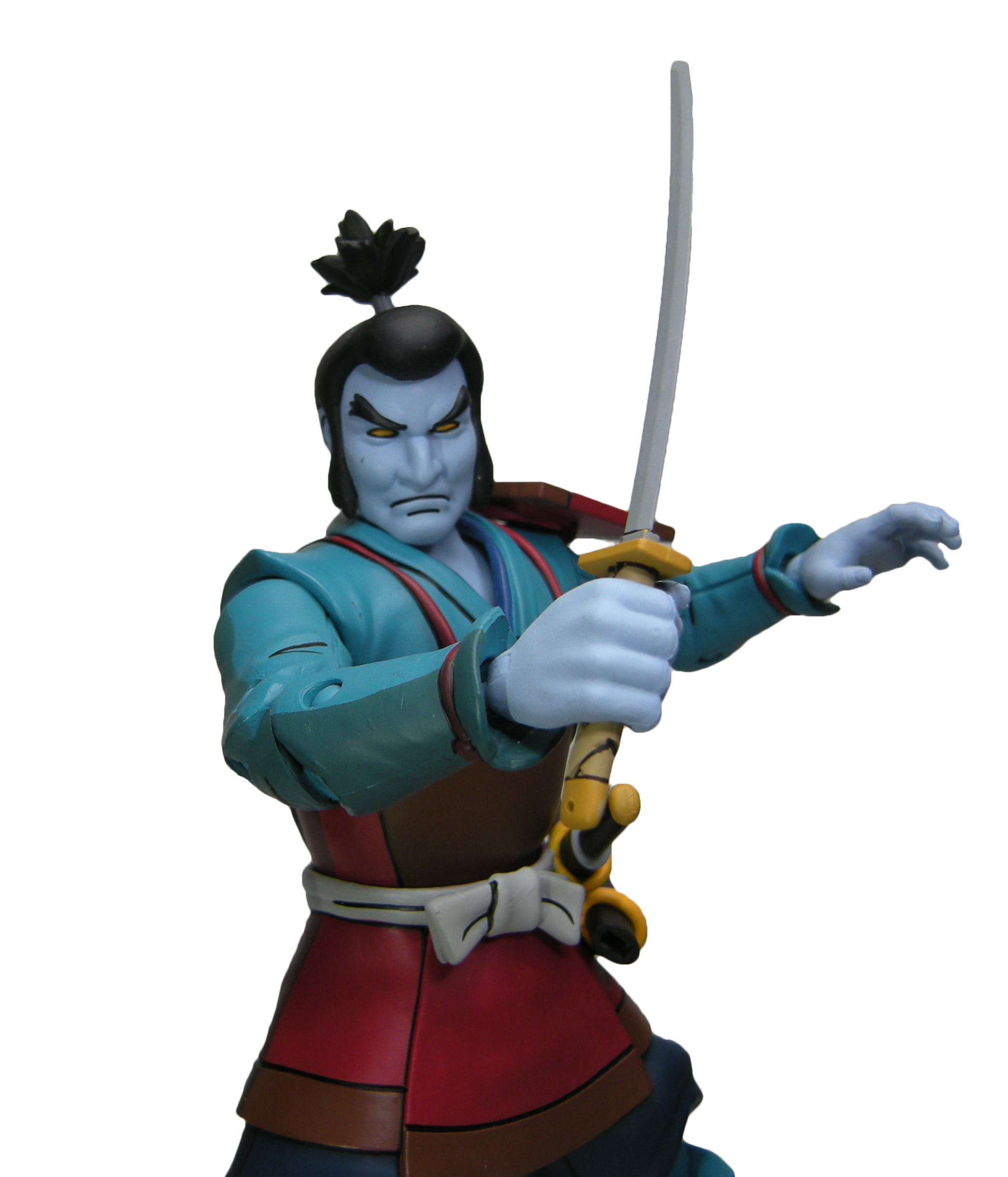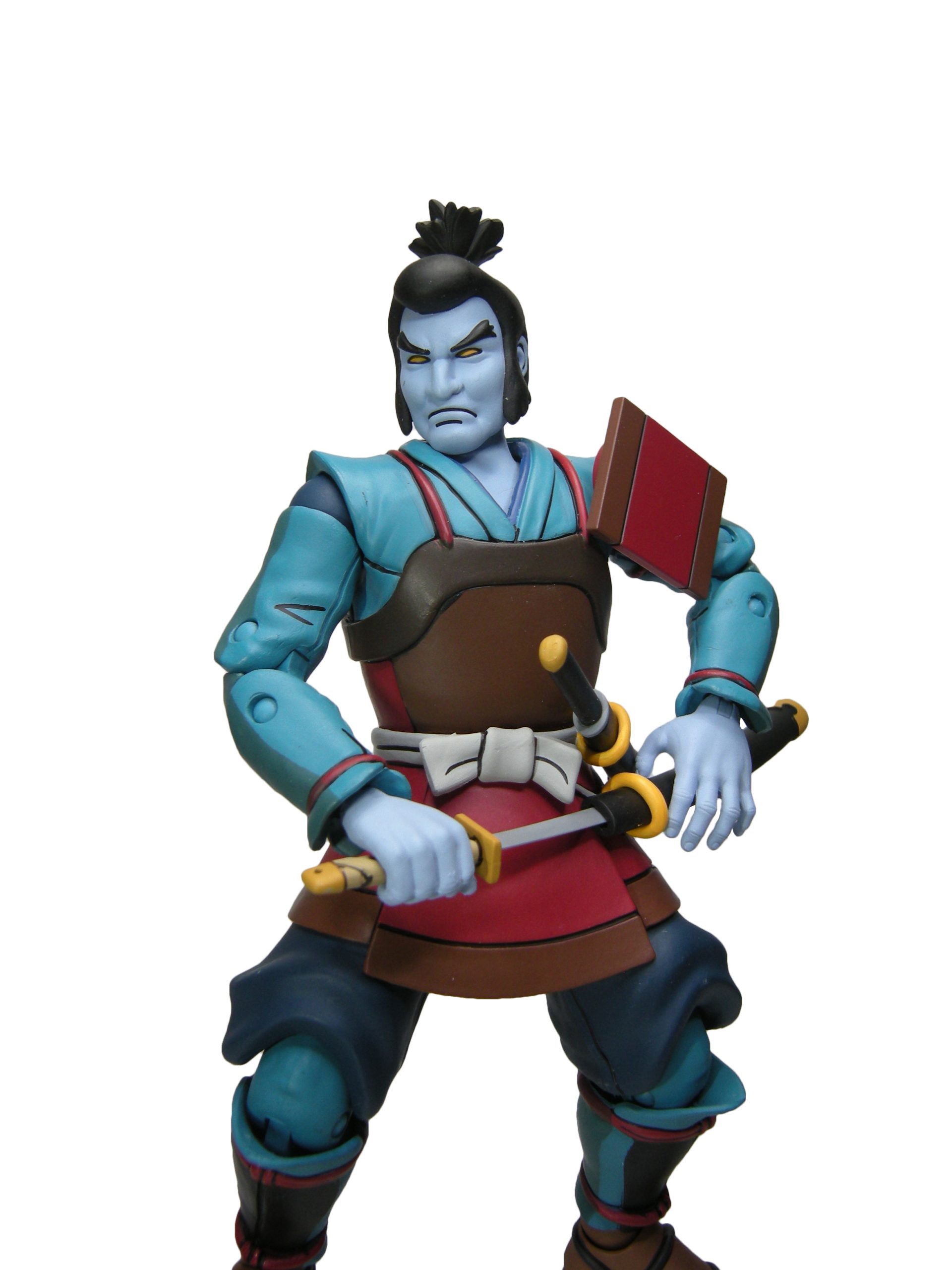 En revanche, si j’apprécie beaucoup le travail de peinture sur Chakahachi, je regrette que le visage n’ait pas été plus travaillé. La version que NECA nous propose est, je trouve, trop jeune par rapport à ce qu’était le personnage dans le dessin animé. Il manque cruellement de relief, ce qui aurait pu être largement amélioré avec de la peinture, notamment au niveau des poches sous les yeux. Comparez avec le personnage dans l’épisode Le retour du lotus, la différence est plutôt criante.