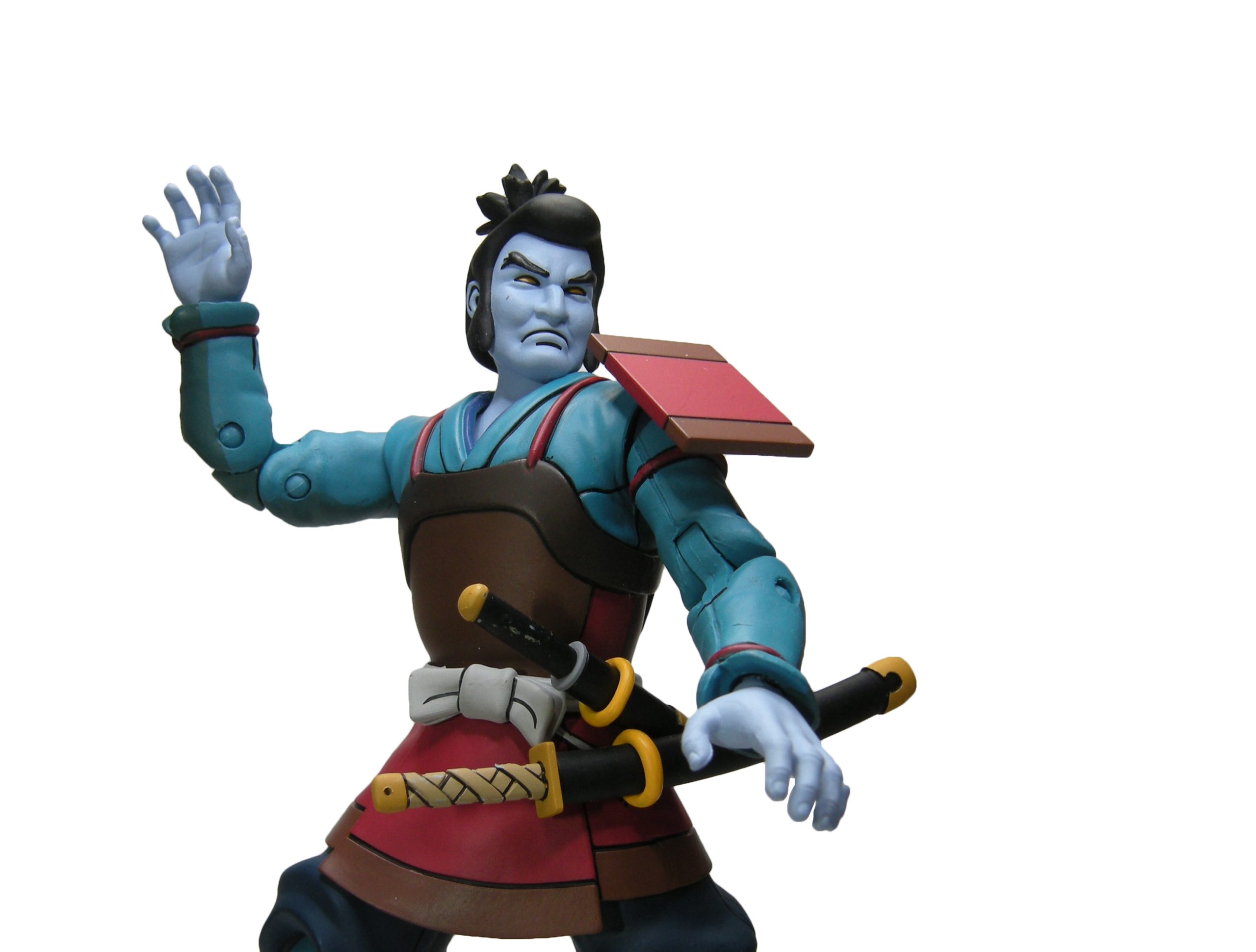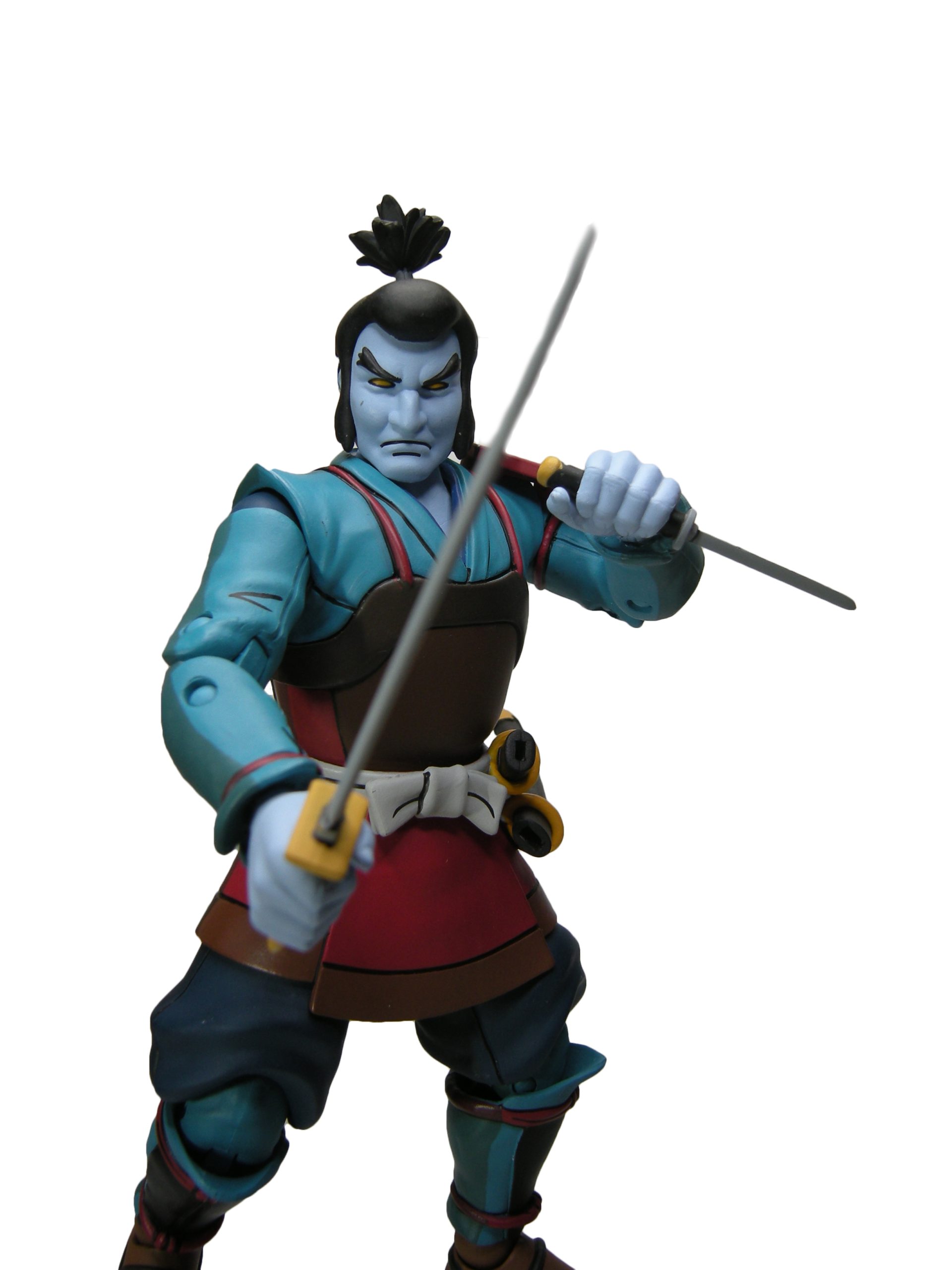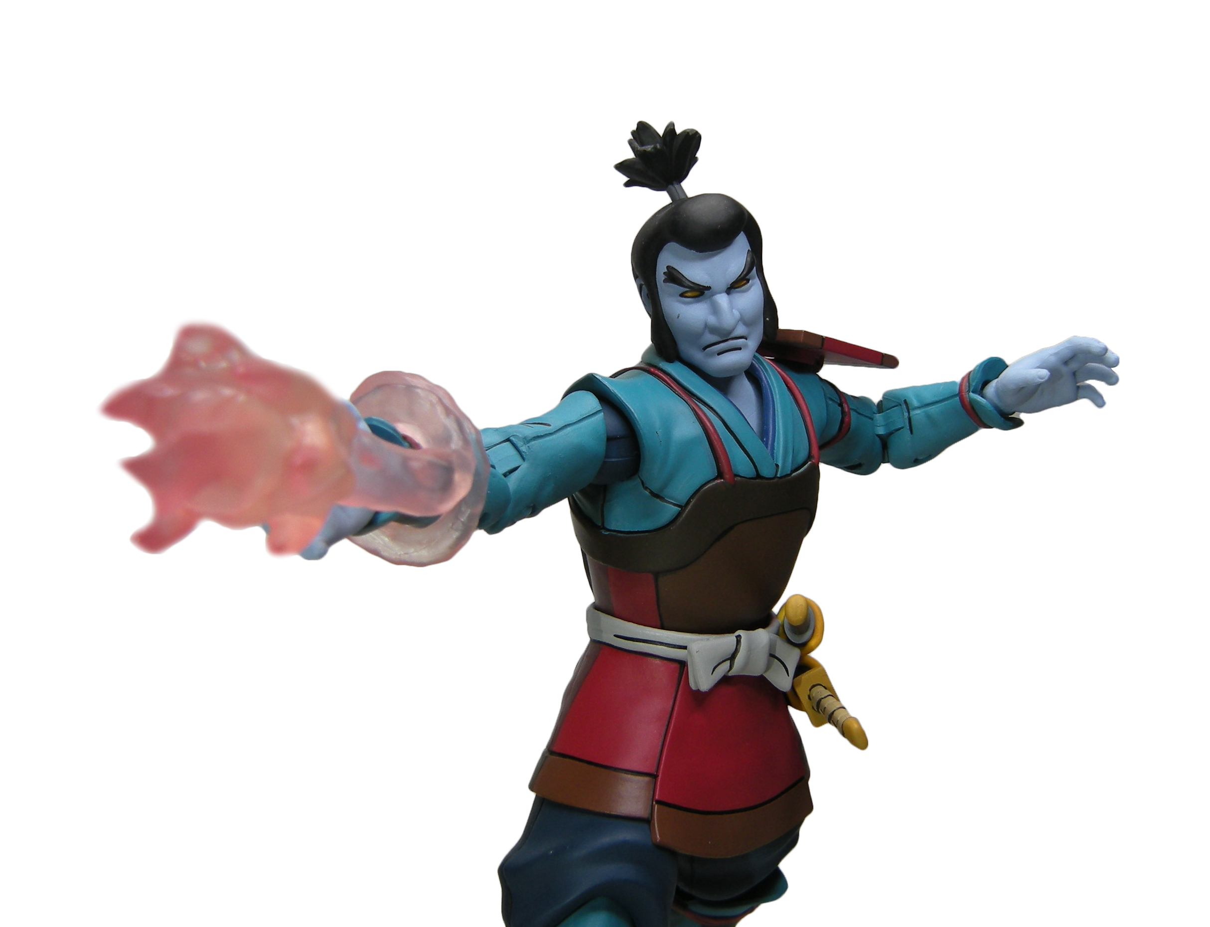 En revanche, si j’apprécie beaucoup le travail de peinture sur Chakahachi, je regrette que le visage n’ait pas été plus travaillé. La version que NECA nous propose est, je trouve, trop jeune par rapport à ce qu’était le personnage dans le dessin animé. Il manque cruellement de relief, ce qui aurait pu être largement amélioré avec de la peinture, notamment au niveau des poches sous les yeux. Comparez avec le personnage dans l’épisode Le retour du lotus, la différence est plutôt criante.