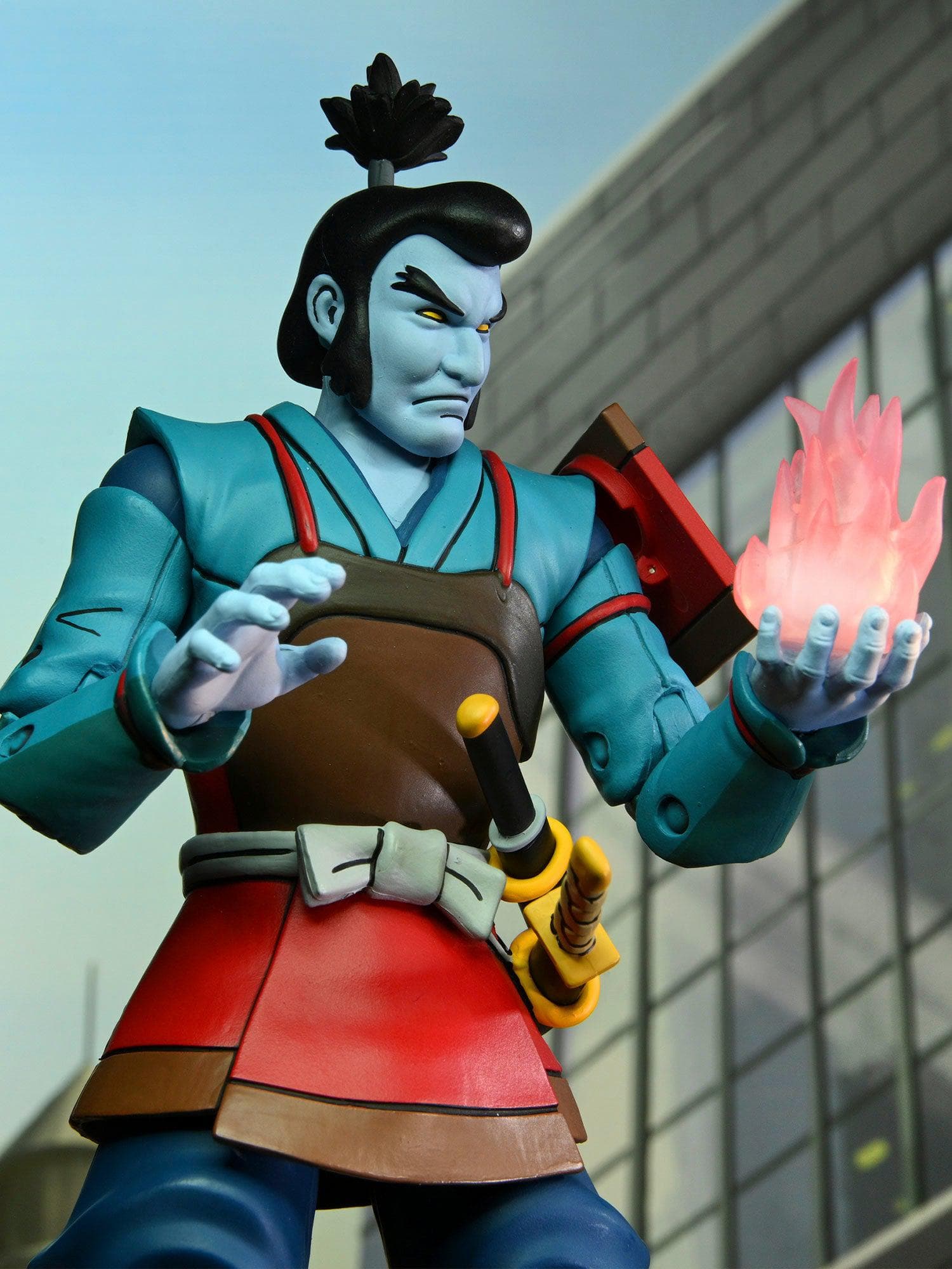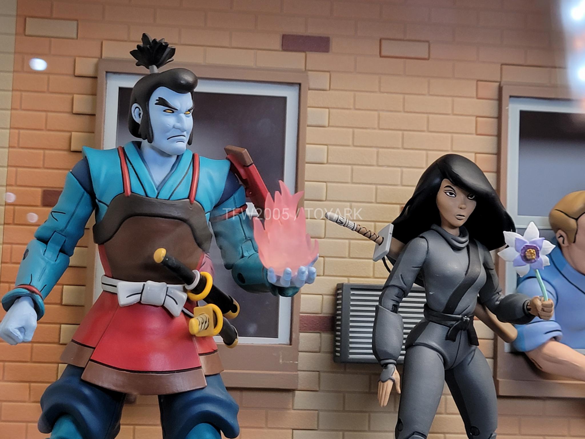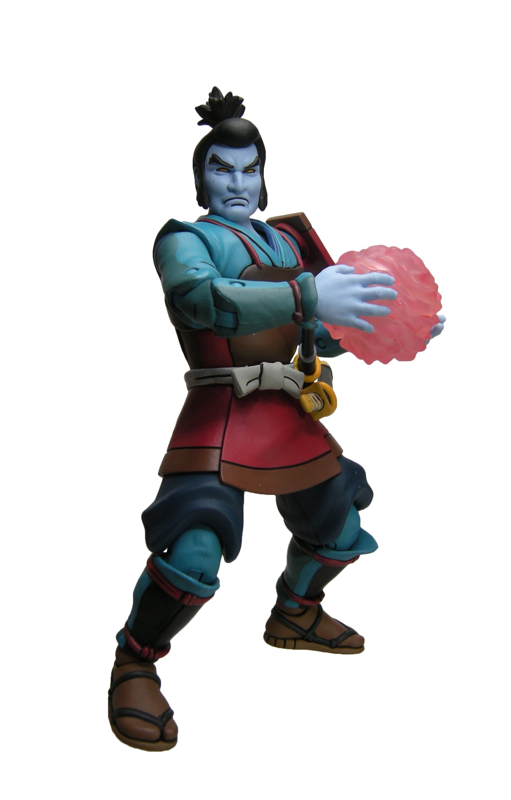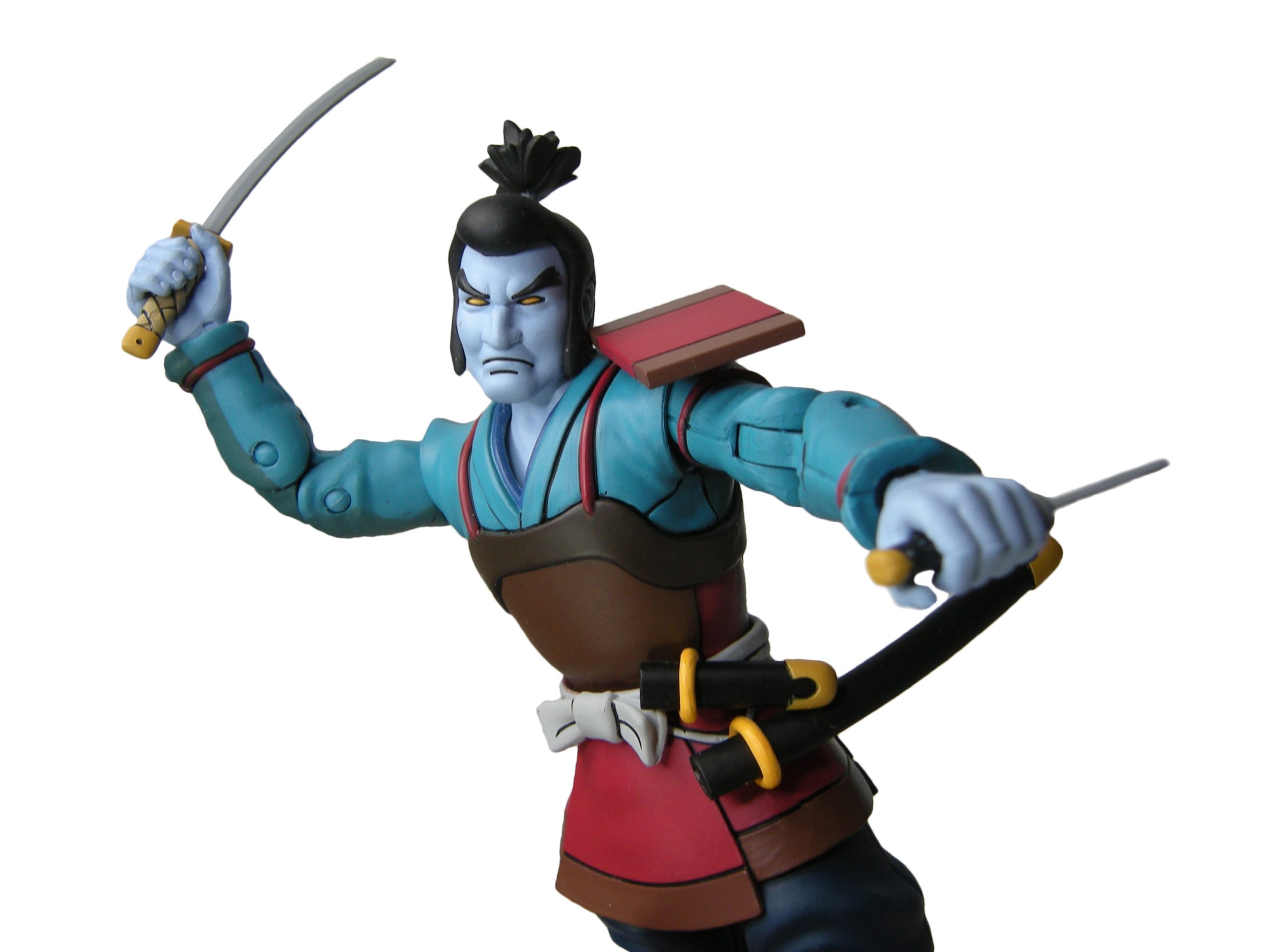 En revanche, si j’apprécie beaucoup le travail de peinture sur Chakahachi, je regrette que le visage n’ait pas été plus travaillé. La version que NECA nous propose est, je trouve, trop jeune par rapport à ce qu’était le personnage dans le dessin animé. Il manque cruellement de relief, ce qui aurait pu être largement amélioré avec de la peinture, notamment au niveau des poches sous les yeux. Comparez avec le personnage dans l’épisode Le retour du lotus, la différence est plutôt criante.