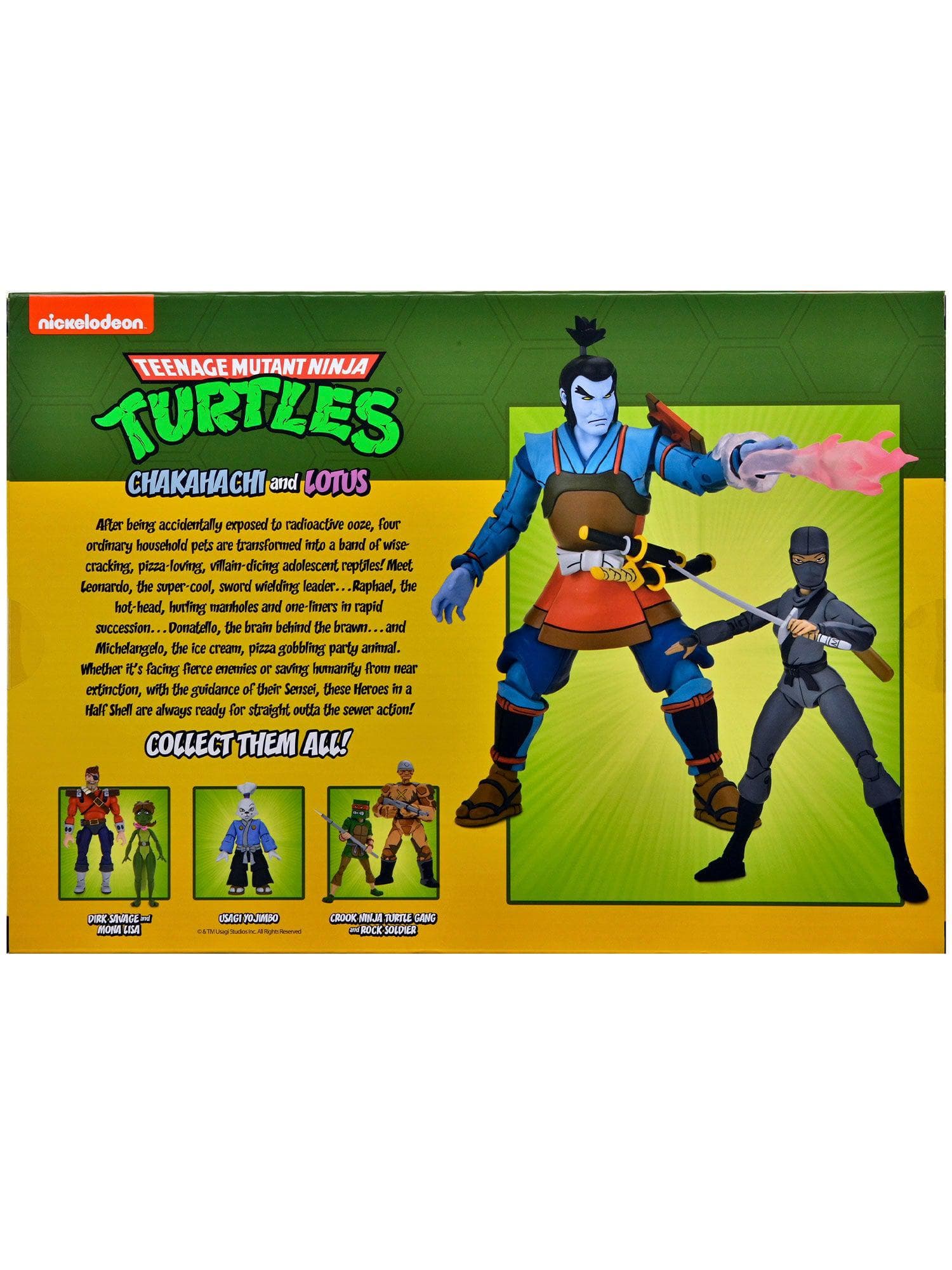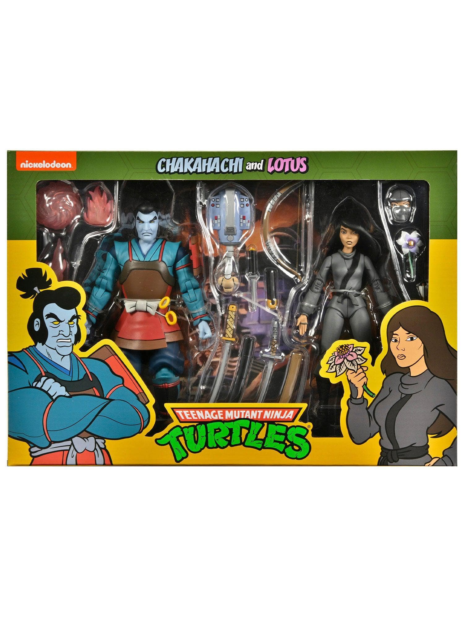 La figurine de Chakahachi a été révélée par NECA lors de la Comic Con de San Diego, en juillet 2022. Elle est brièvement apparue aux États-Unis, en double pack avec Lotus, le 23 janvier 2023, sans avoir été annoncée au préalable par le fabricant. Le coupler avec la femme ninja est une excellente idée. Certes Chakahachi est un personnage terriblement anecdotique. Mais une bonne idée de double-pack au vu du passif des deux personnages. Si NECA voulait le sortir à tous prix, il aurait difficilement été avec un autre personnage.
