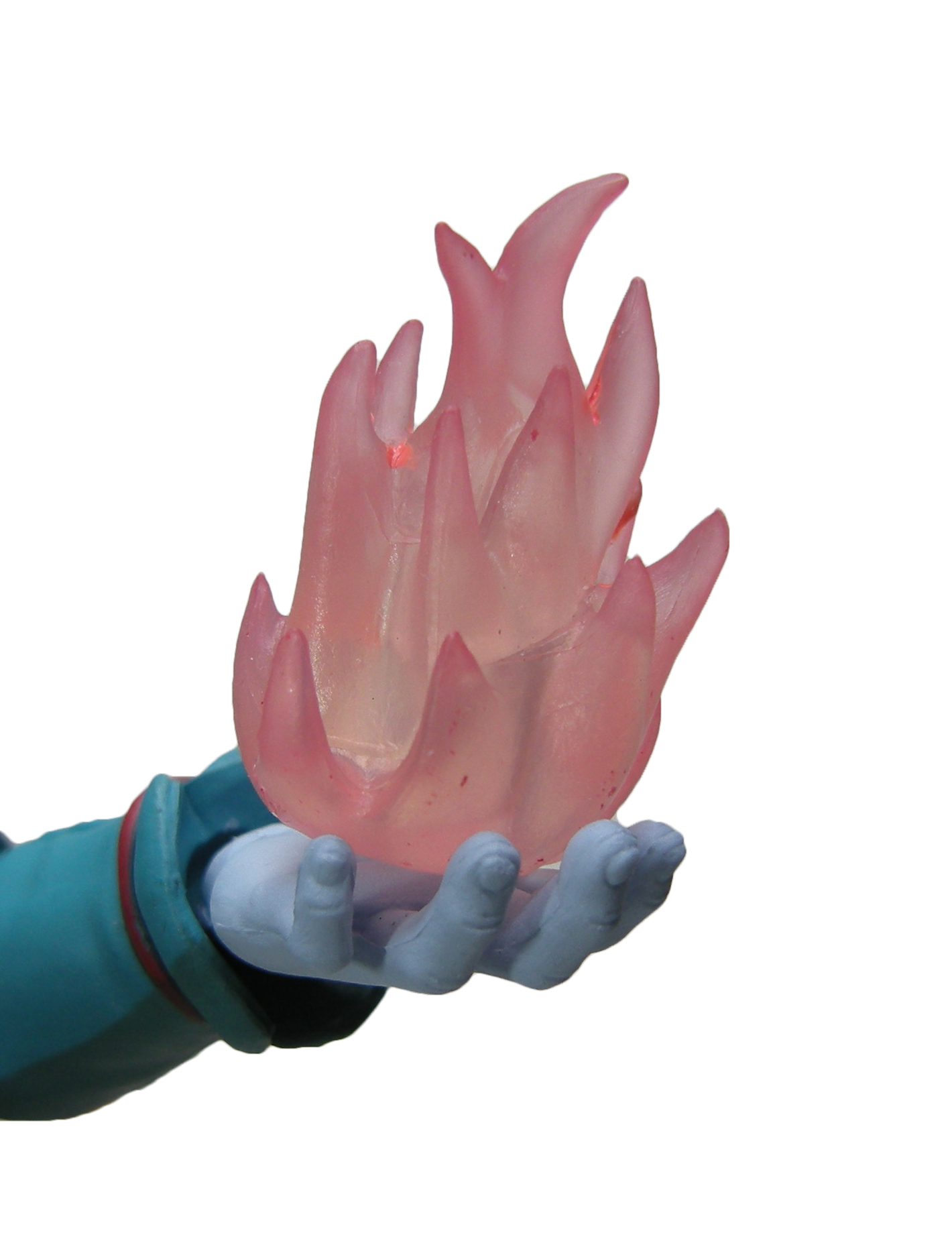 Les effets de magie sont très sympathiques. Réalisés dans un plastique transparent, une peinture rosée est appliquée dessus. On en retrouve des dépôts dans les recoins. Trois modèles sont proposés, la boule d’énergie, le rayon projeté, que vous pouvez fixer le long du bras du spectre et une petite flamme, à placer par exemple dans la paume de sa main.