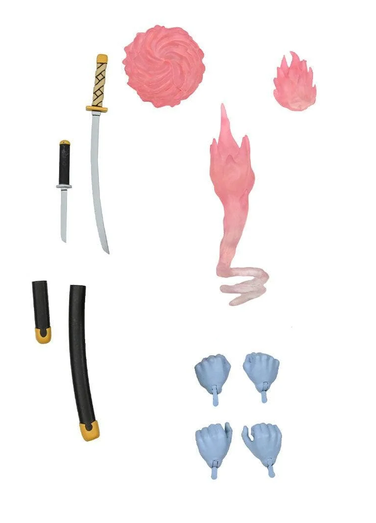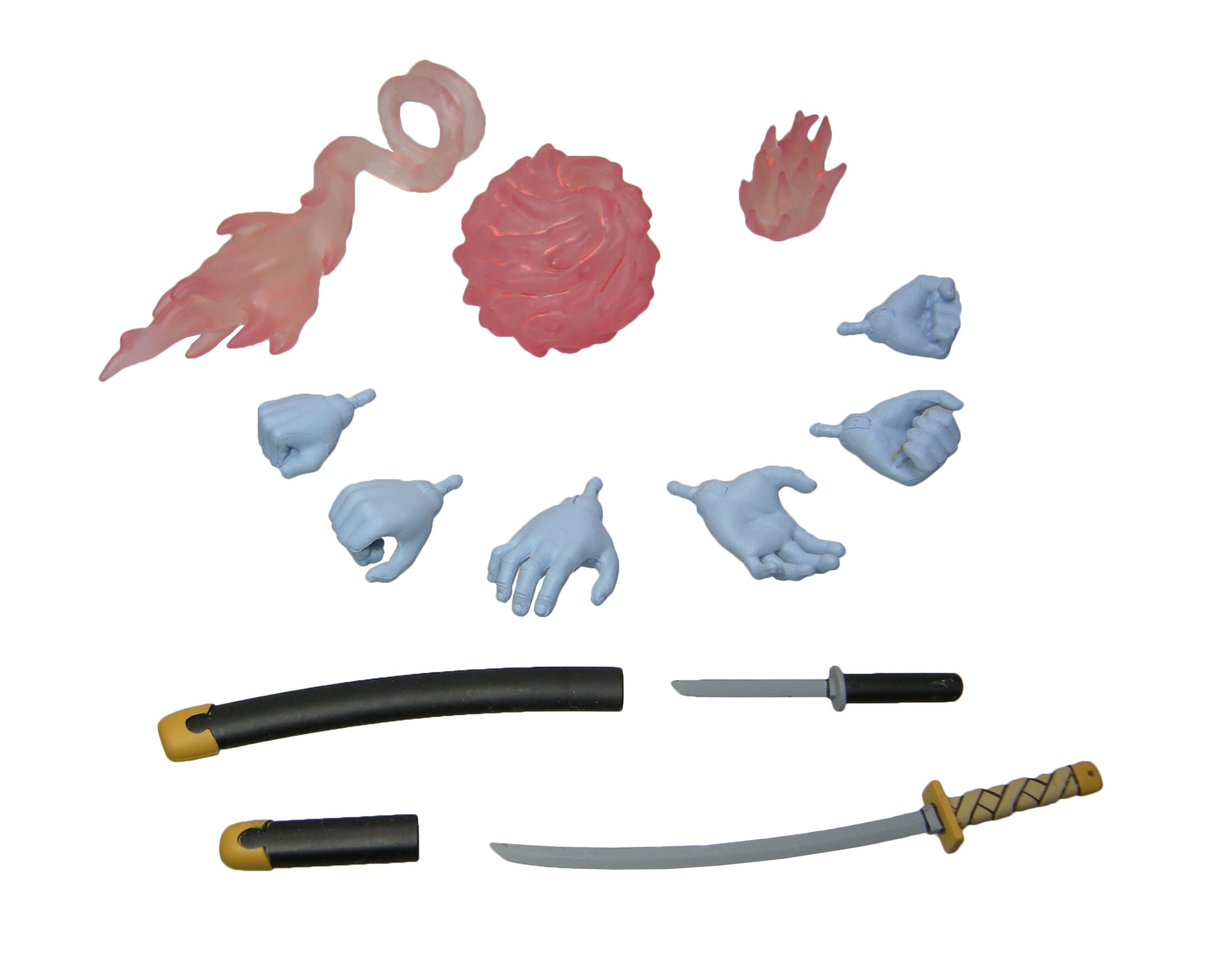 La figurine de Chakahachi ne dispose pas de beaucoup d’accessoires. Le personnage est accompagné de trois paires de mains symétriquement identiques, deux fourreaux, un couteau et un sabre et trois effets magiques.