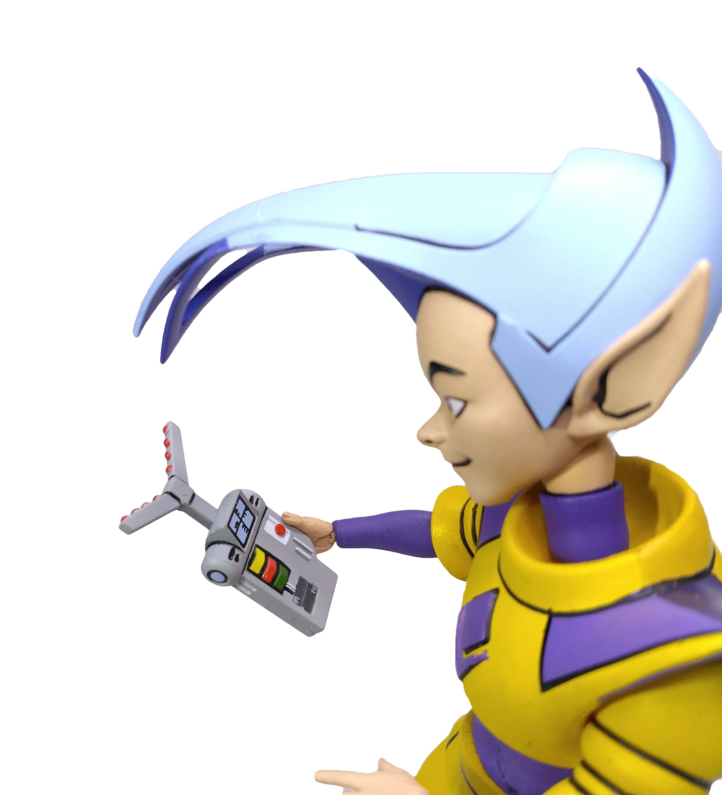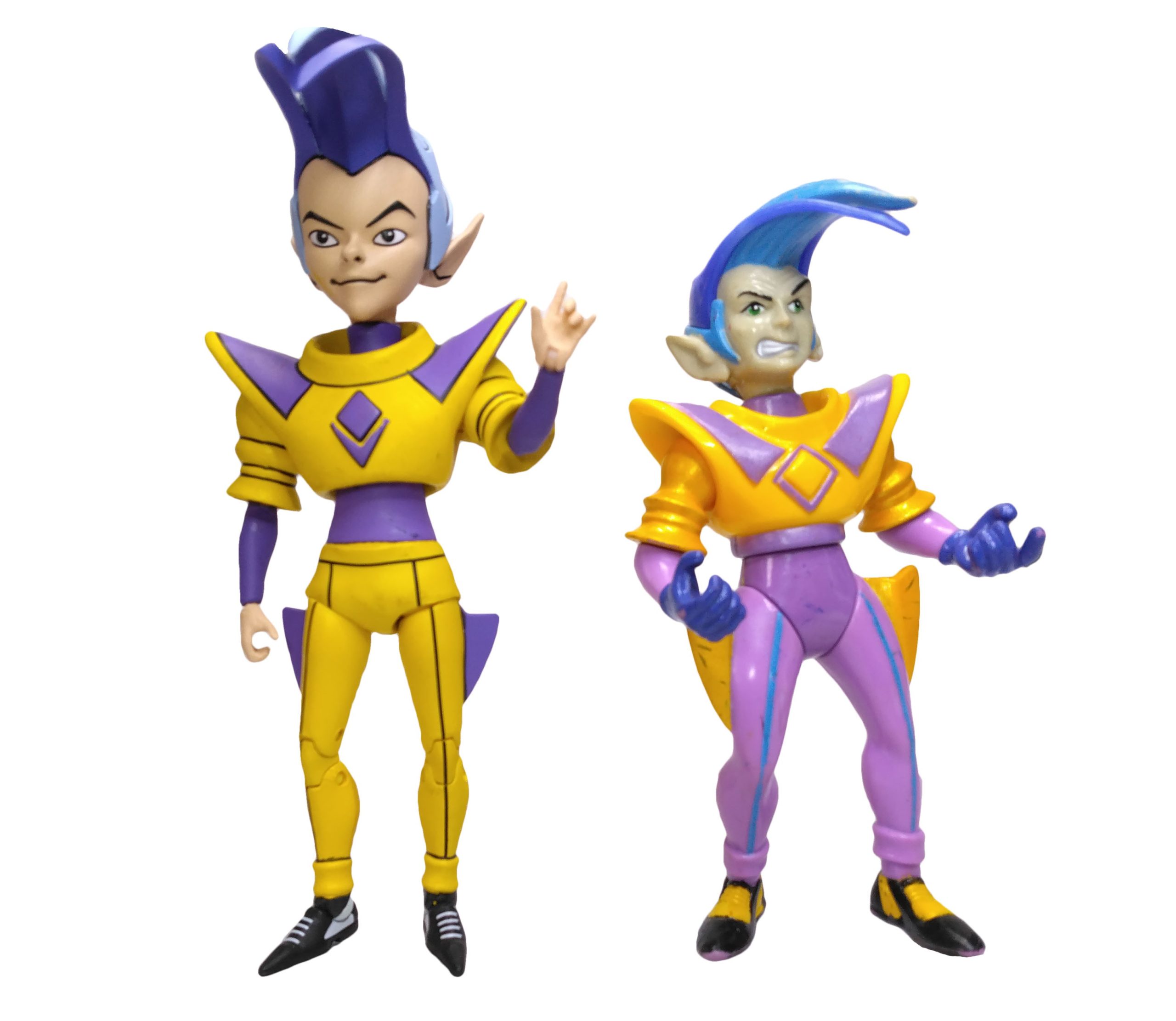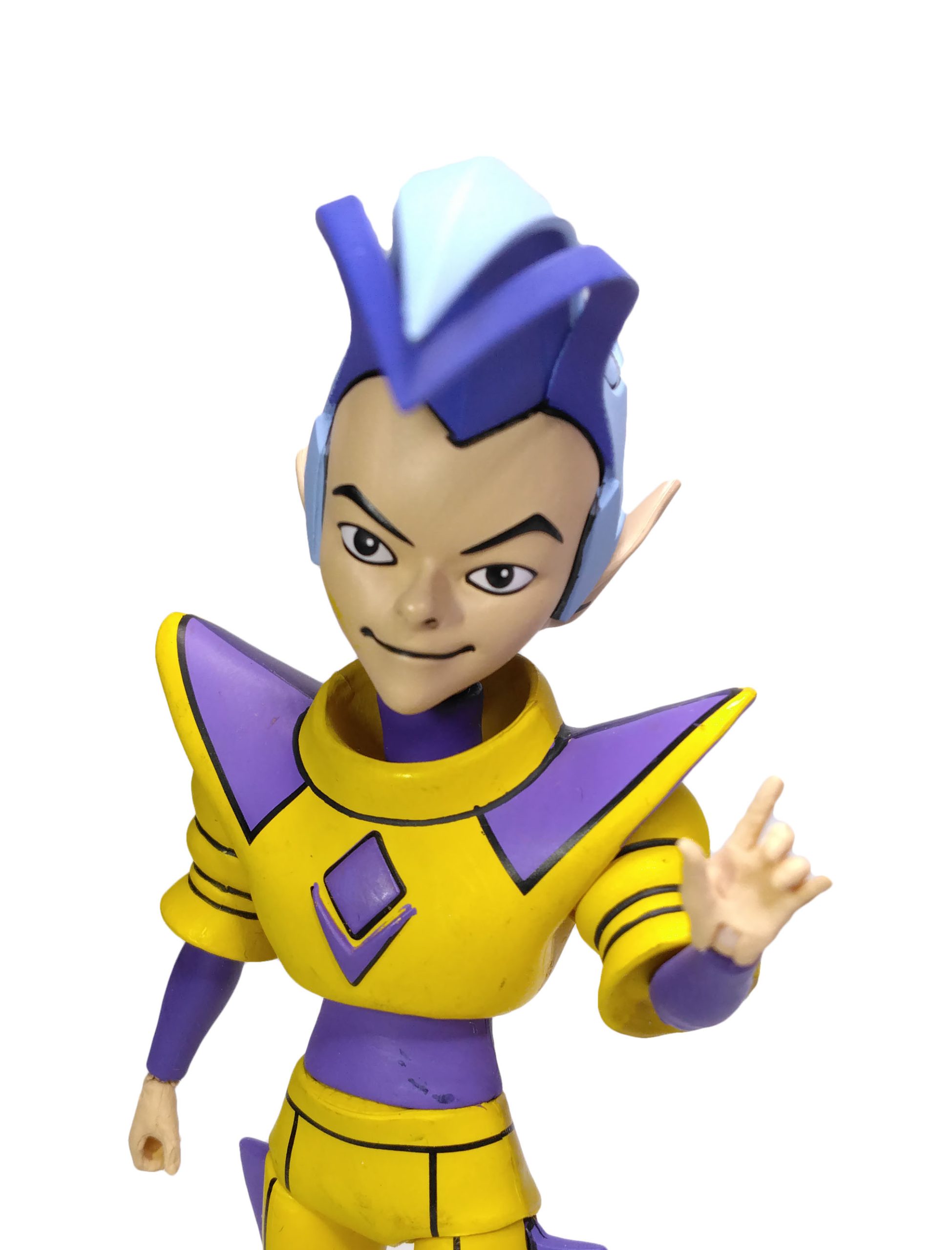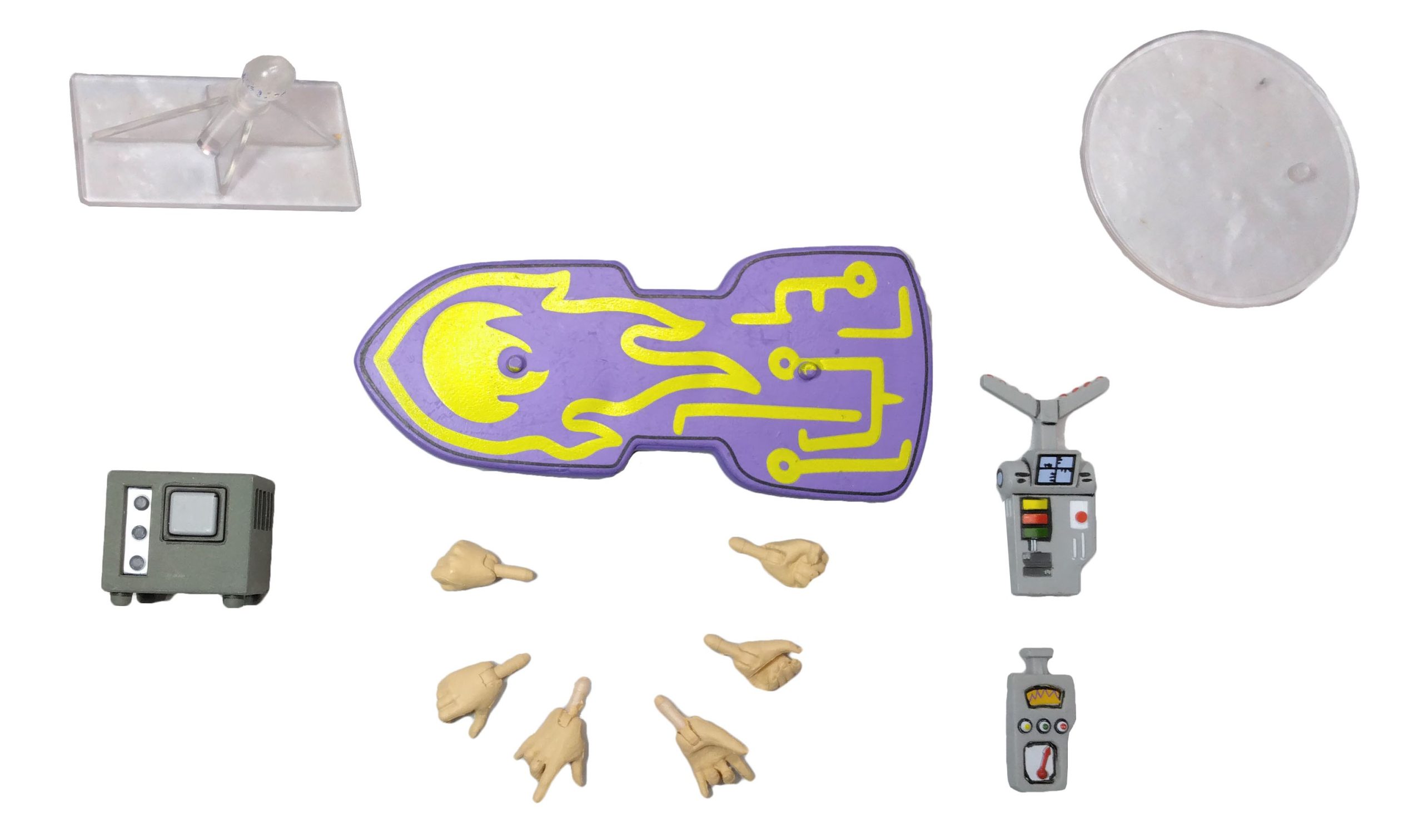 La planche de Dask est assortie à sa combinaison, à savoir le violet avec des touches de jaune. Je ne me souviens pas de l’avoir vu dans la série. Les neutrinos étaient toujours accompagnés de leurs voitures volantes. NECA a peut-être trouvé cette solution moins onéreuse, d’autant plus que Playmates Toys avait déjà assorti ses quatre neutrinos de planches volantes.