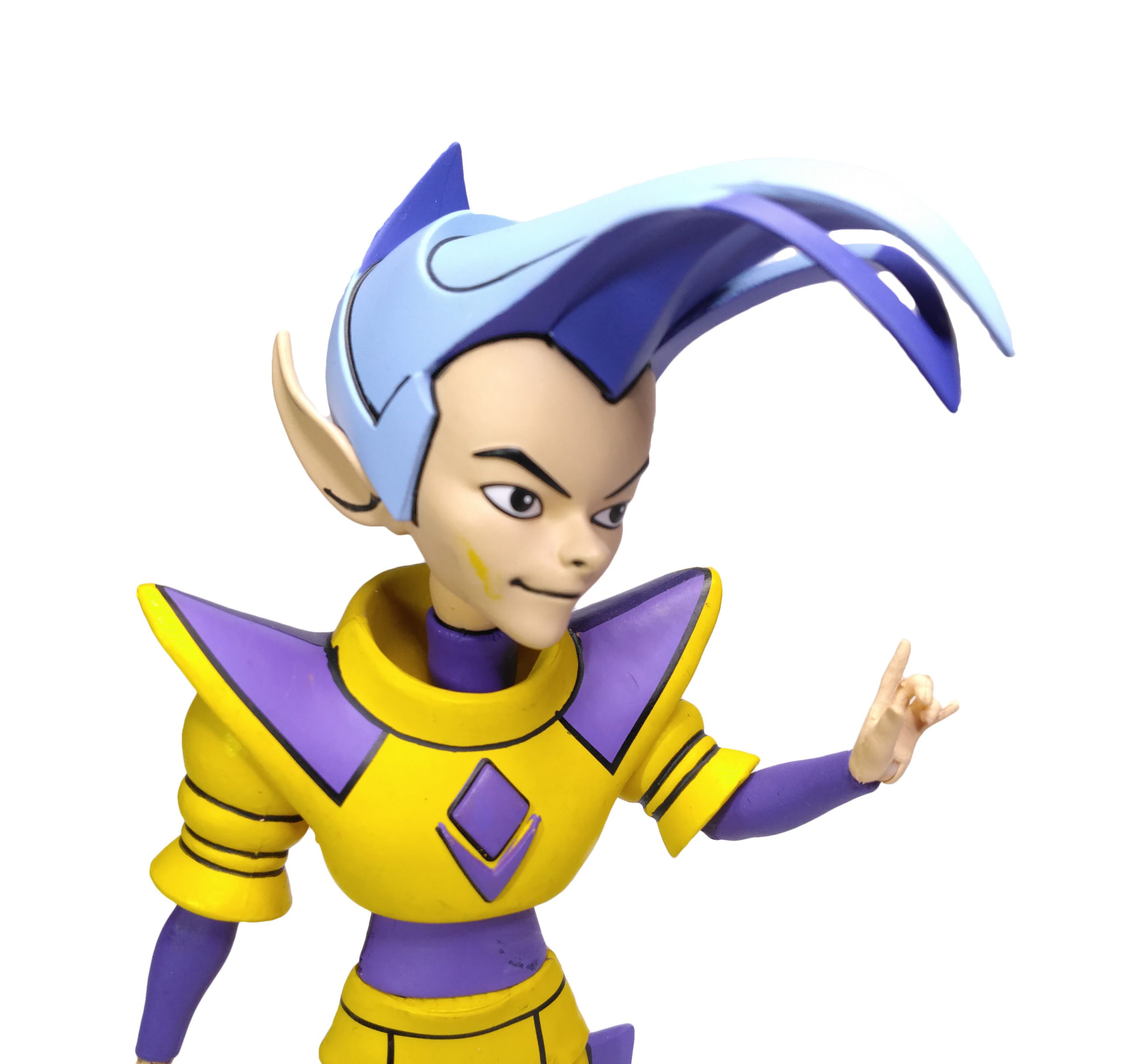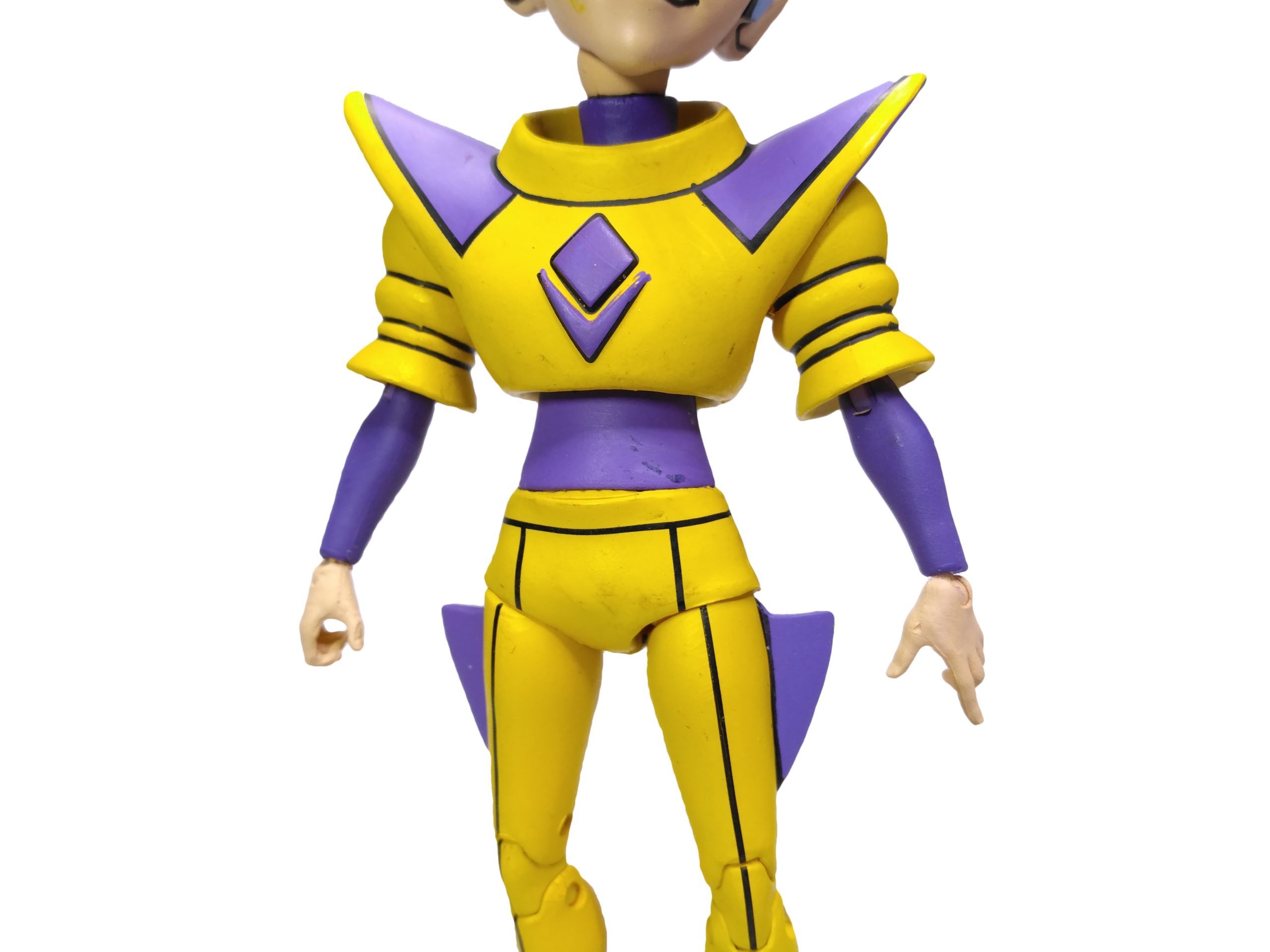La tenue de Dask, globalement jaune, évolue légèrement d’un plan à l’autre dans certains épisodes, avec des détails passant du violet au bleu. Ici, nous avons bien une version violette, couleur standard du personnage. En revanche, notons que la figurine annoncée par NECA dans les publicités disposait d’une tenue aux teintes plutôt bleutées.